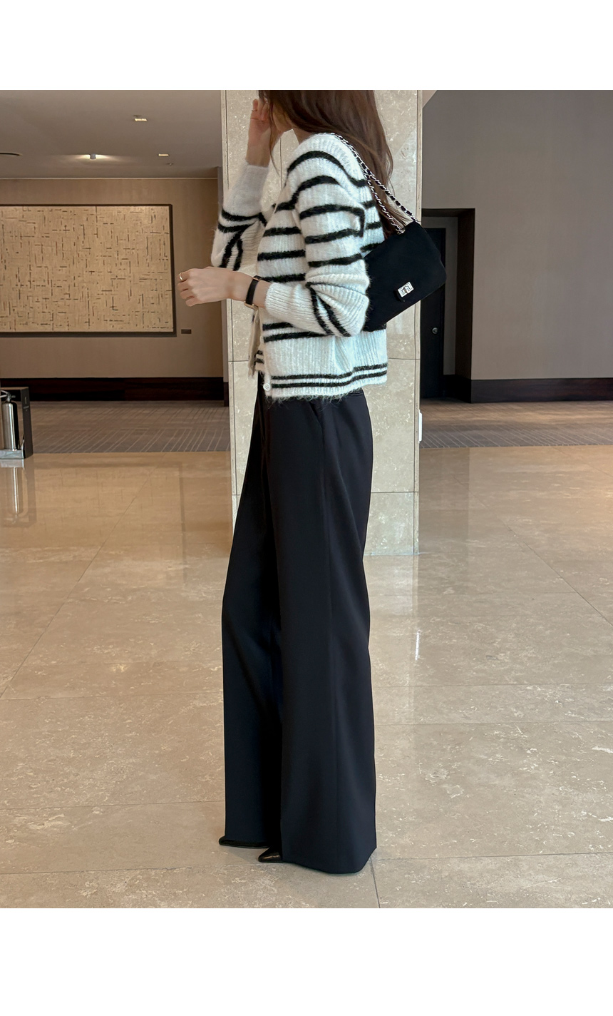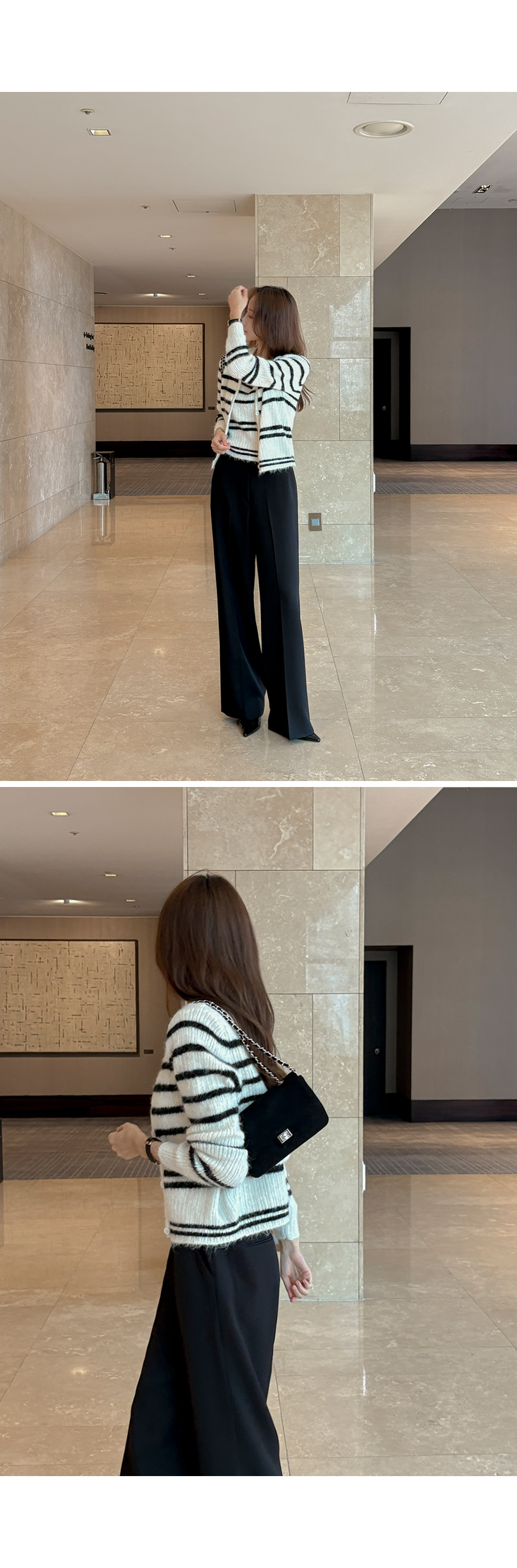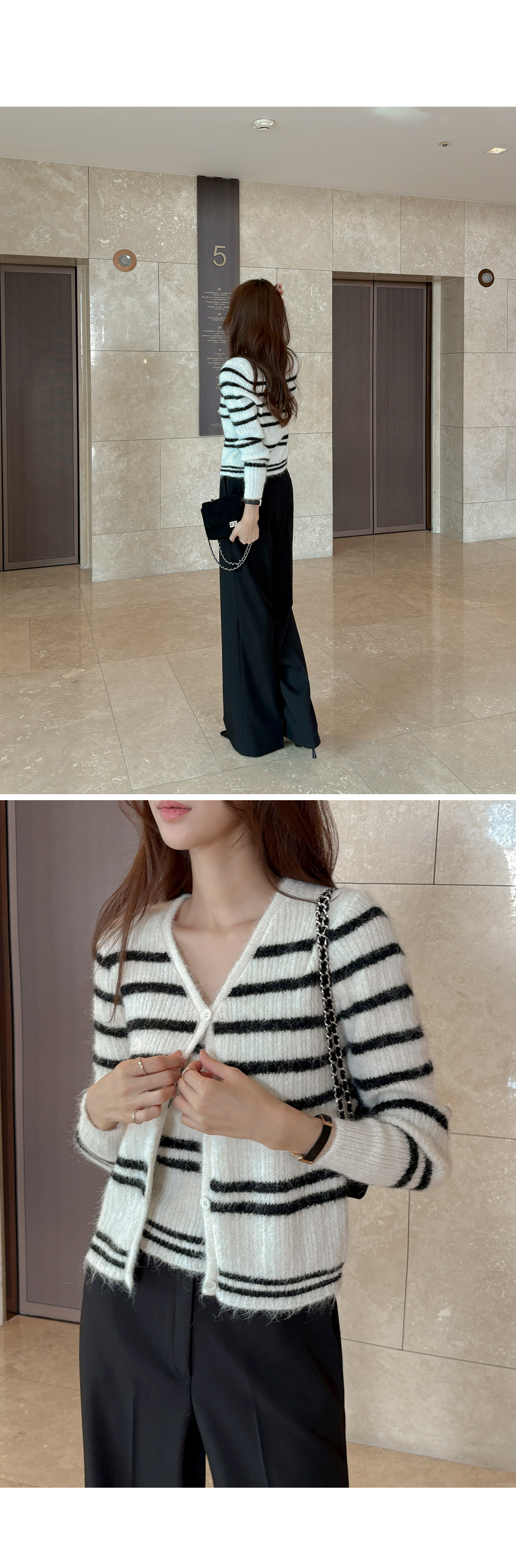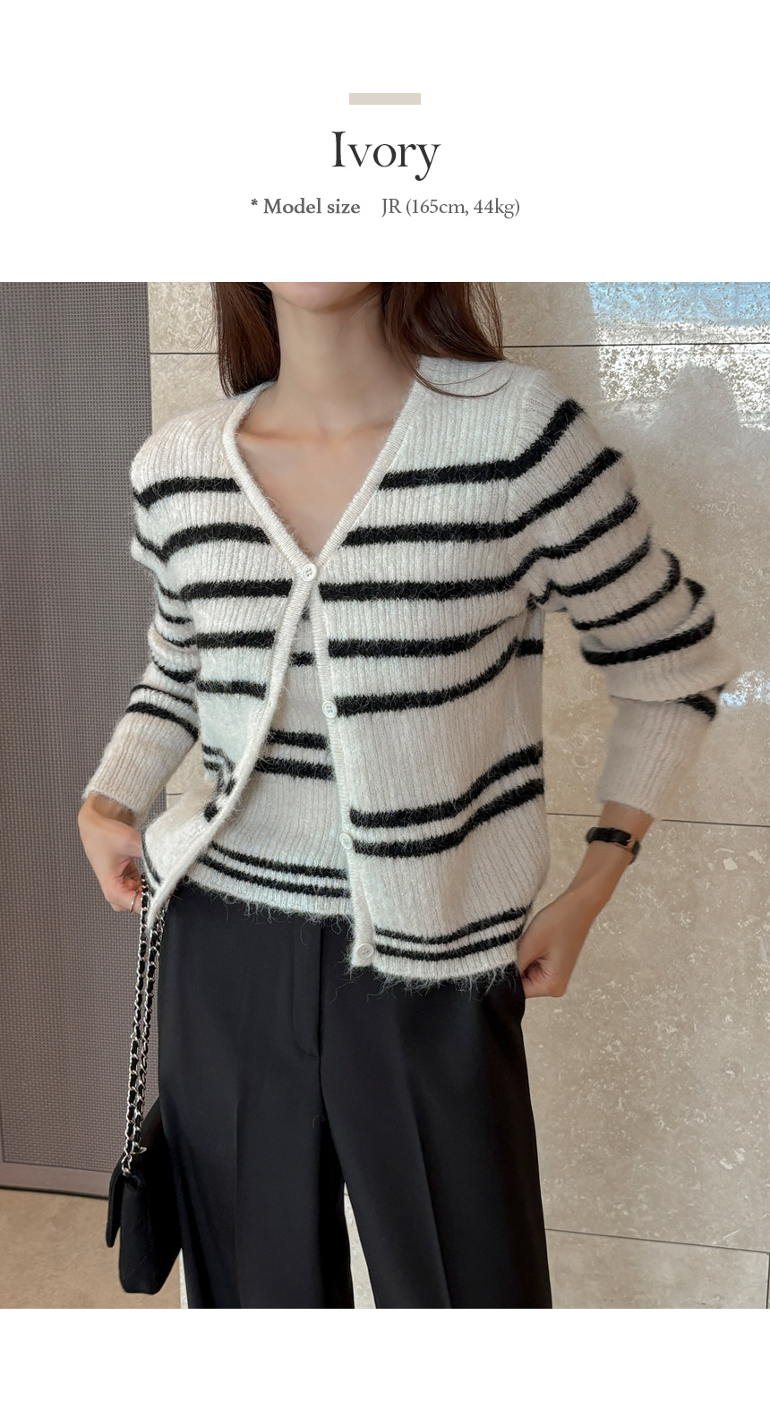 ストライプ ウール 袖なし ニット&カーディガン SET