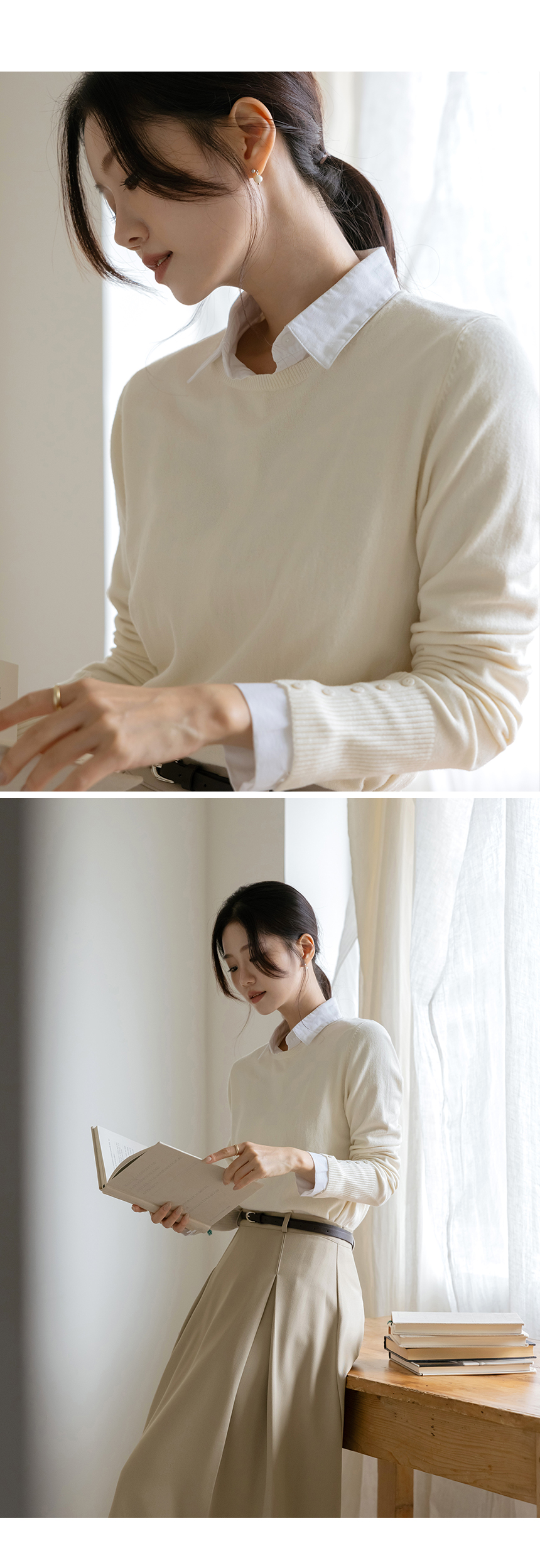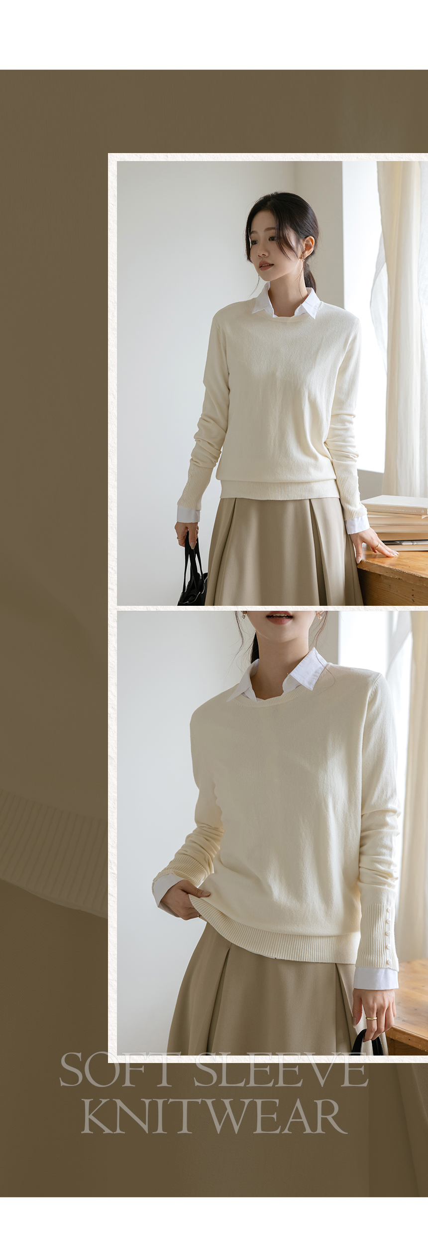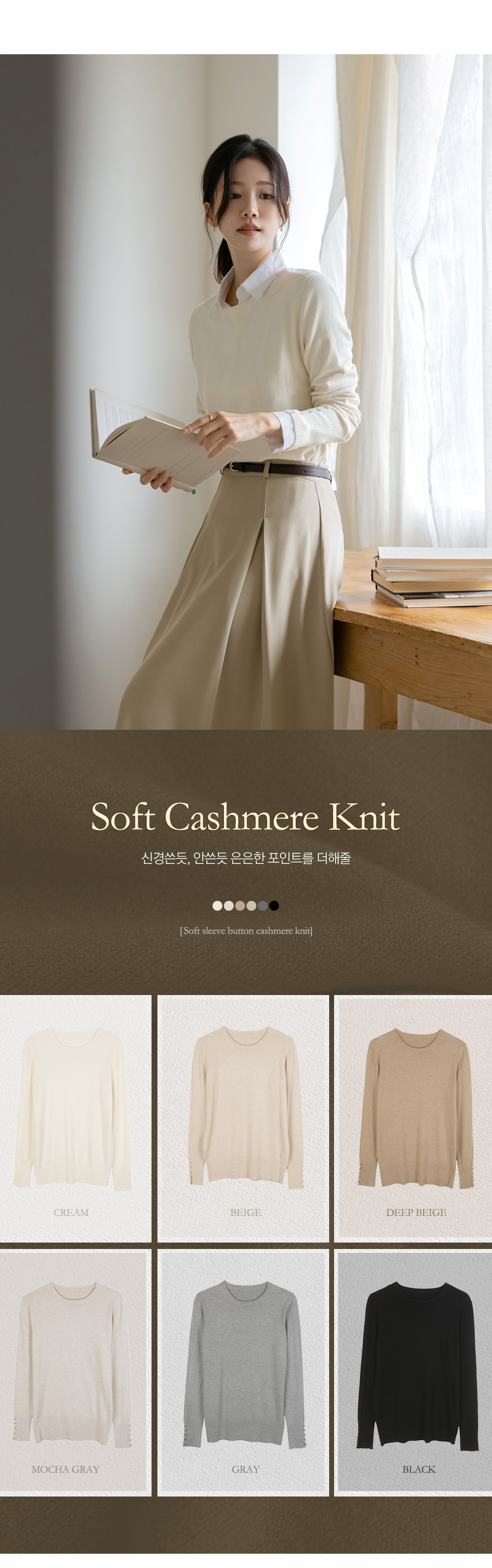 ソフト 袖 ボタン カシミア ニット