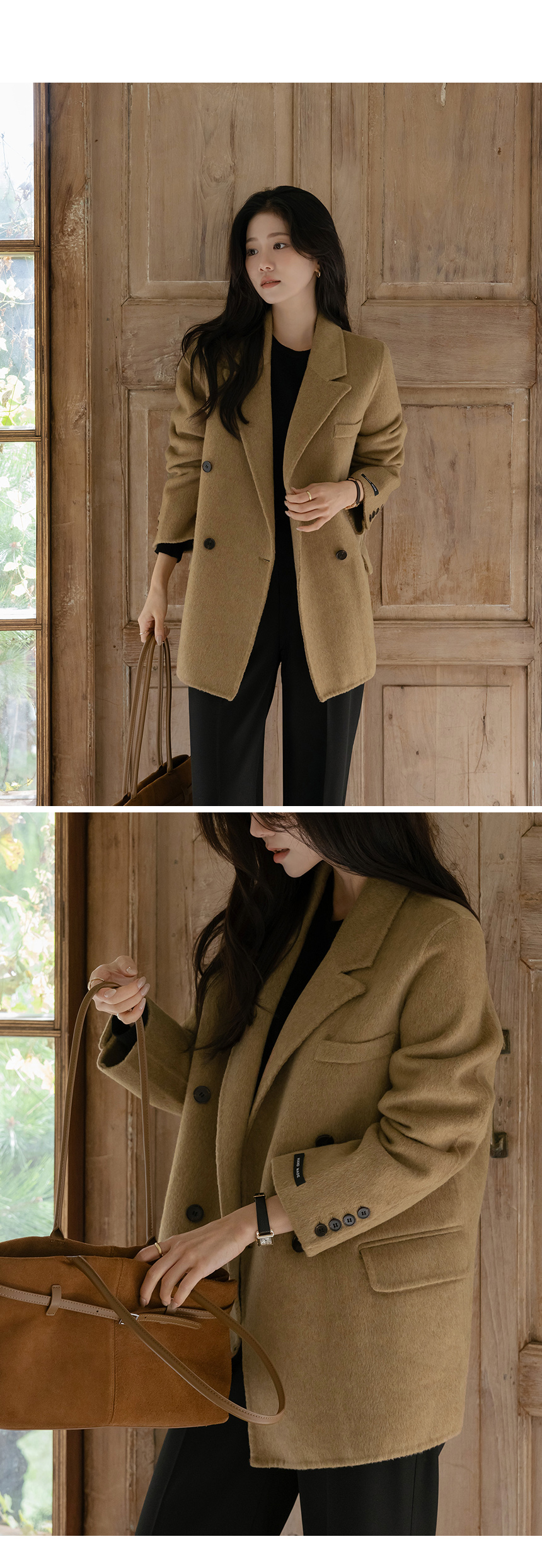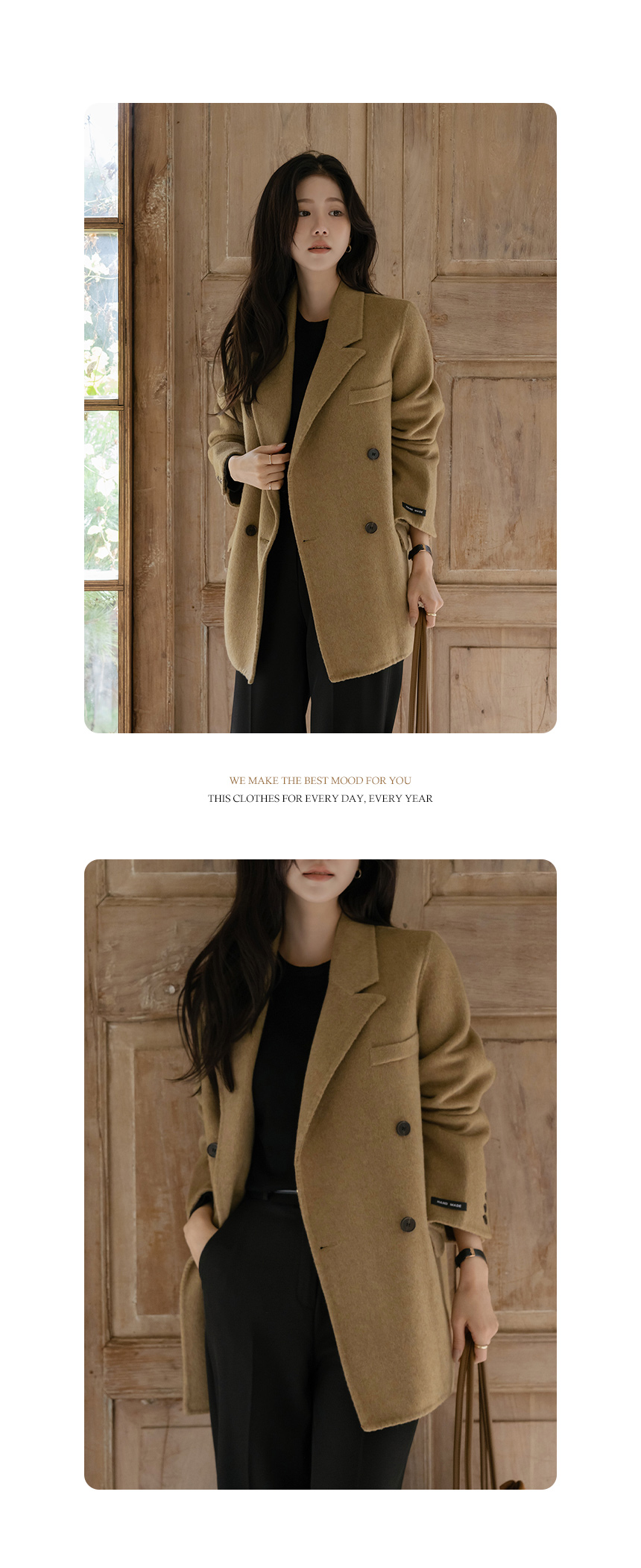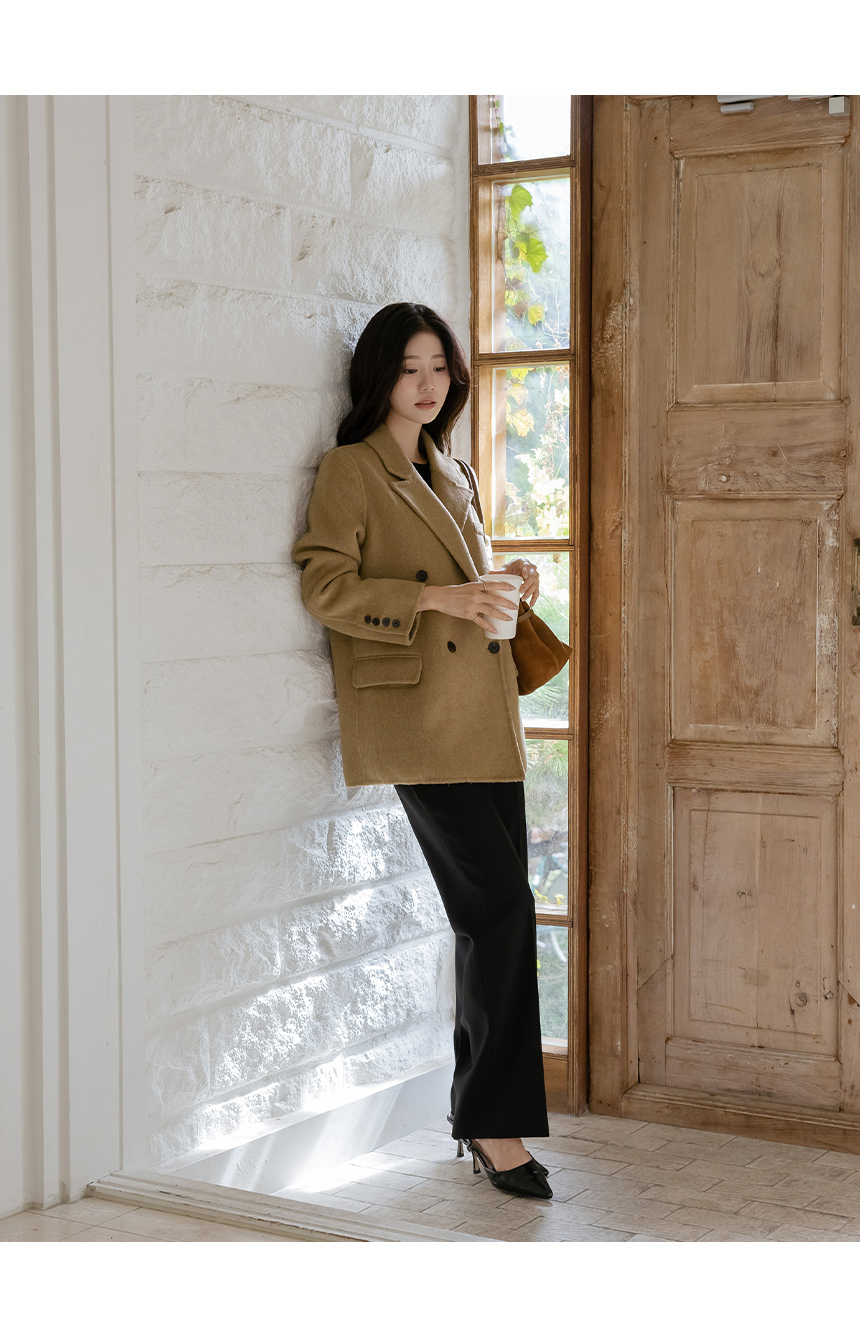 カラーネック ダブル ボタン ウール ハンドメード ハーフ コート