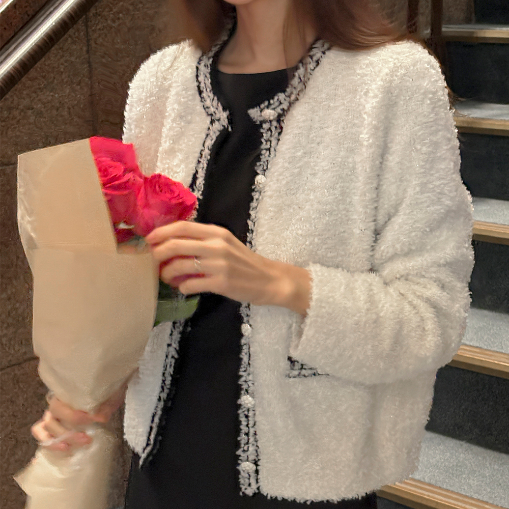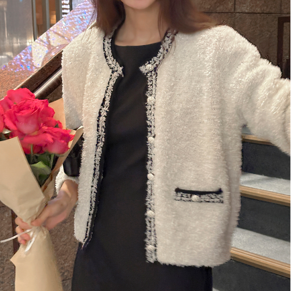 グリッター 配色 ライン タッセル カーディガン