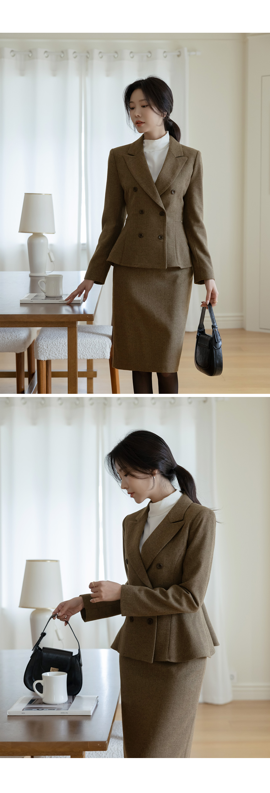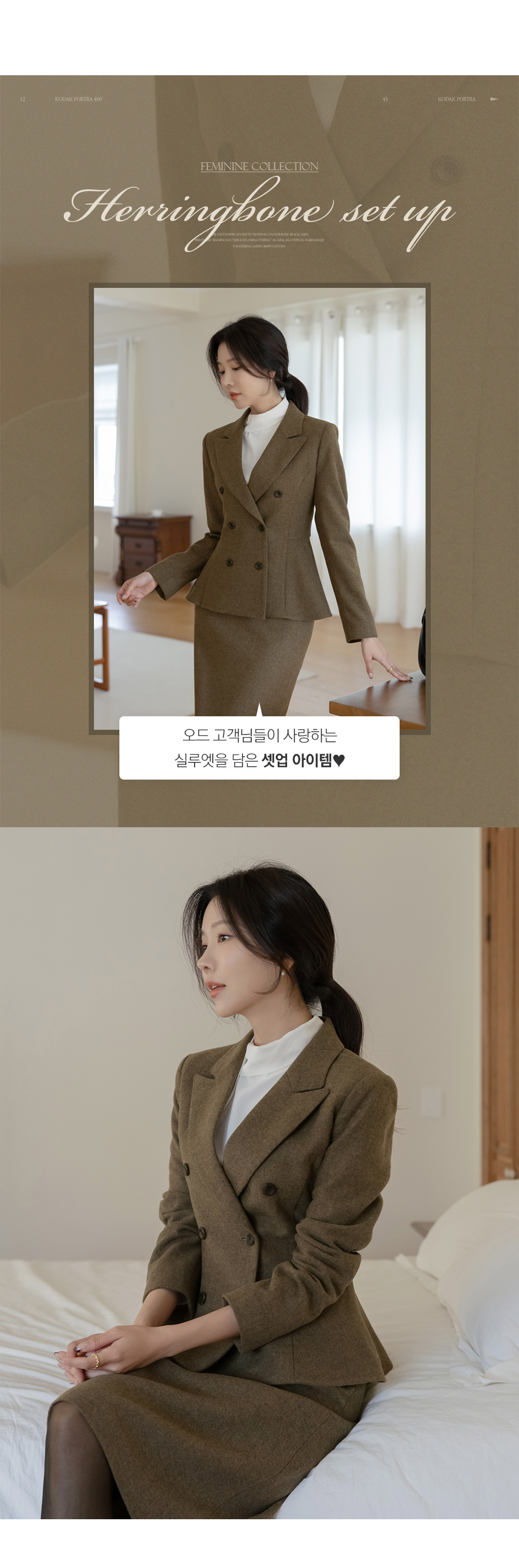 ODE ウール ヘリンボーン ペプラム Set-up ジャケット