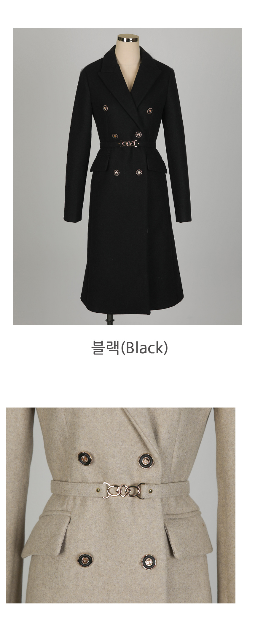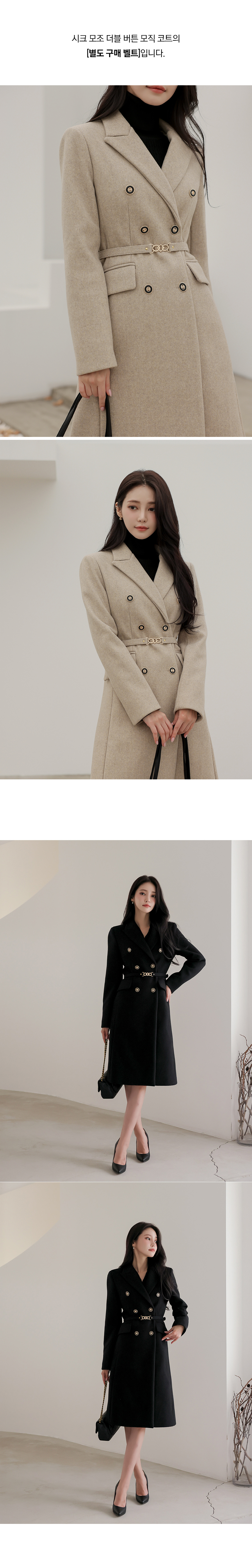 シック 模造 ダブル ボタン 毛織 コート_ベルト