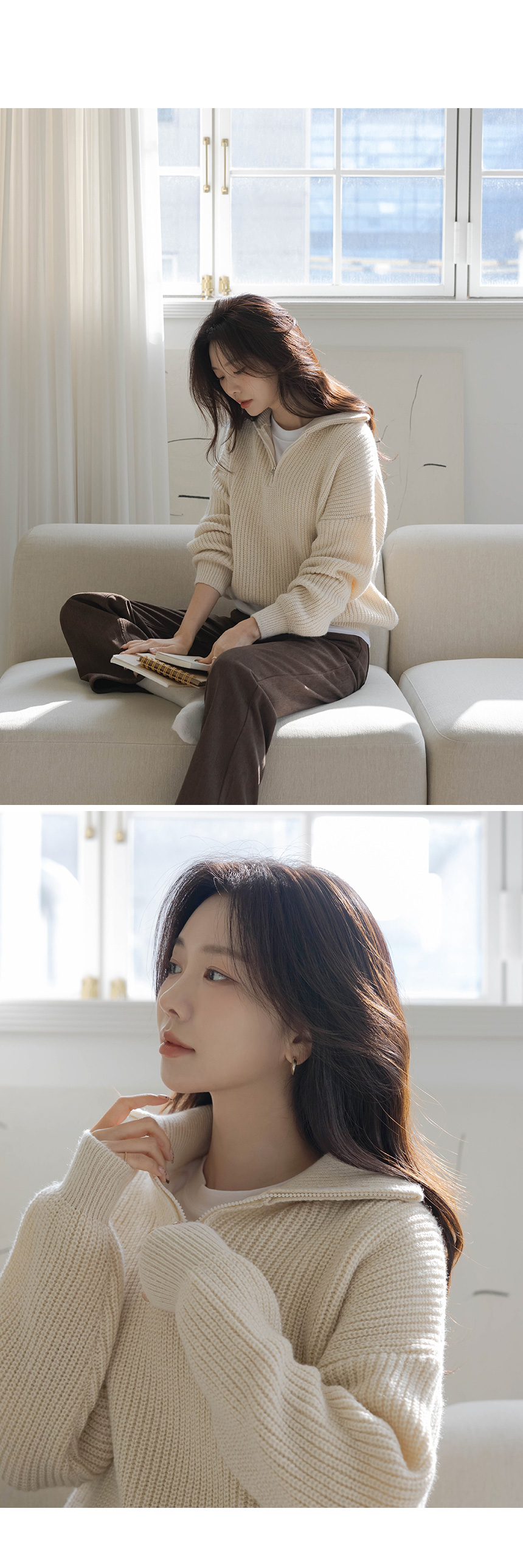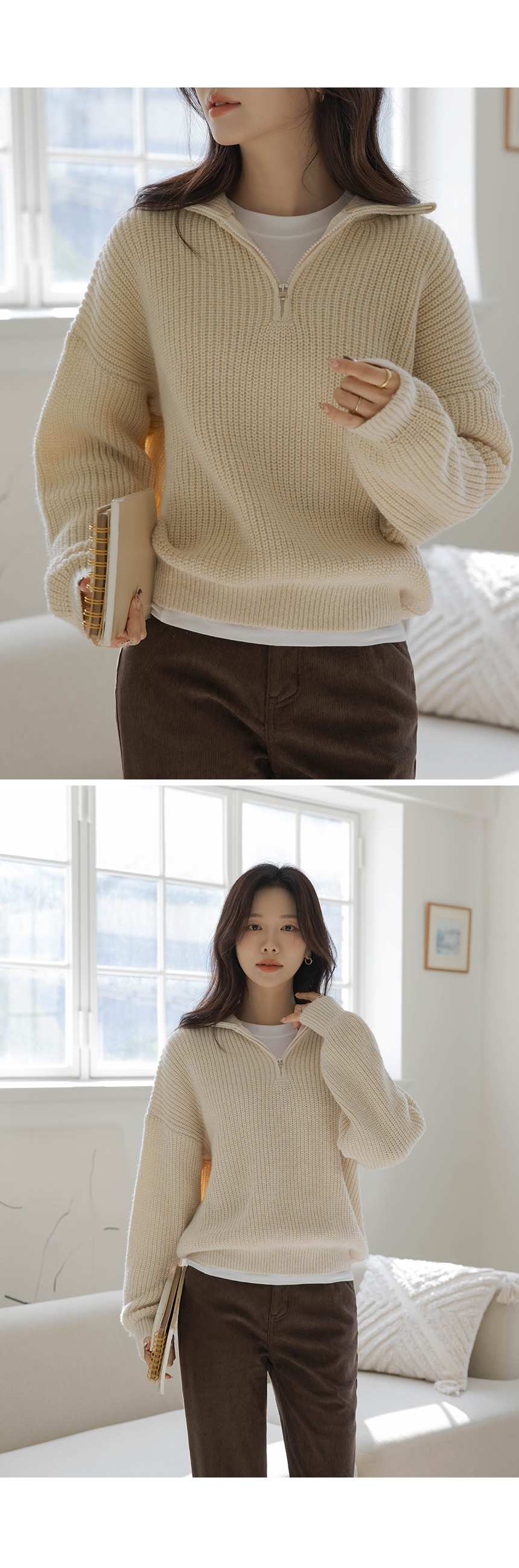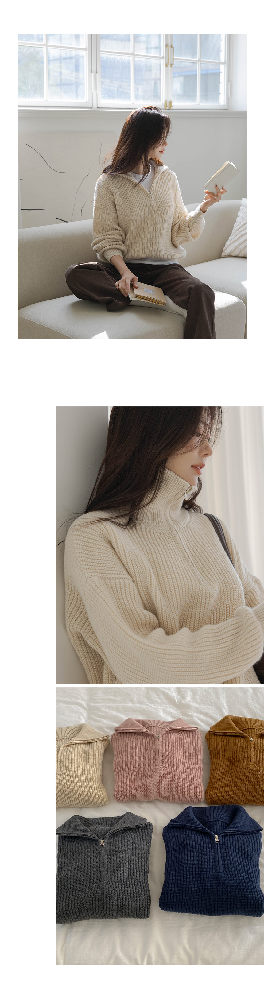 ハイネック ハーフ ジップアップ 分厚い ニット