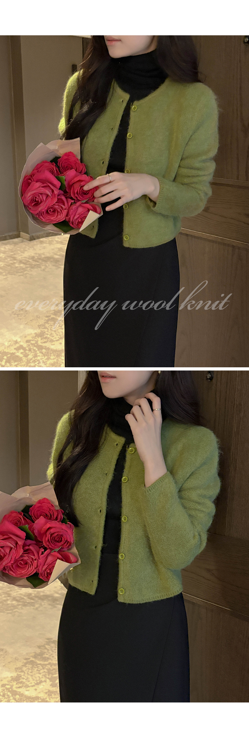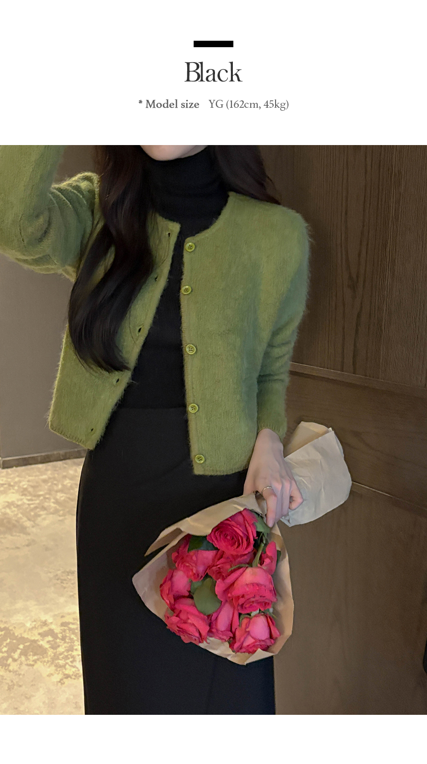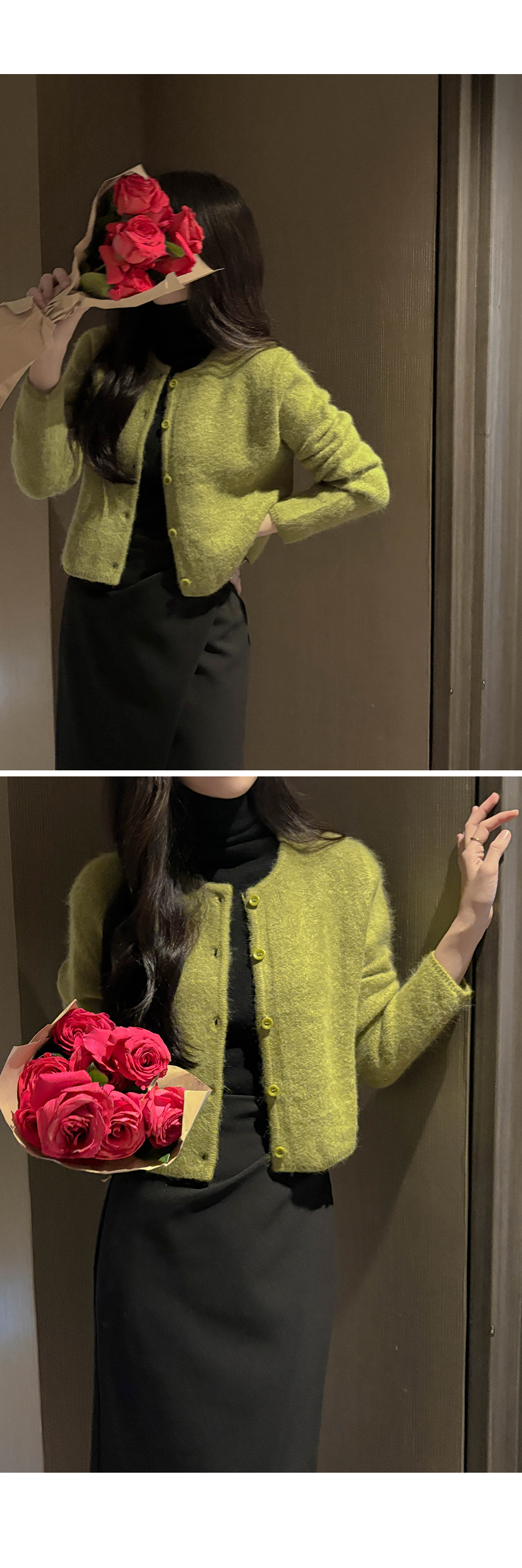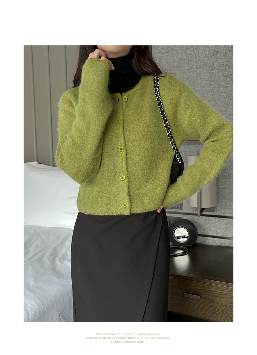 アンゴラ ふわふわ カラー ラウンドネック カーディガン