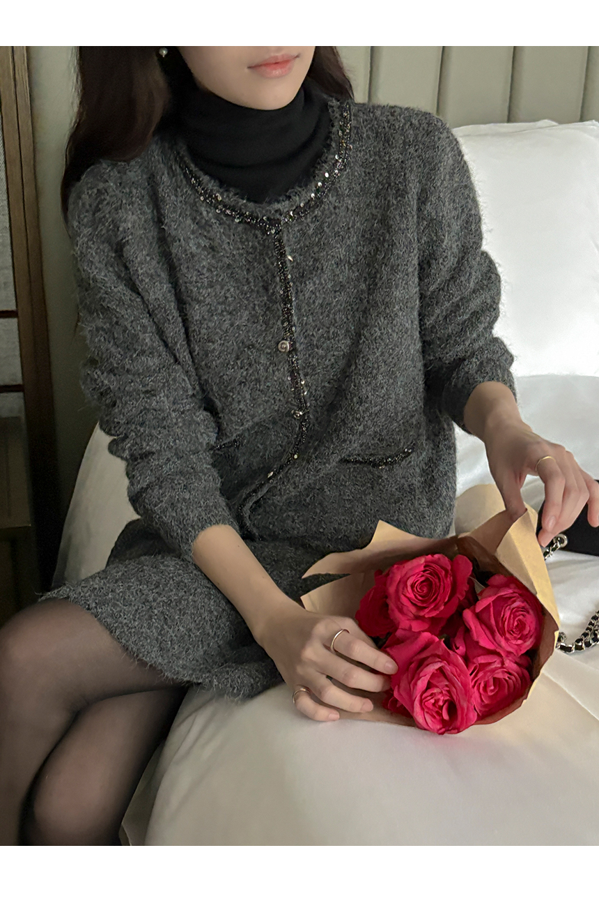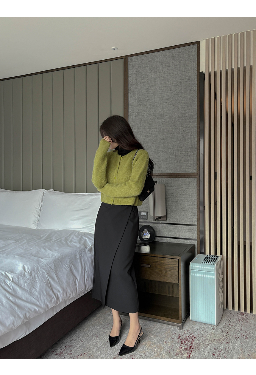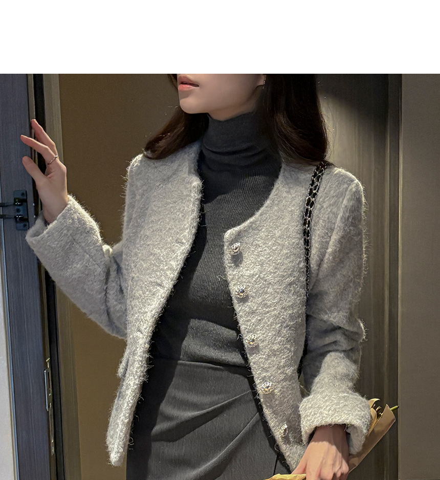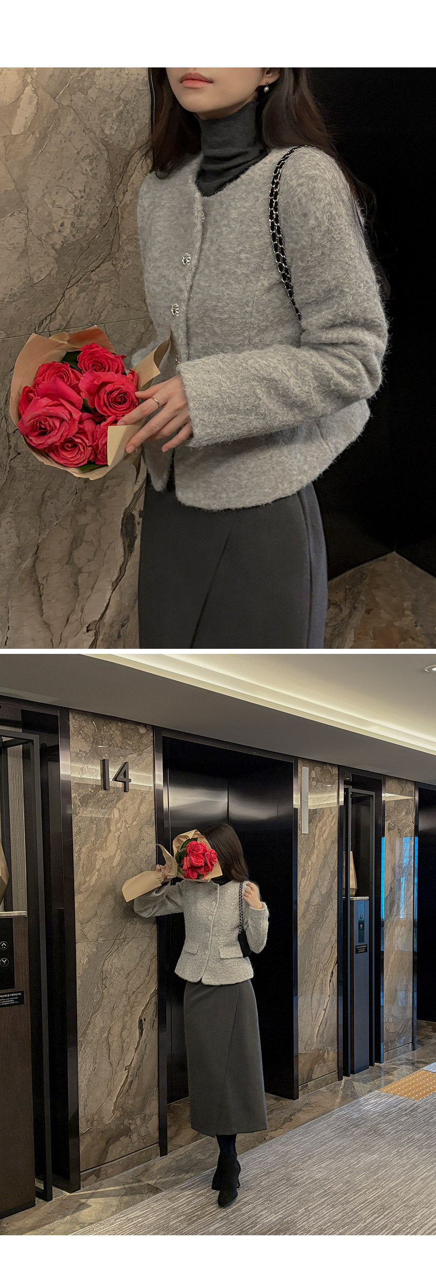 アンゴラ ふわふわ カラー ラウンドネック カーディガン