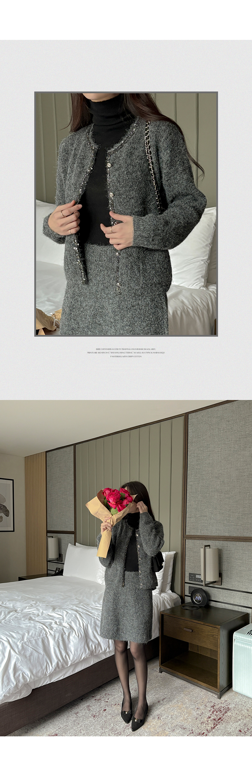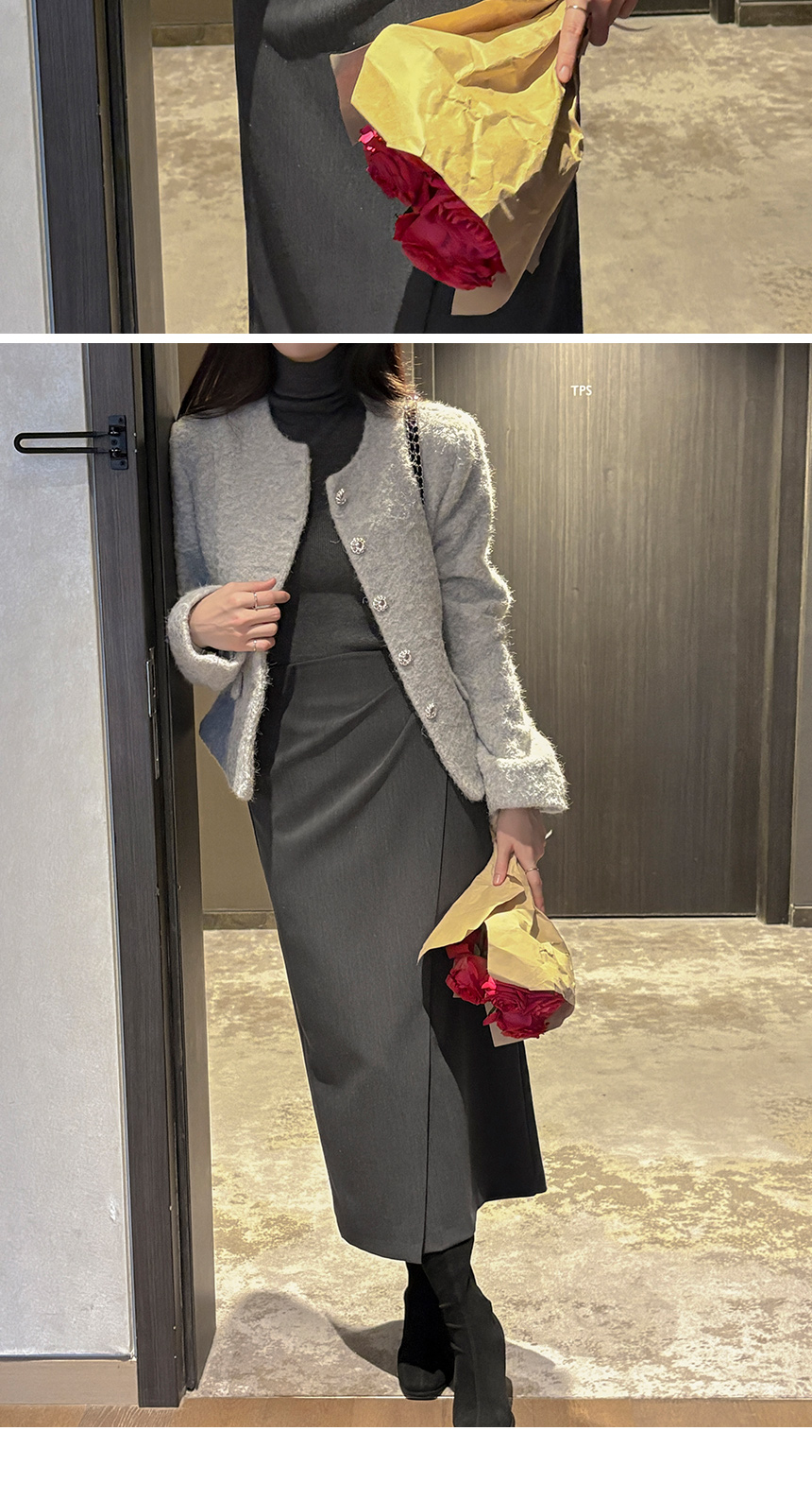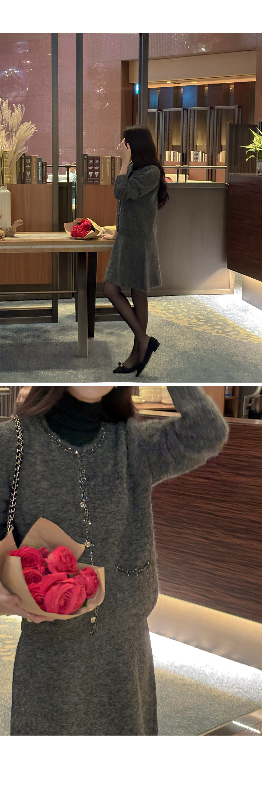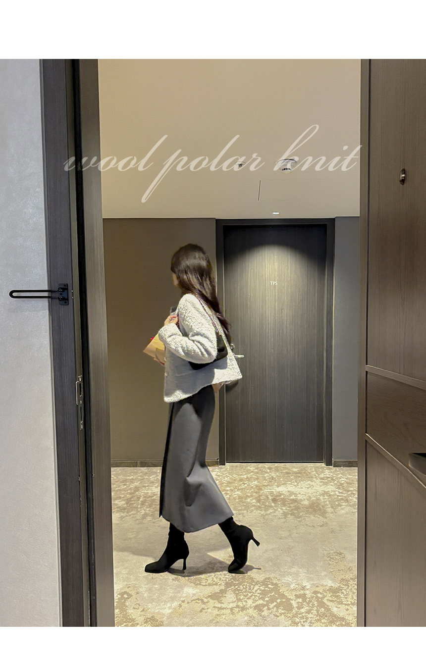 アンゴラ ふわふわ カラー ラウンドネック カーディガン