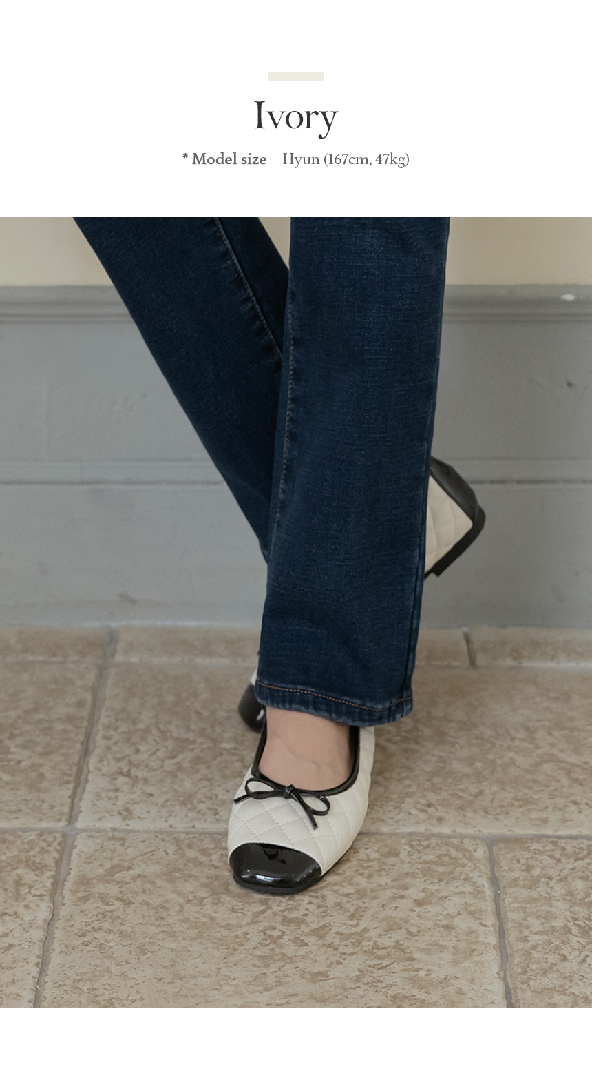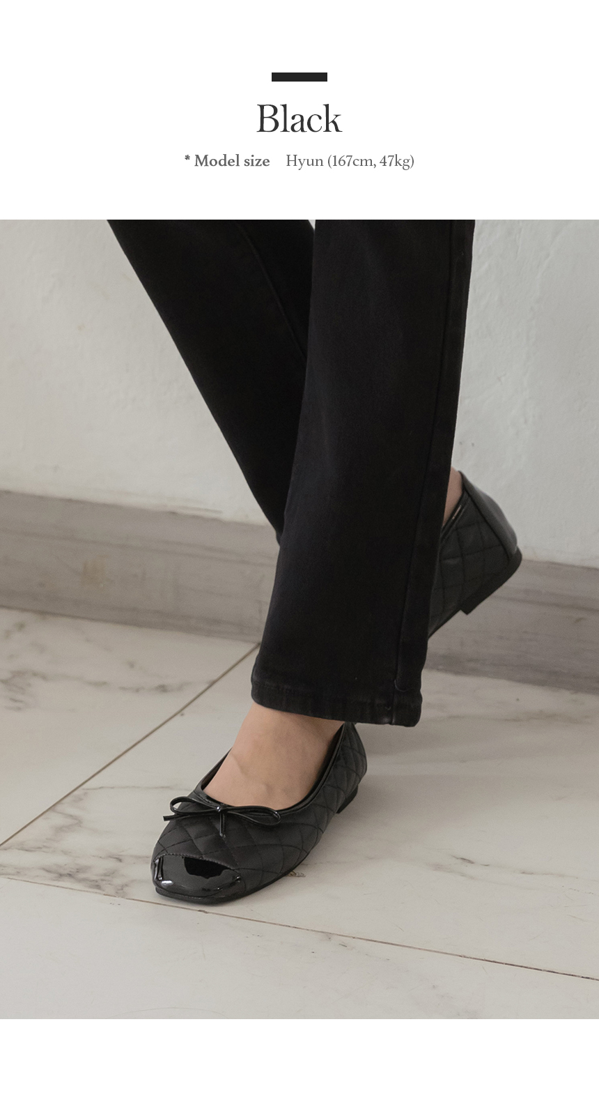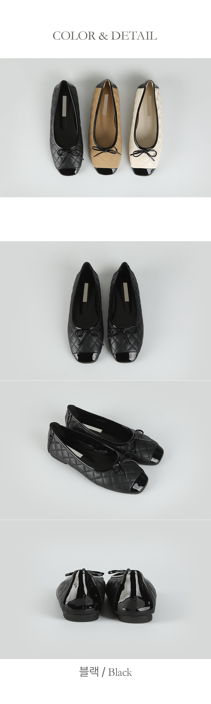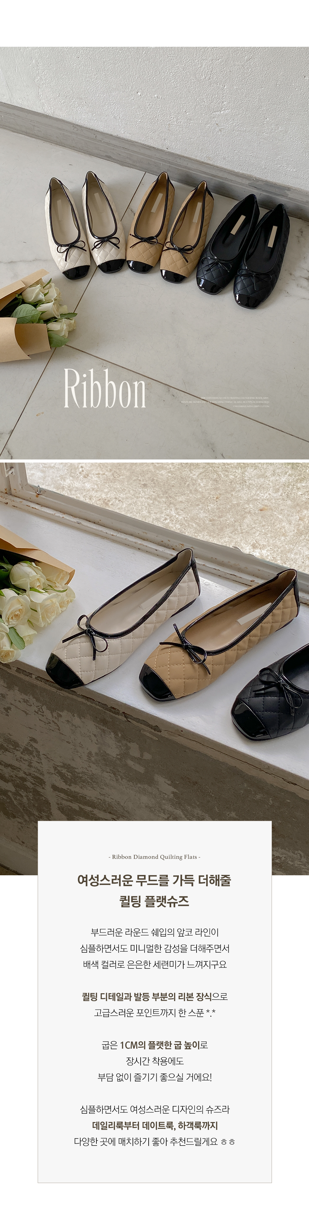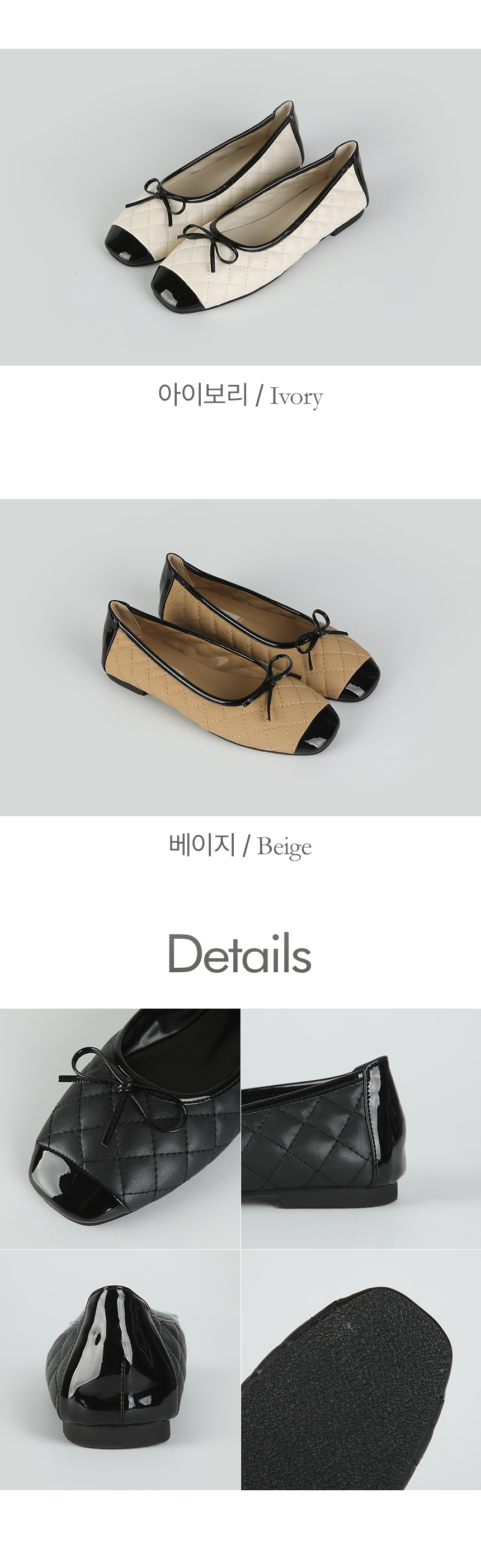リボン ダイヤモンド キルティング 配色 フラットシューズ