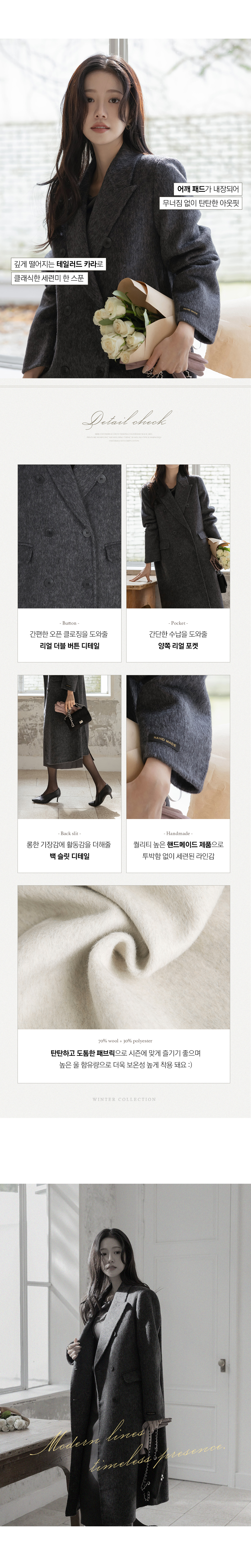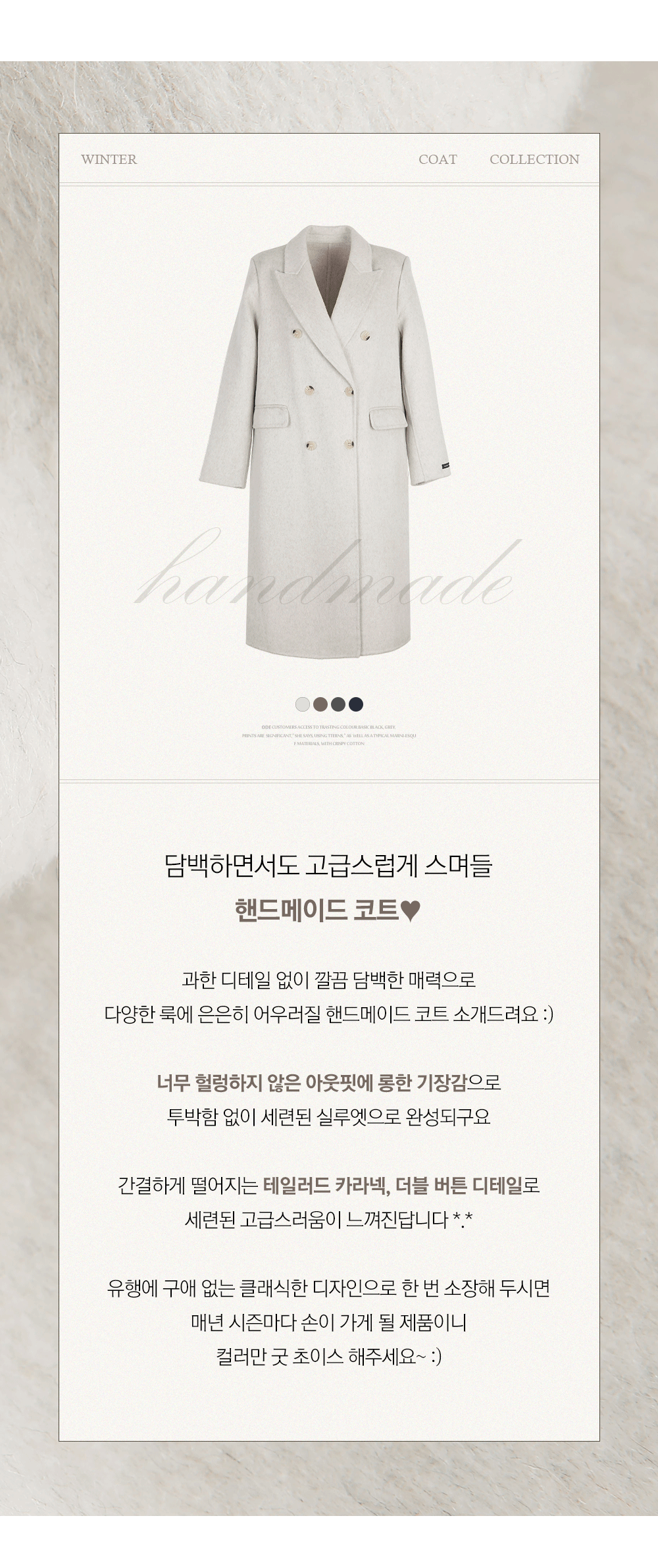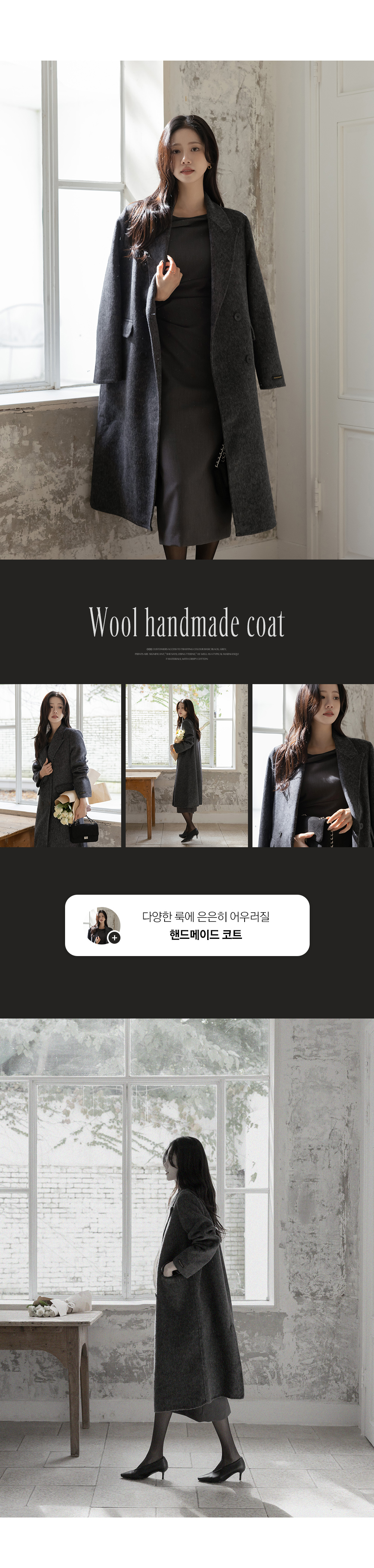テーラードカラー ダブル ボタン ウール ハンドメード コート