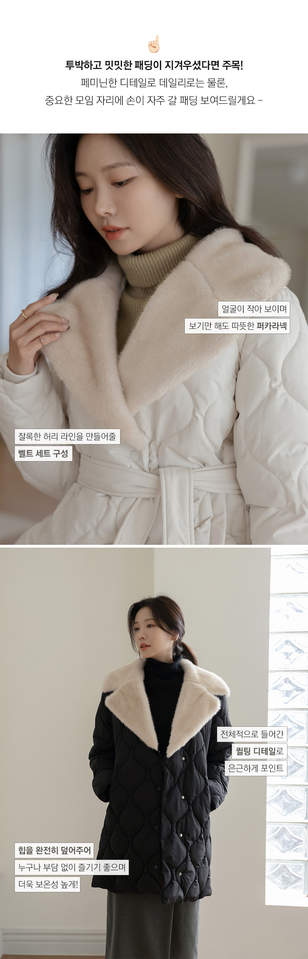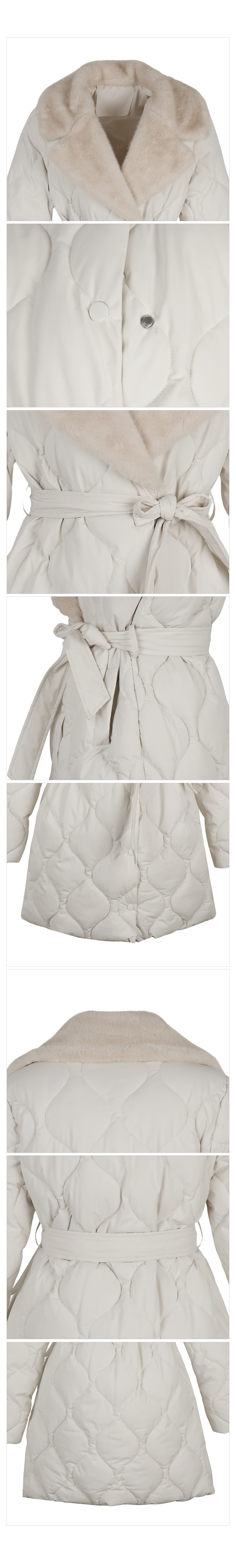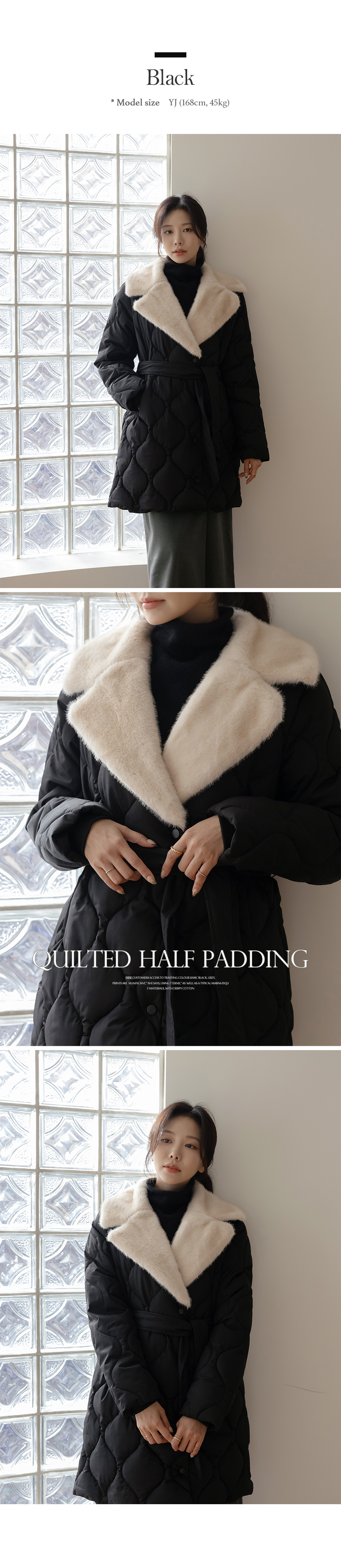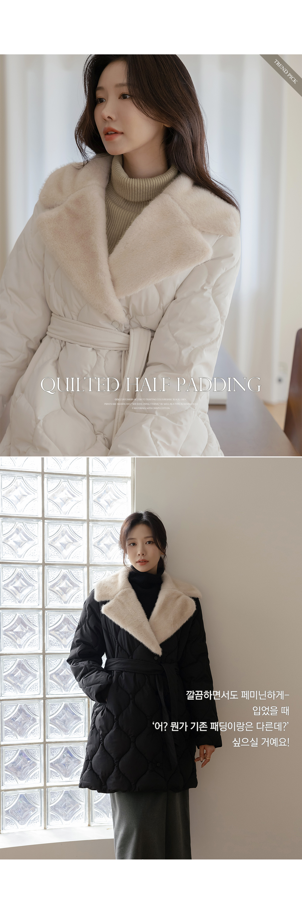 ファー カラーネック 人造ダウン キルティング ハーフ バディング(+ベルト)