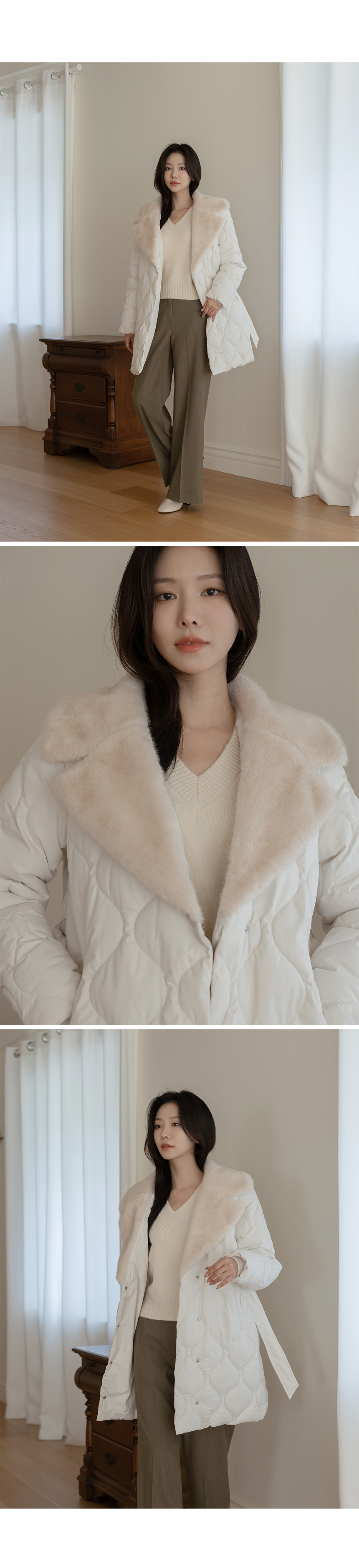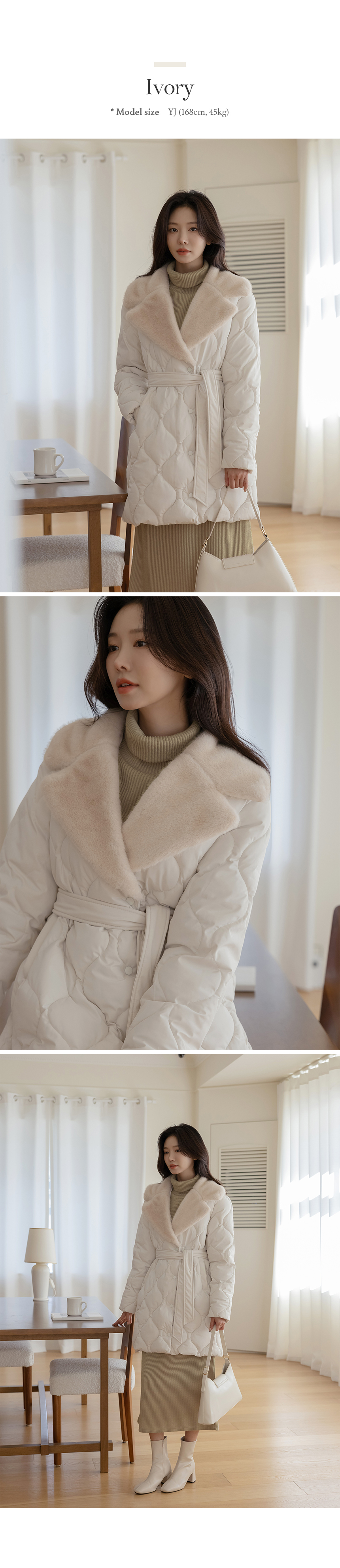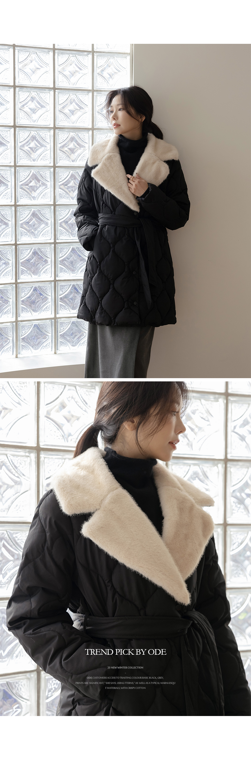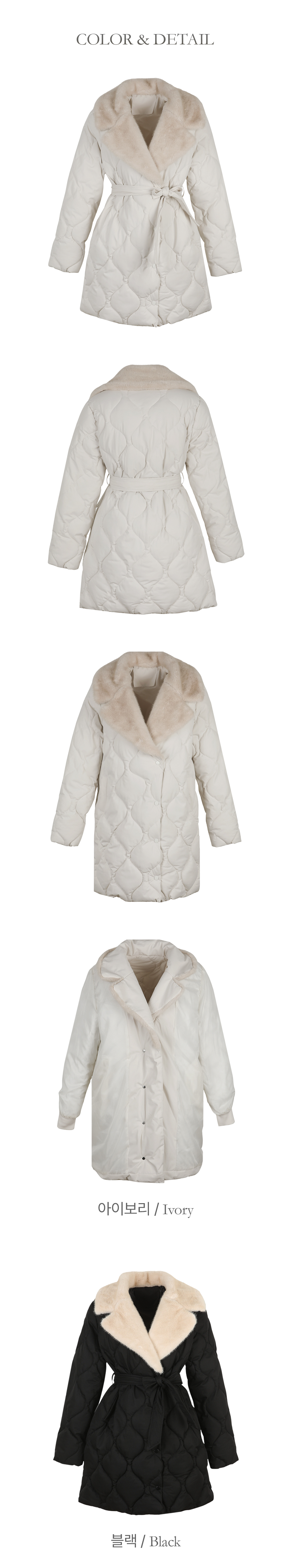 ファー カラーネック 人造ダウン キルティング ハーフ バディング(+ベルト)