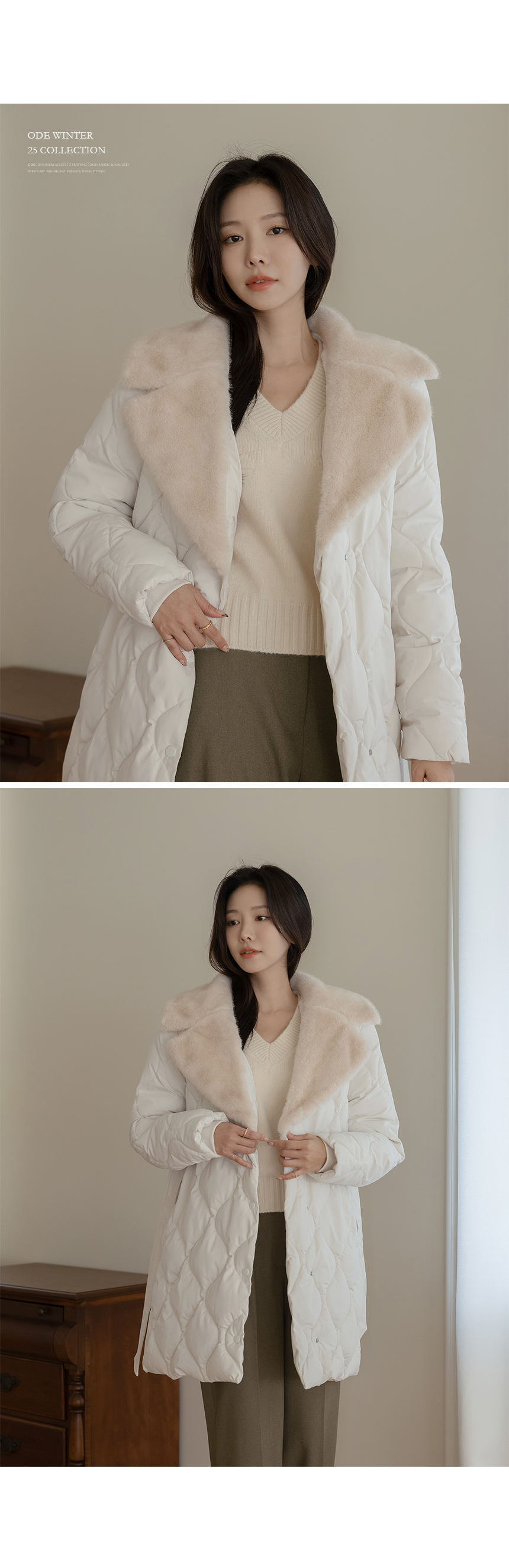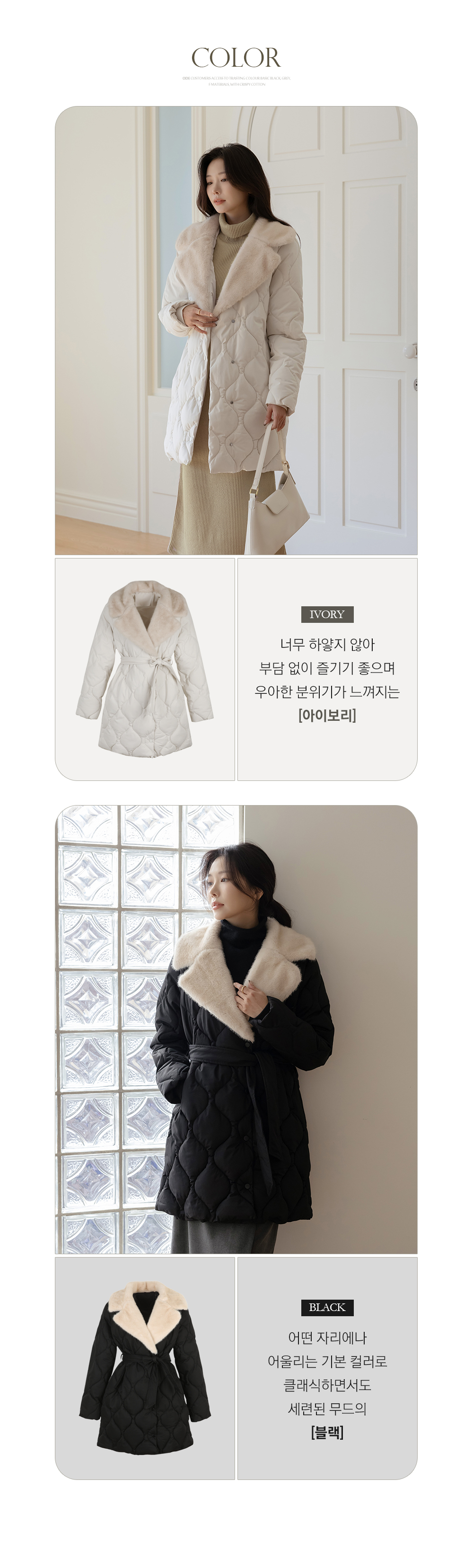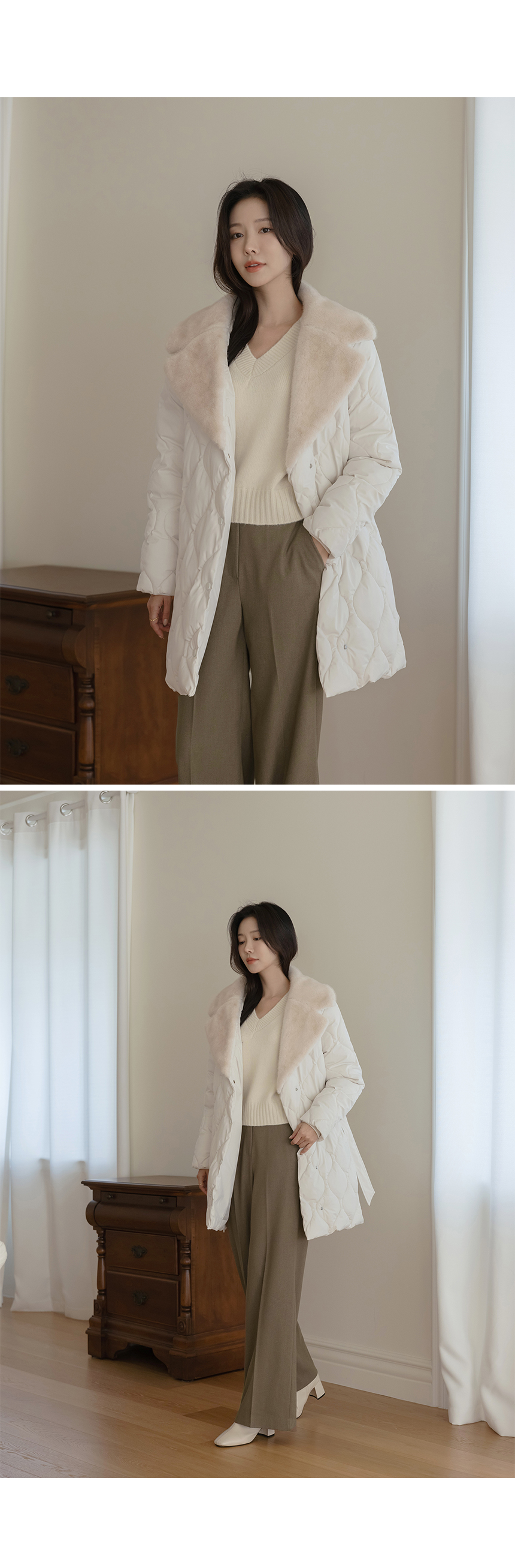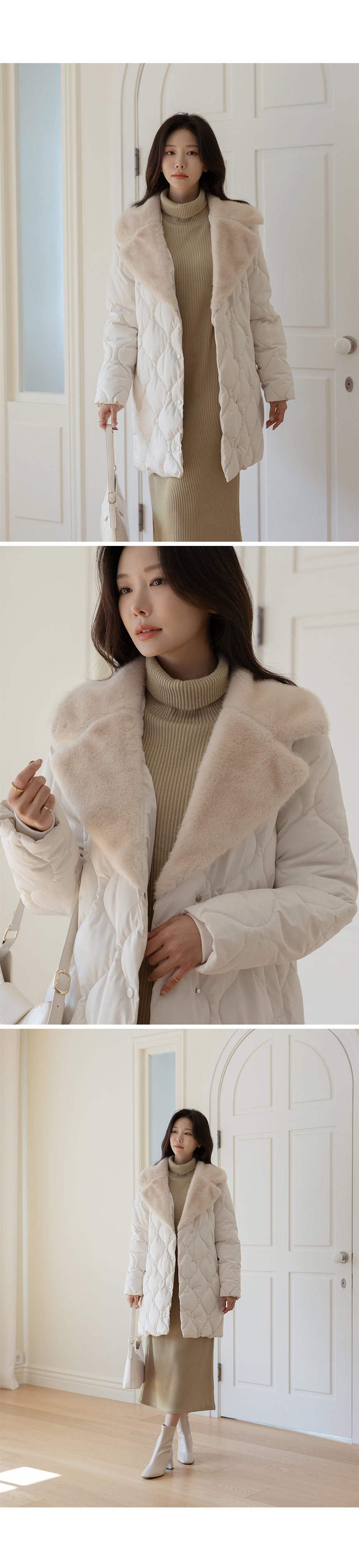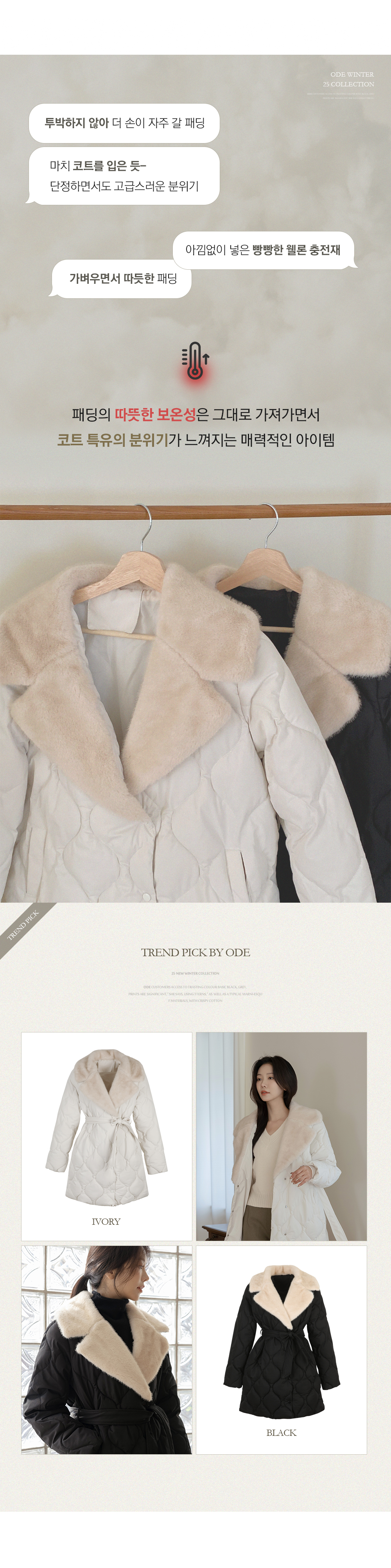 ファー カラーネック 人造ダウン キルティング ハーフ バディング(+ベルト)