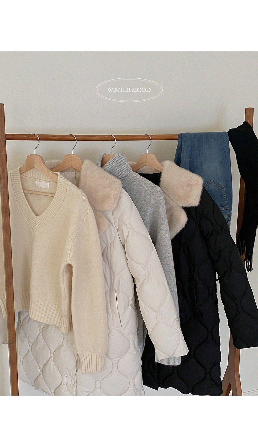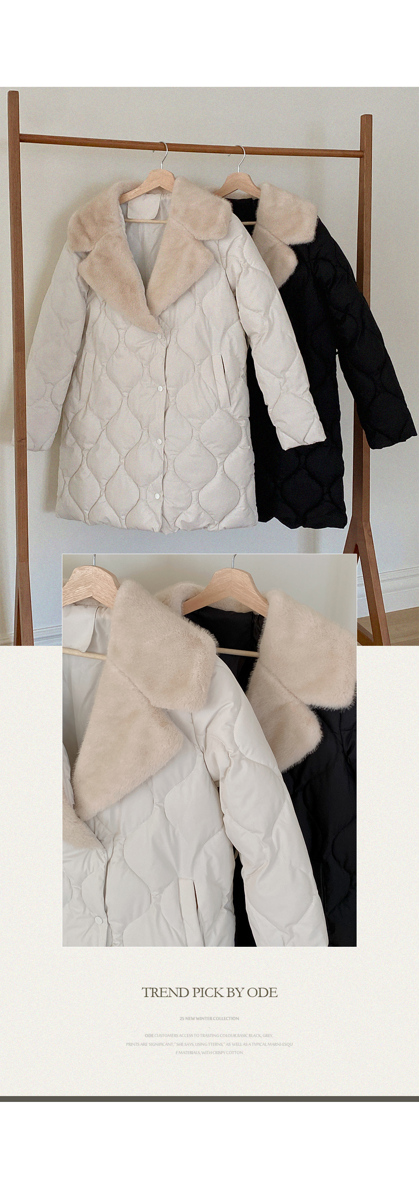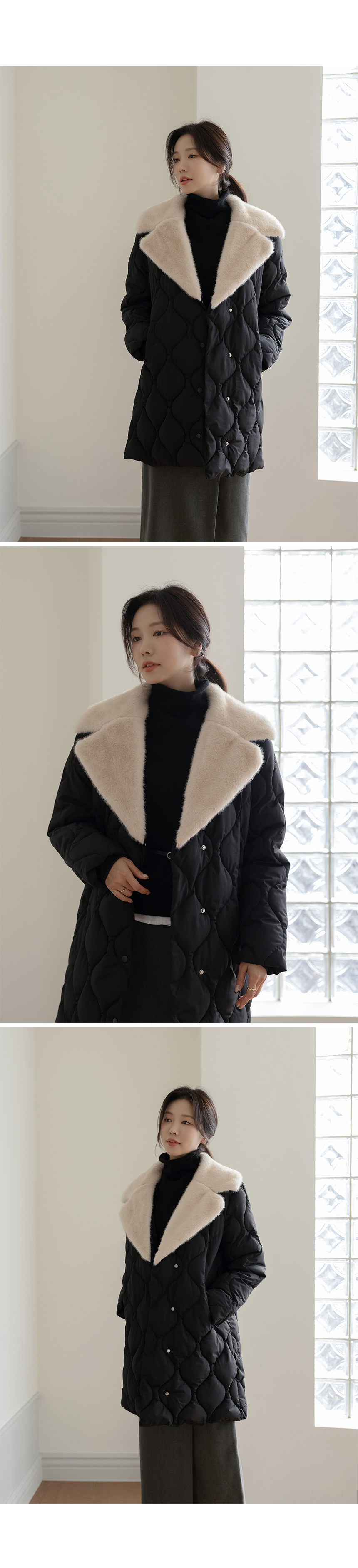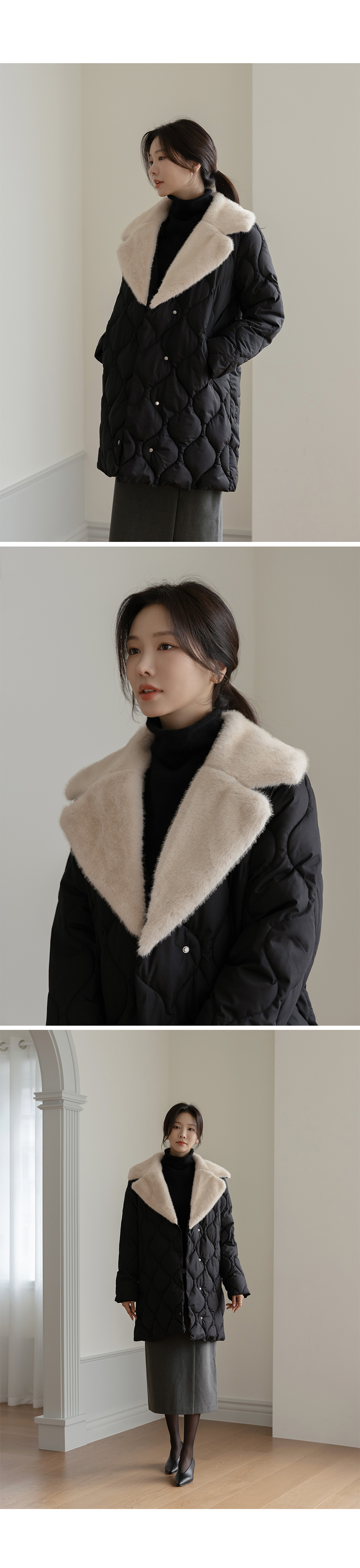ファー カラーネック 人造ダウン キルティング ハーフ バディング(+ベルト)