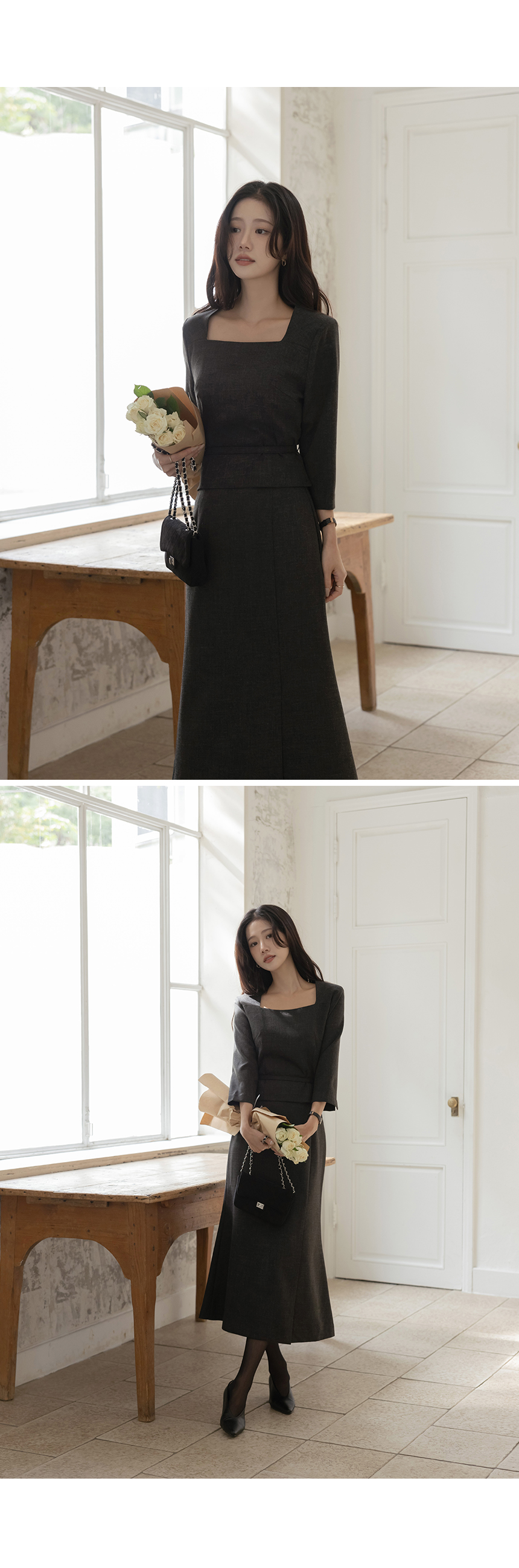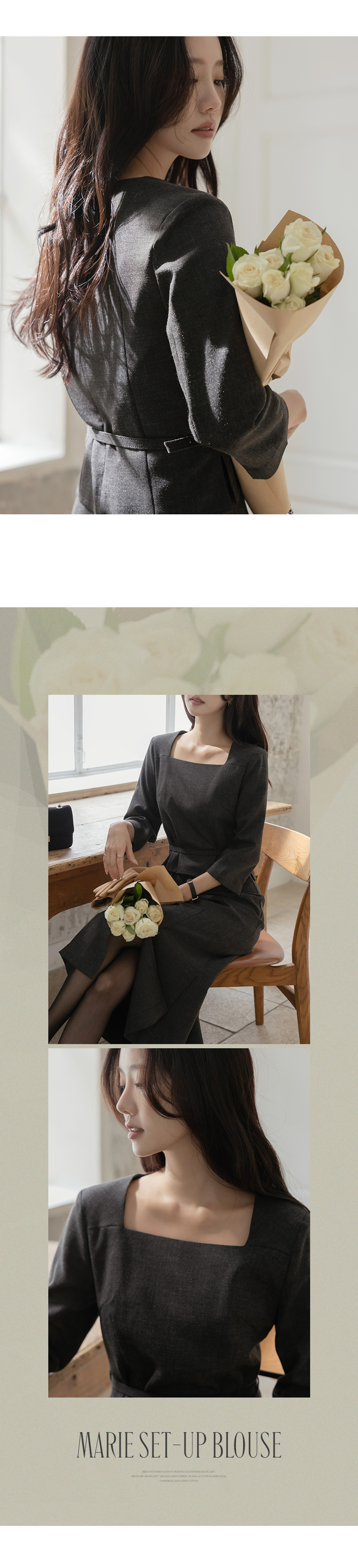 Mari スクエアネック クロップド Set-up ブラウス(+ベルト)