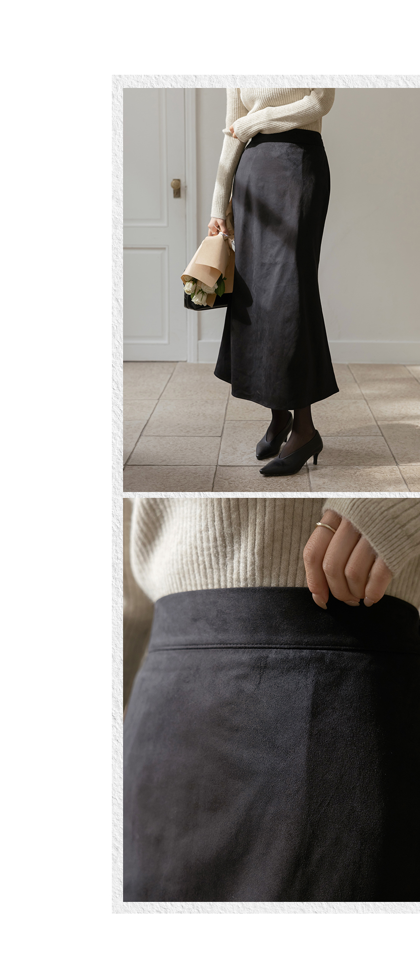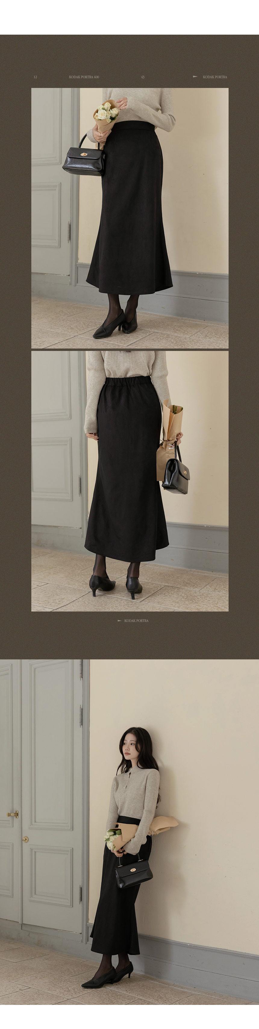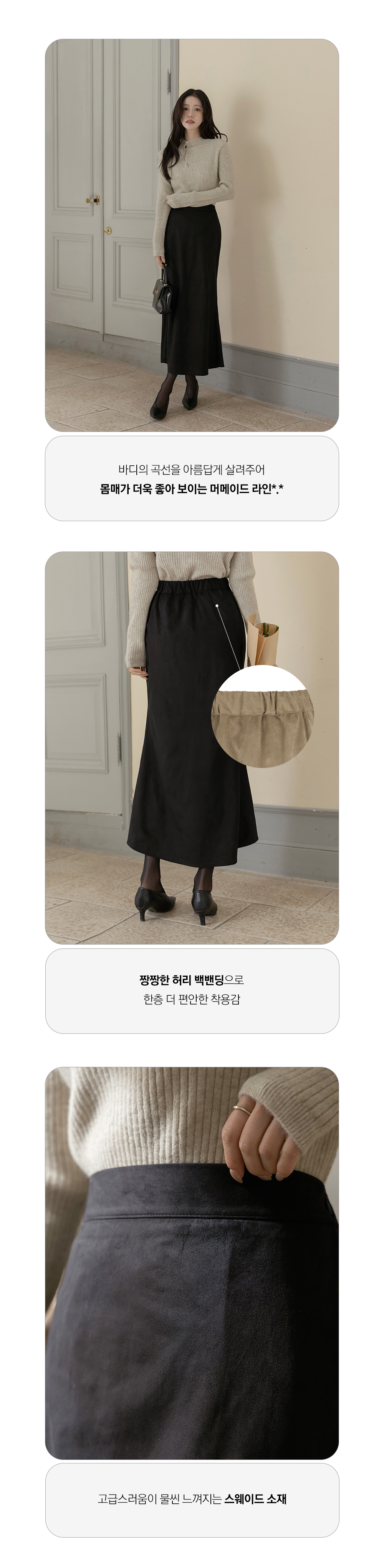 スエード 後面バンド マーメイド ロング スカート