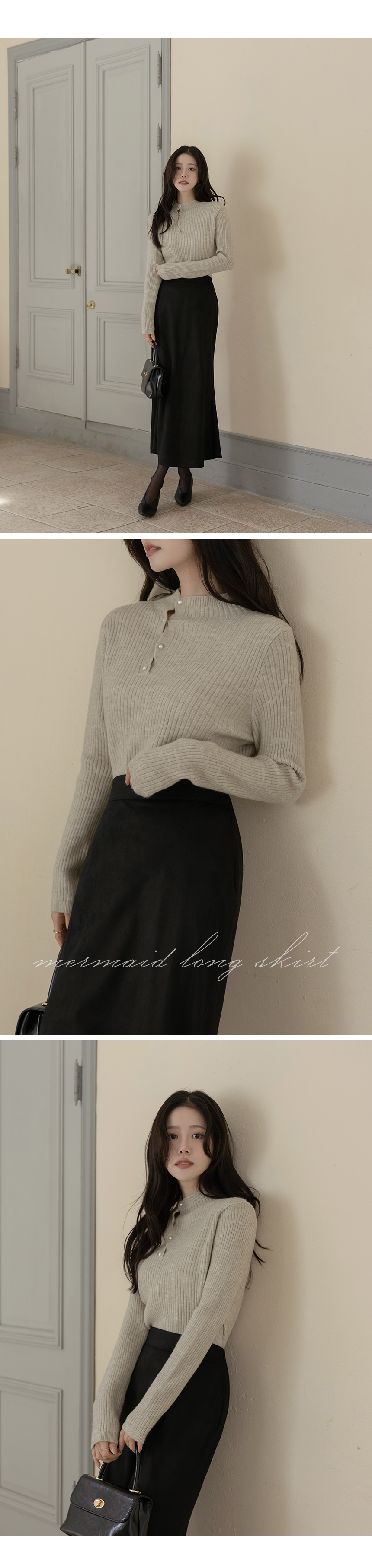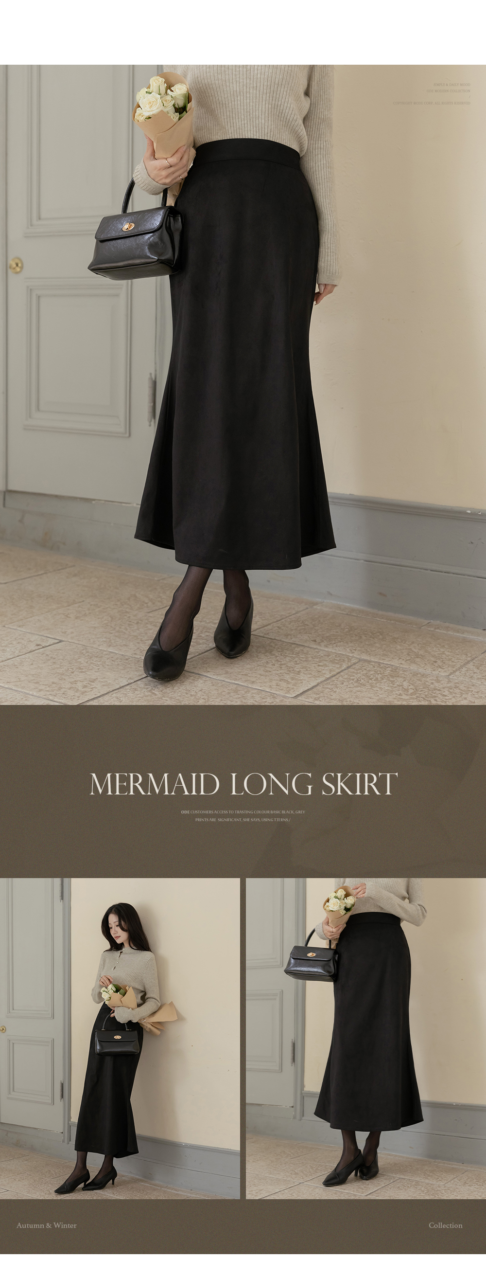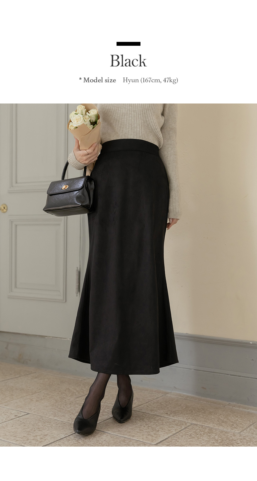 スエード 後面バンド マーメイド ロング スカート