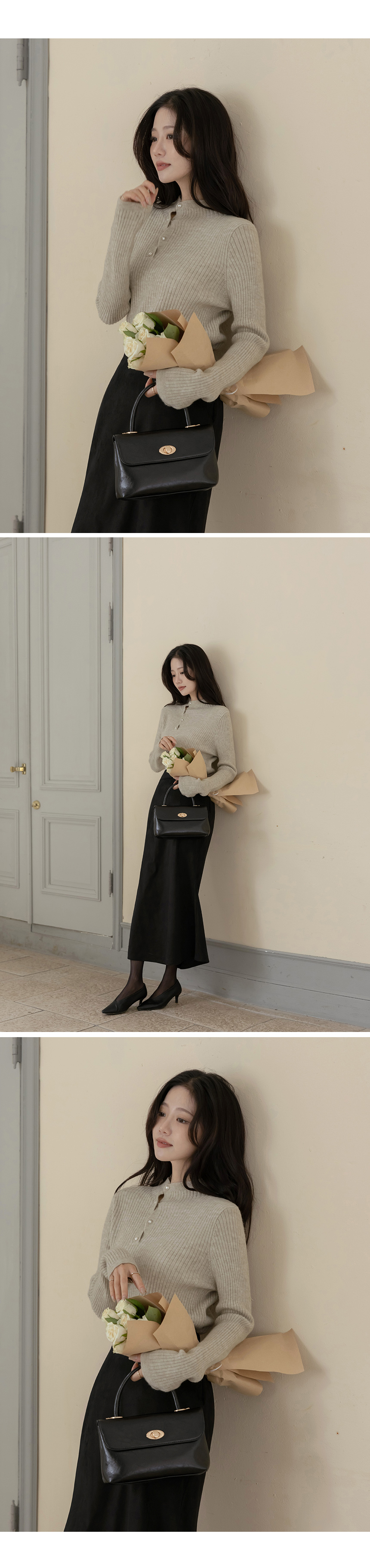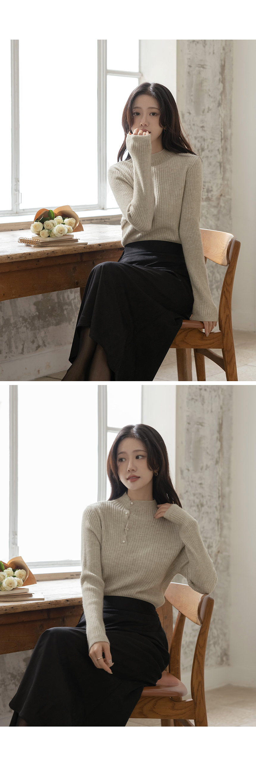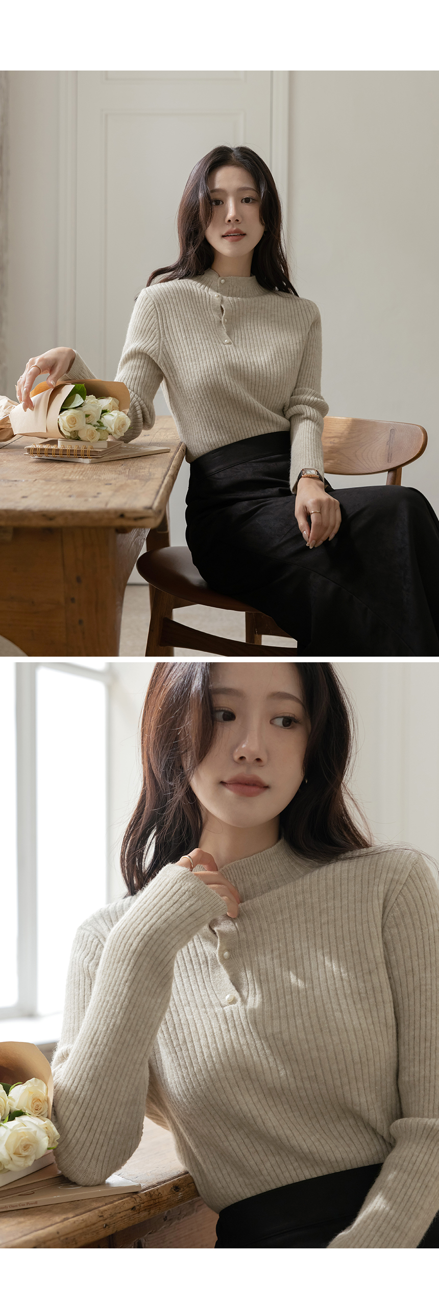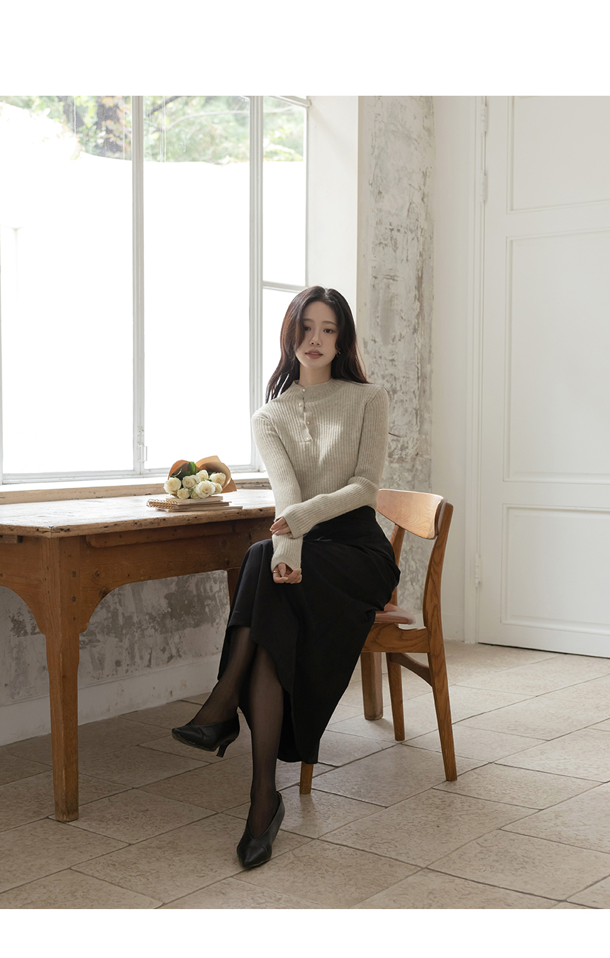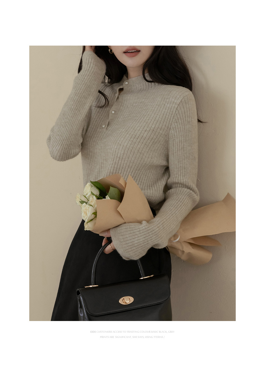 セミハイネック 真珠 縒り ボタン コール天 ニット