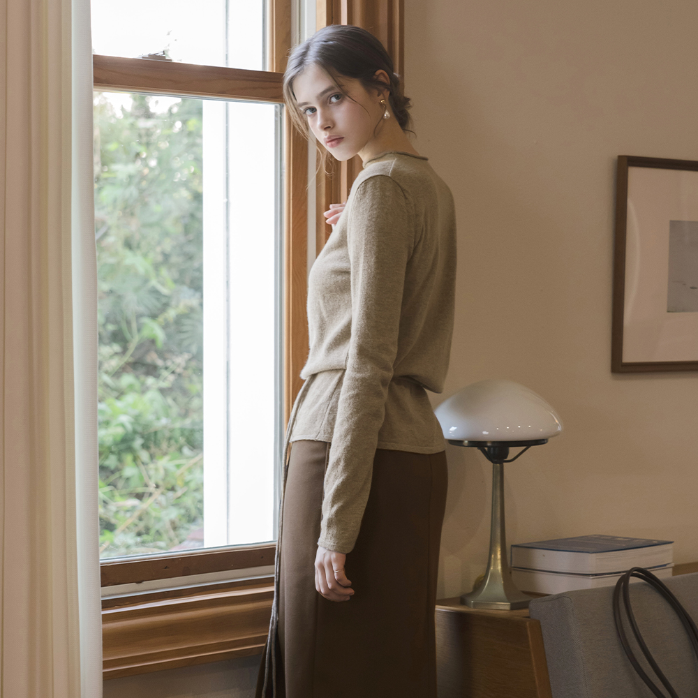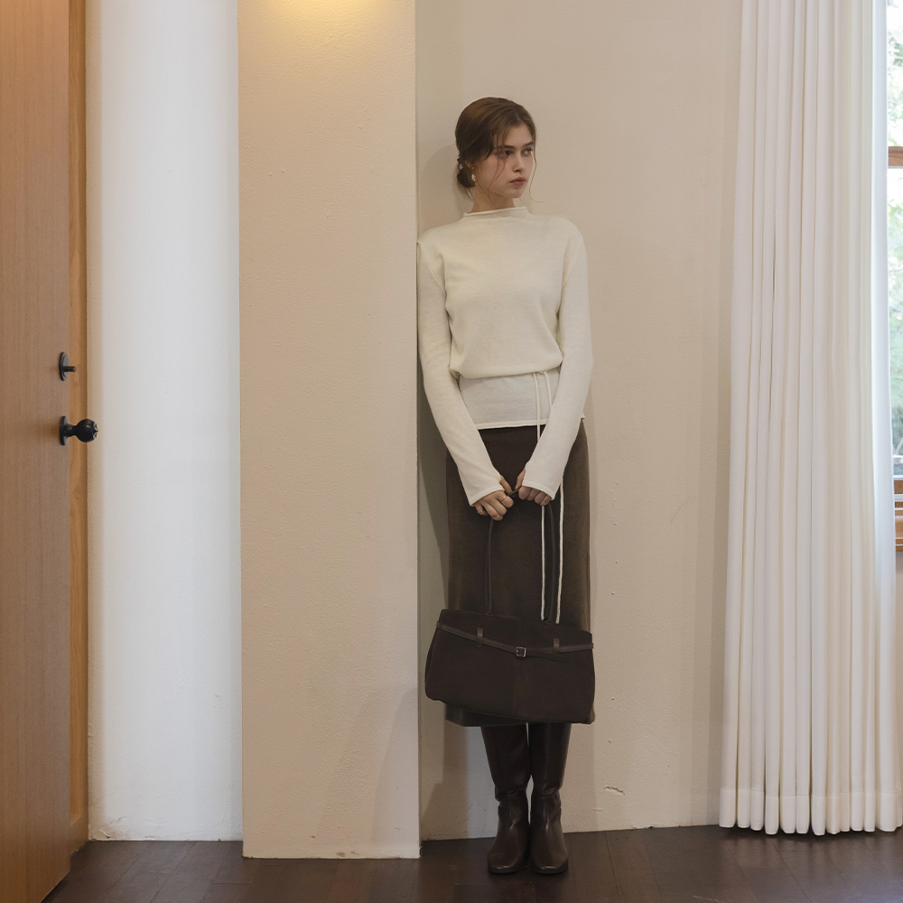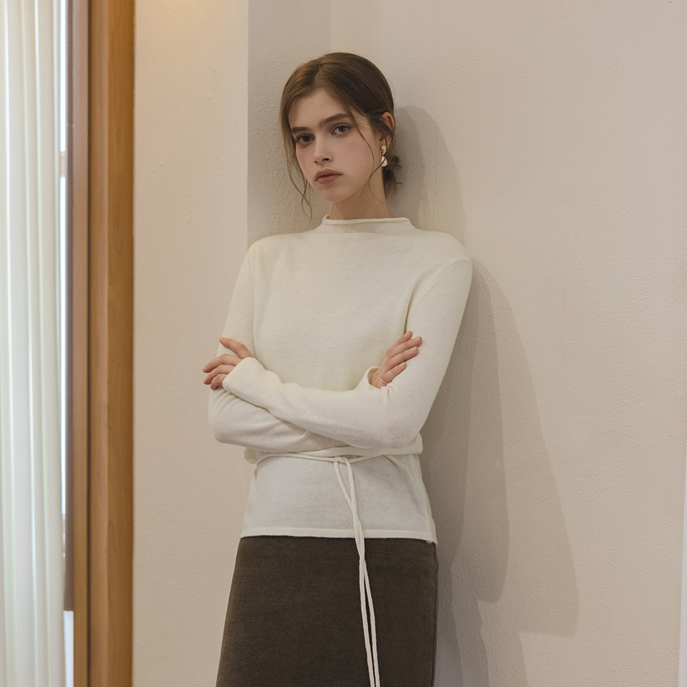 ハーフネック ウール ウォーマー ニット(+ベルト)