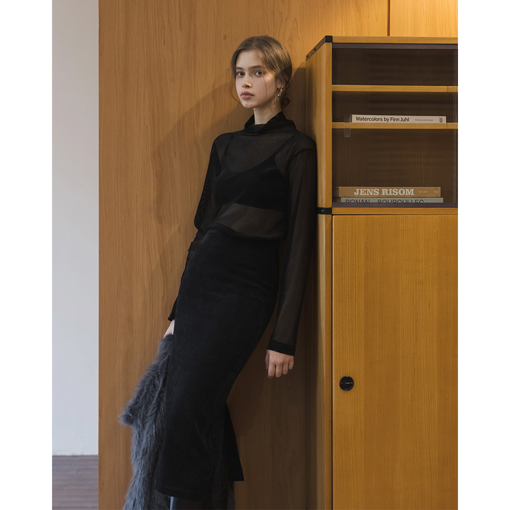 ベルベット Hライン 弾力 ロング スカート