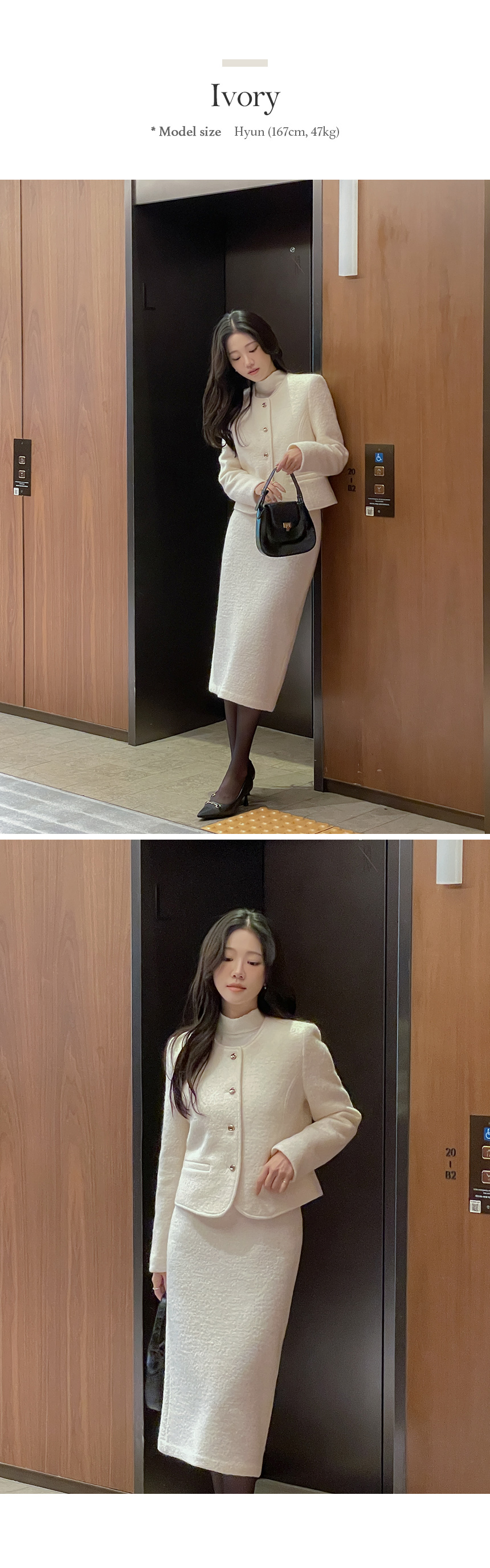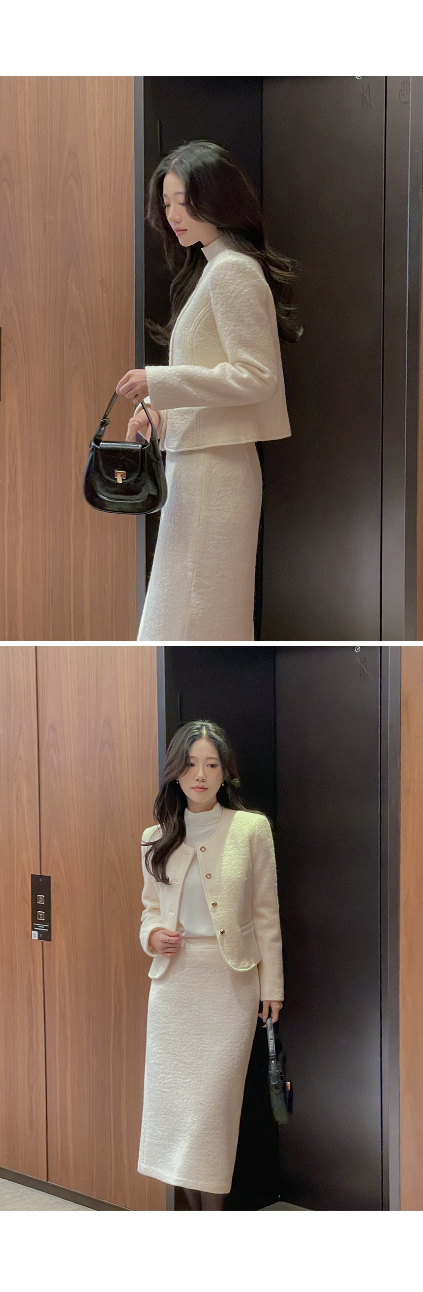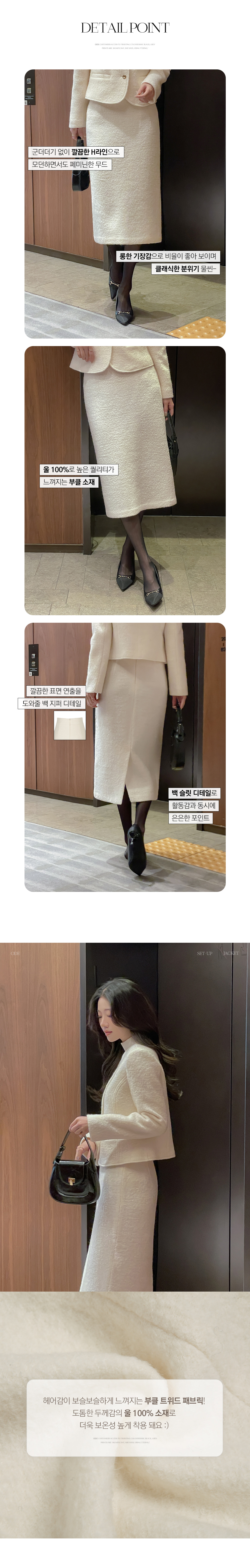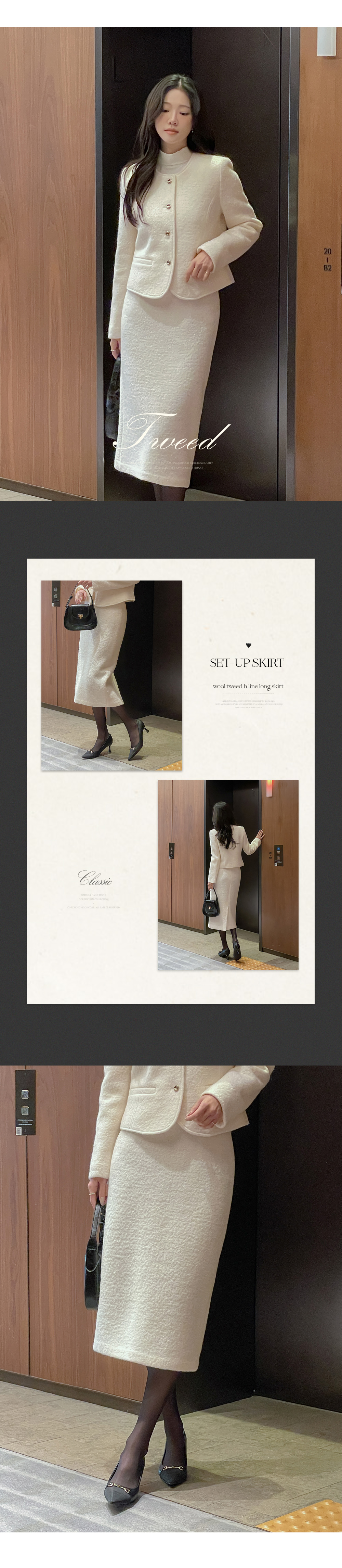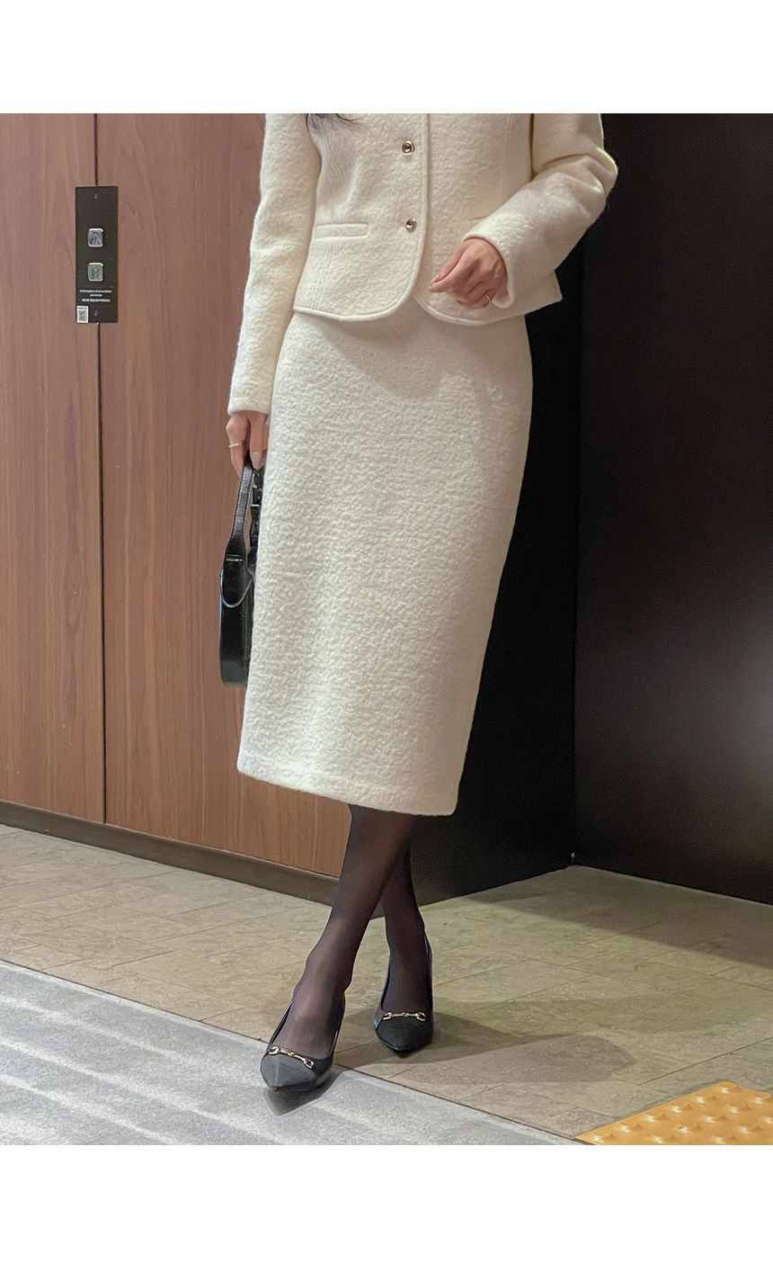 ウール100% ブークレ ツイード Hライン ロング Set-up スカート