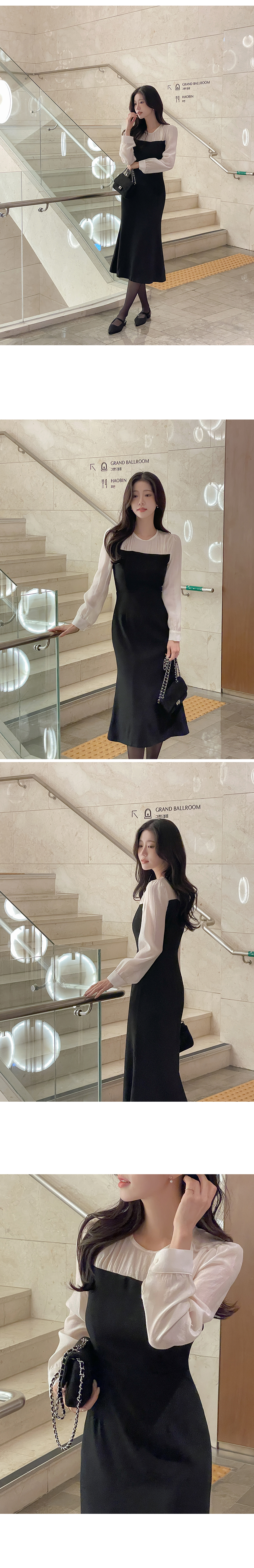 レイヤード 配色 ワンピース(+タイ)(2type)