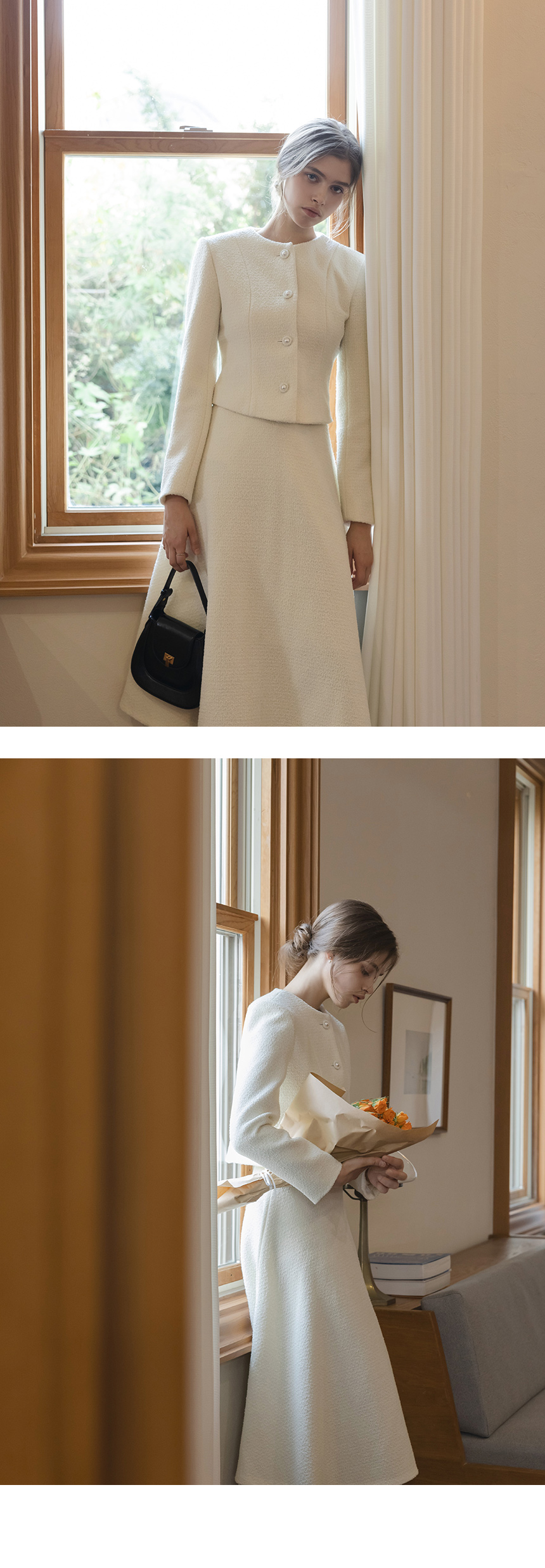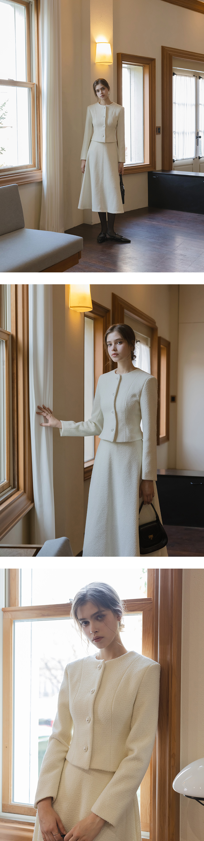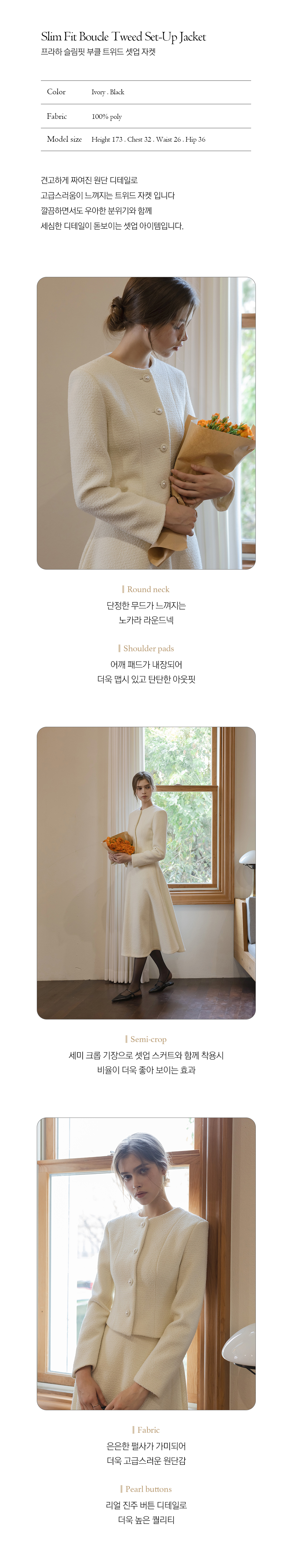 プラハ スリムフィット ブークレ ツイード Set-up ジャケット