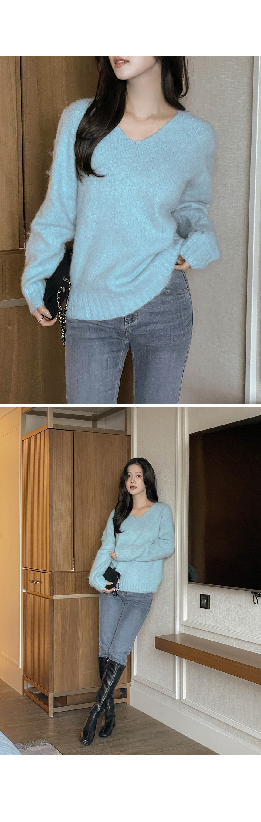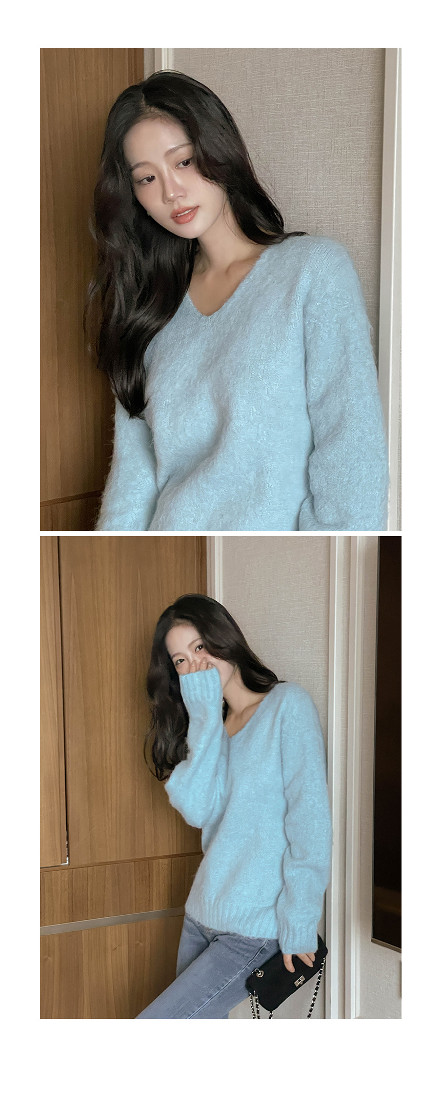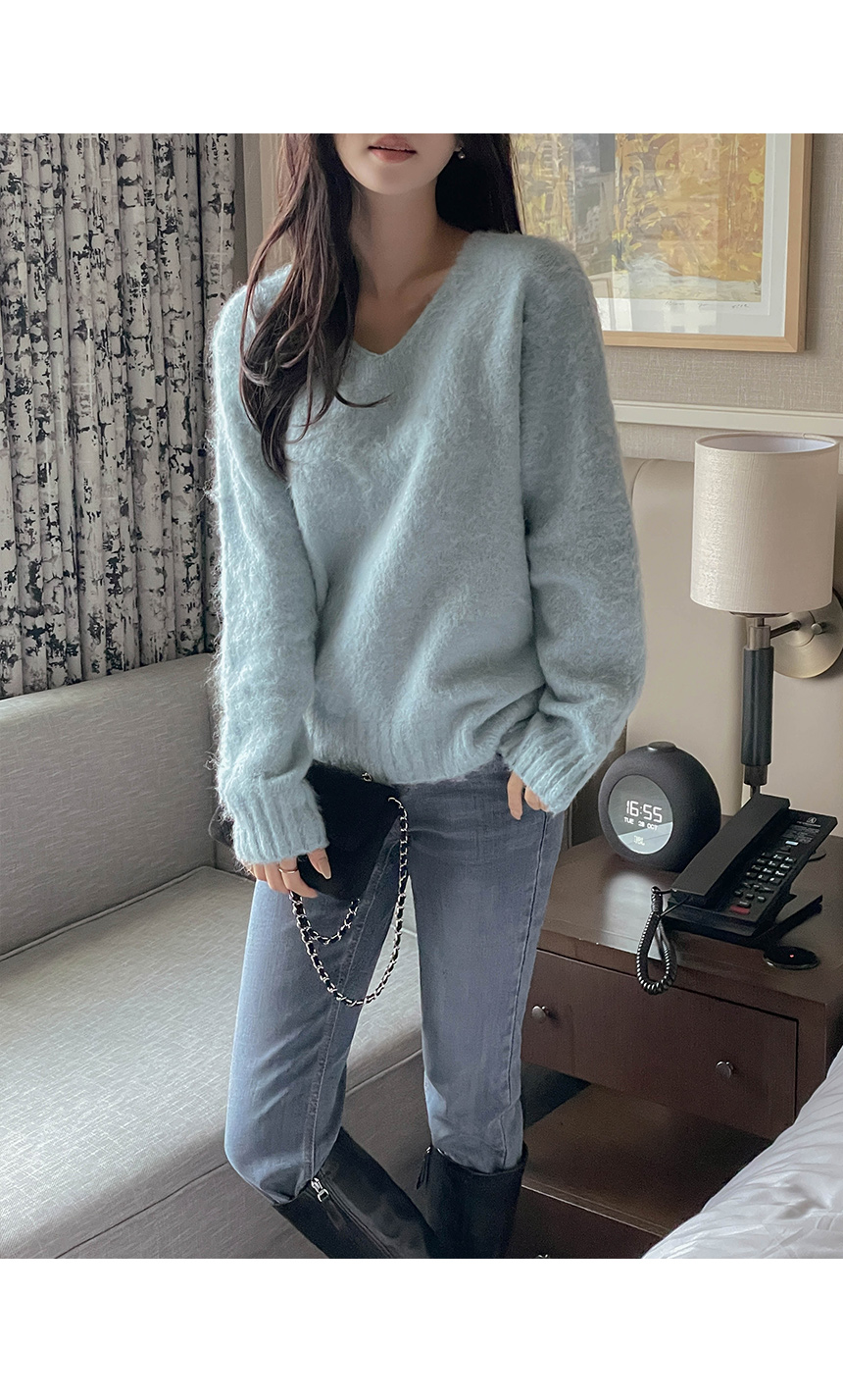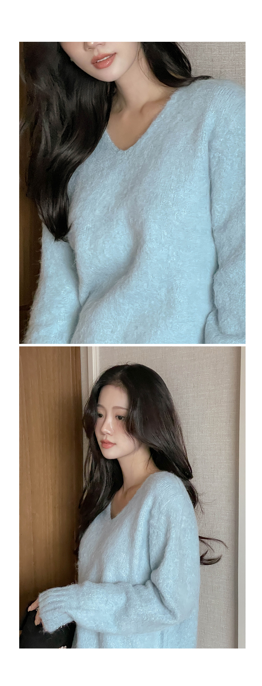 もくもく ブイネック フォーマル ルーズフィット ウール ニット