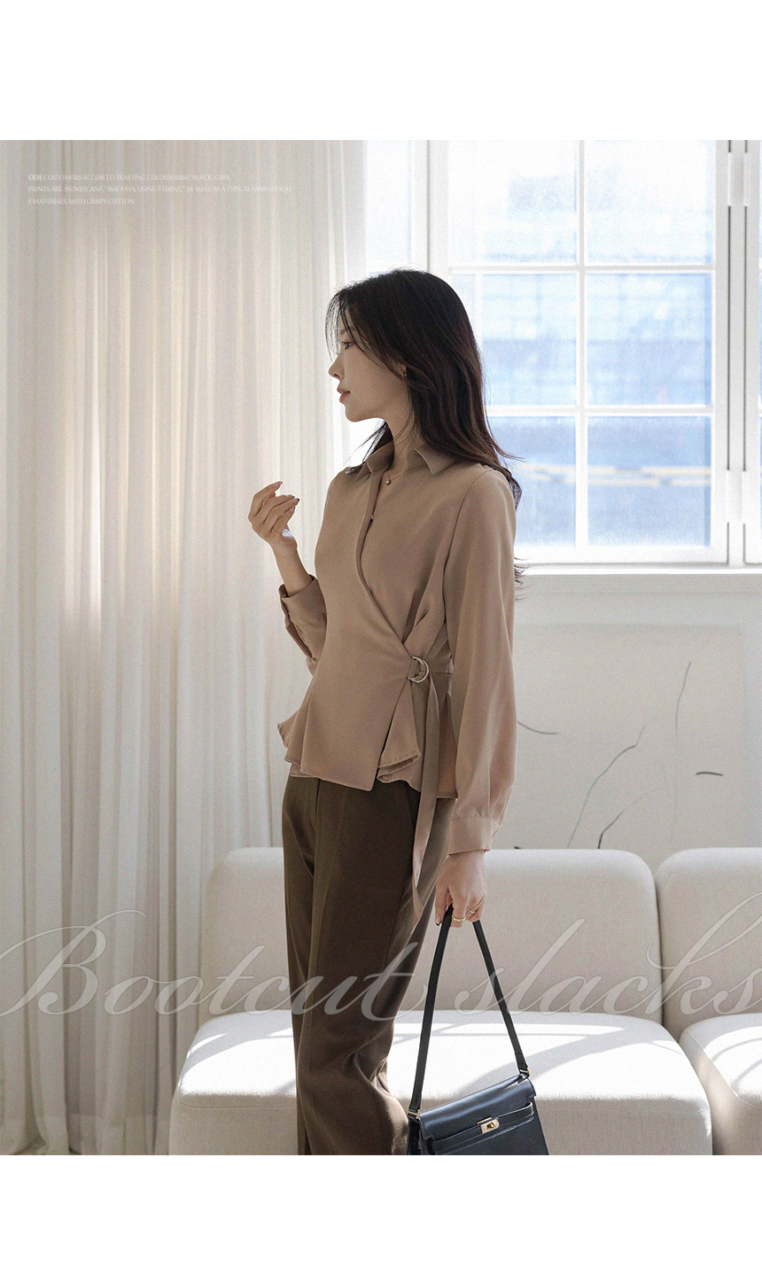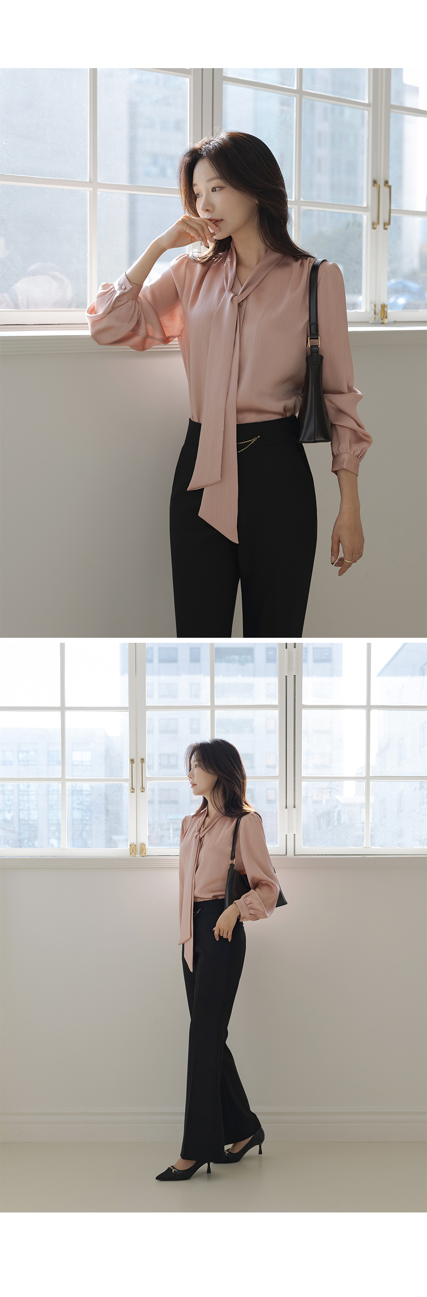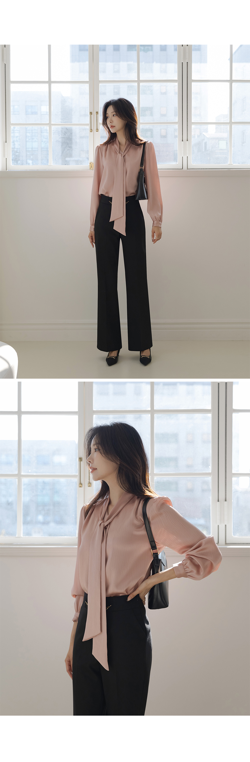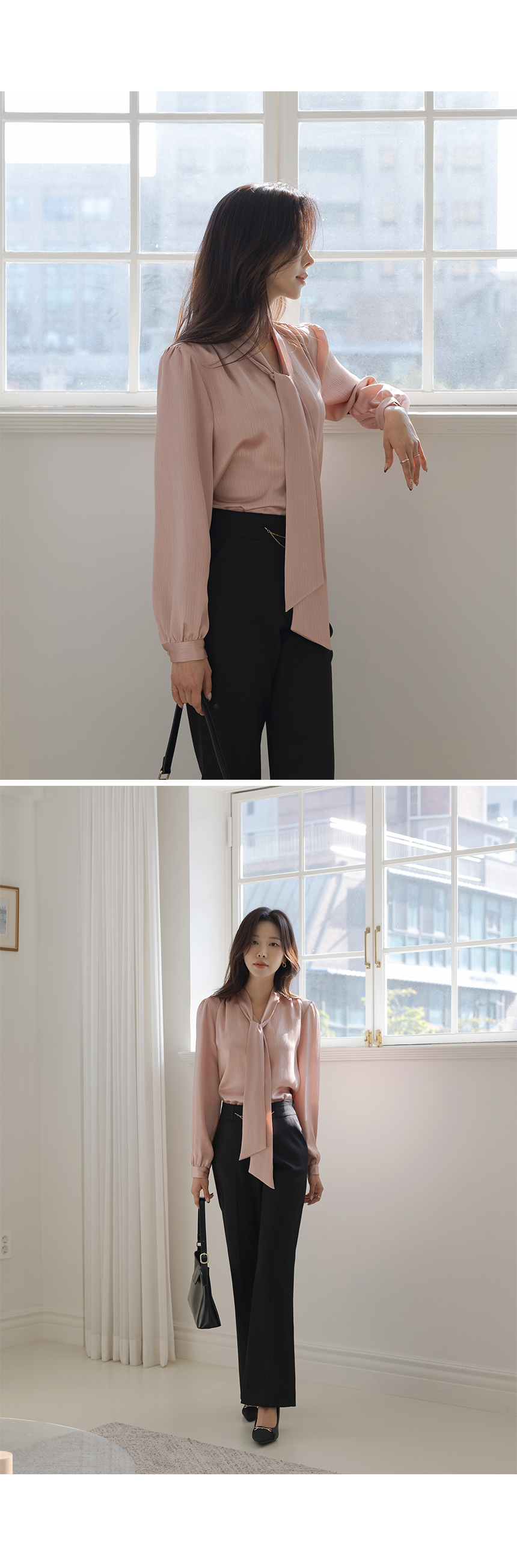 ローズ シルキー サテン タイネック リンクル ブラウス