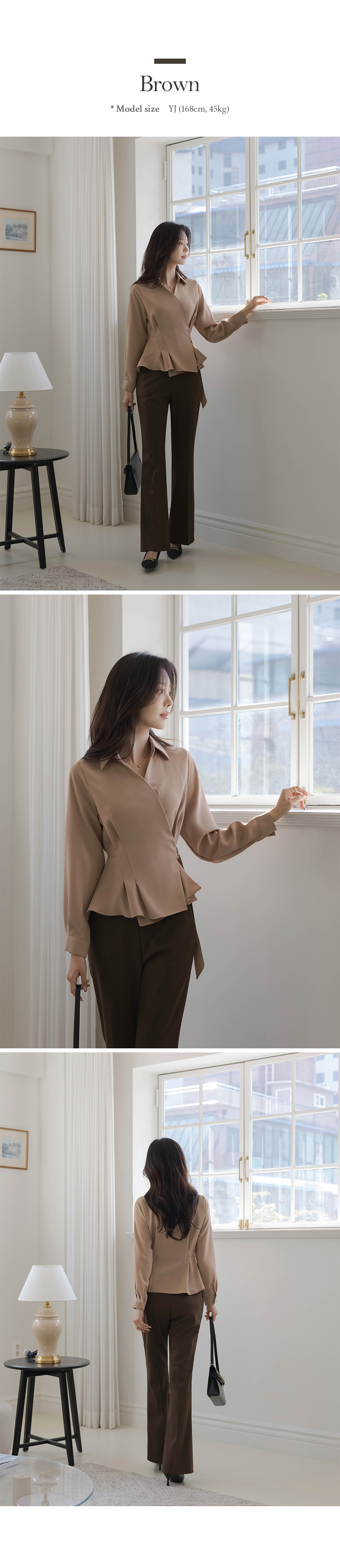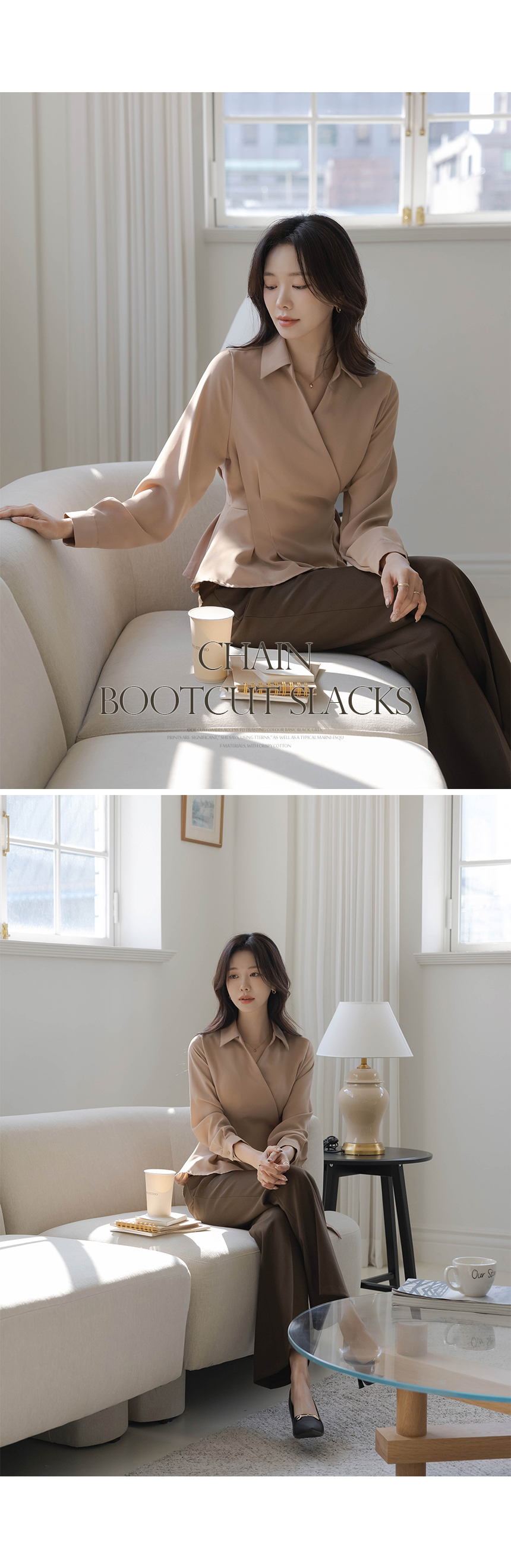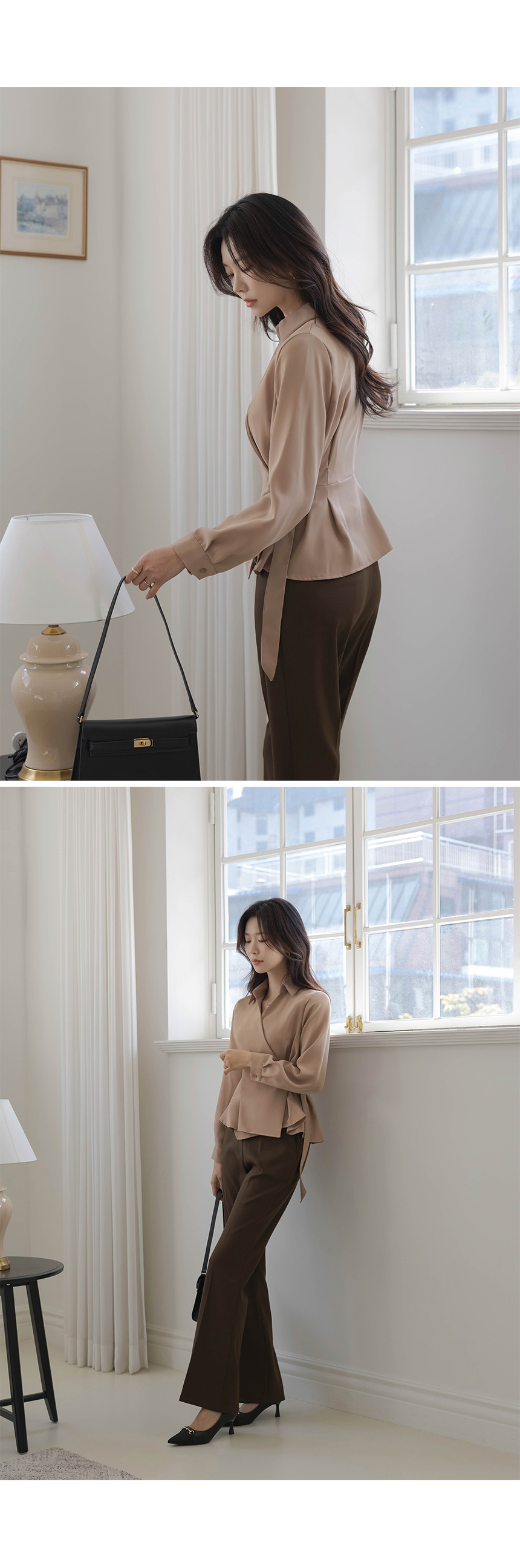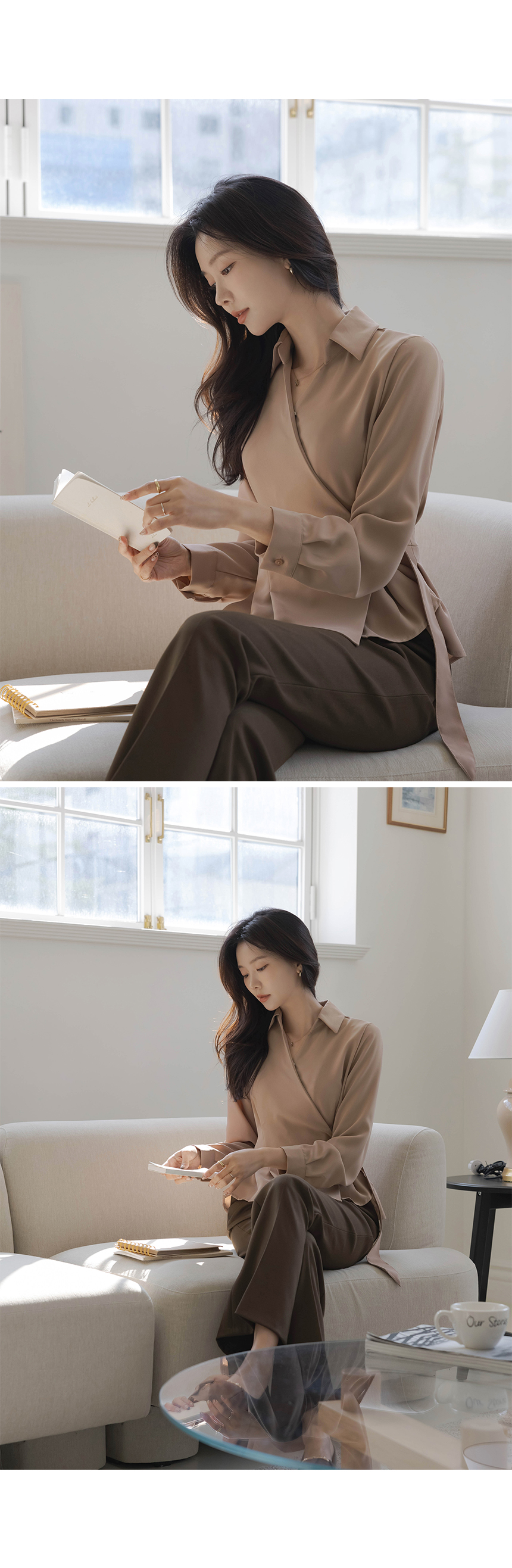 ローズ シルキー サテン タイネック リンクル ブラウス