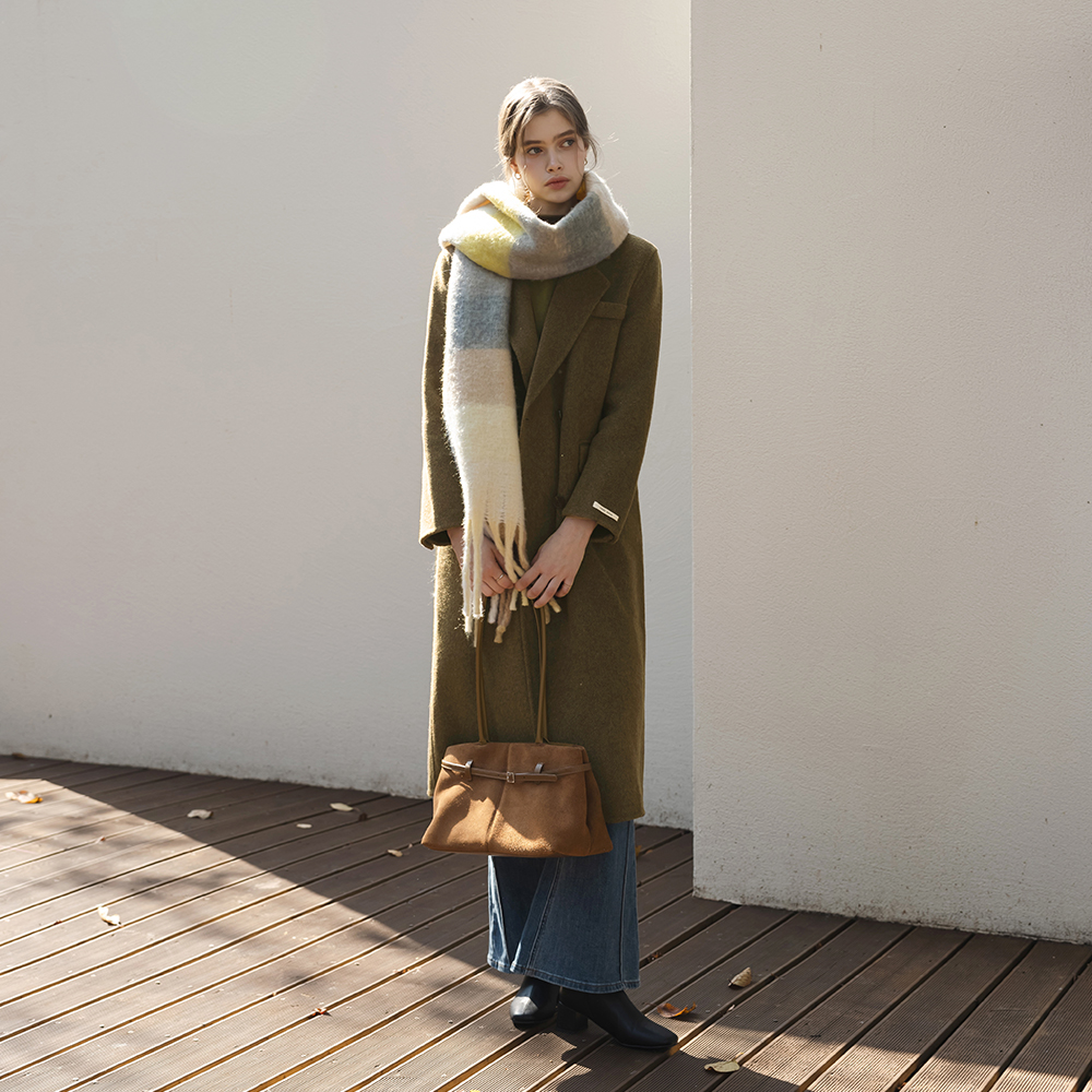 ウール100% ヘリンボーン ハンドメード ロング コート