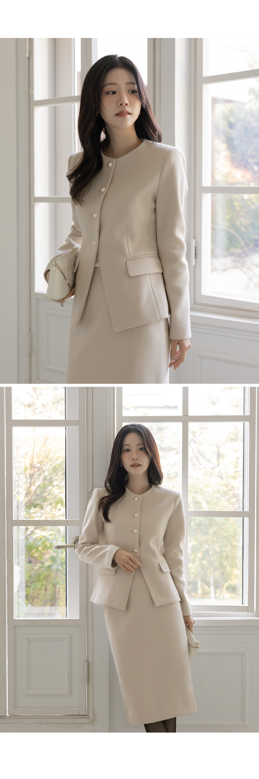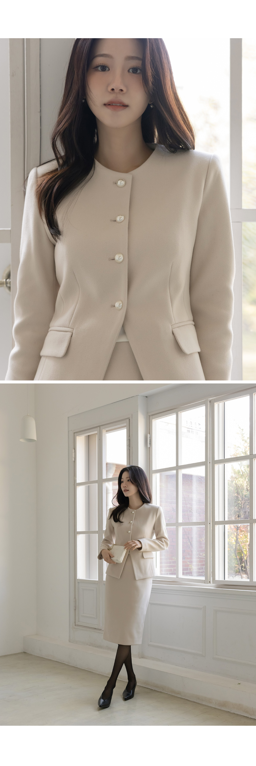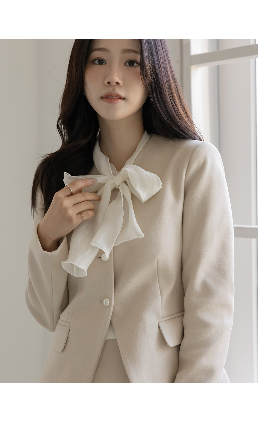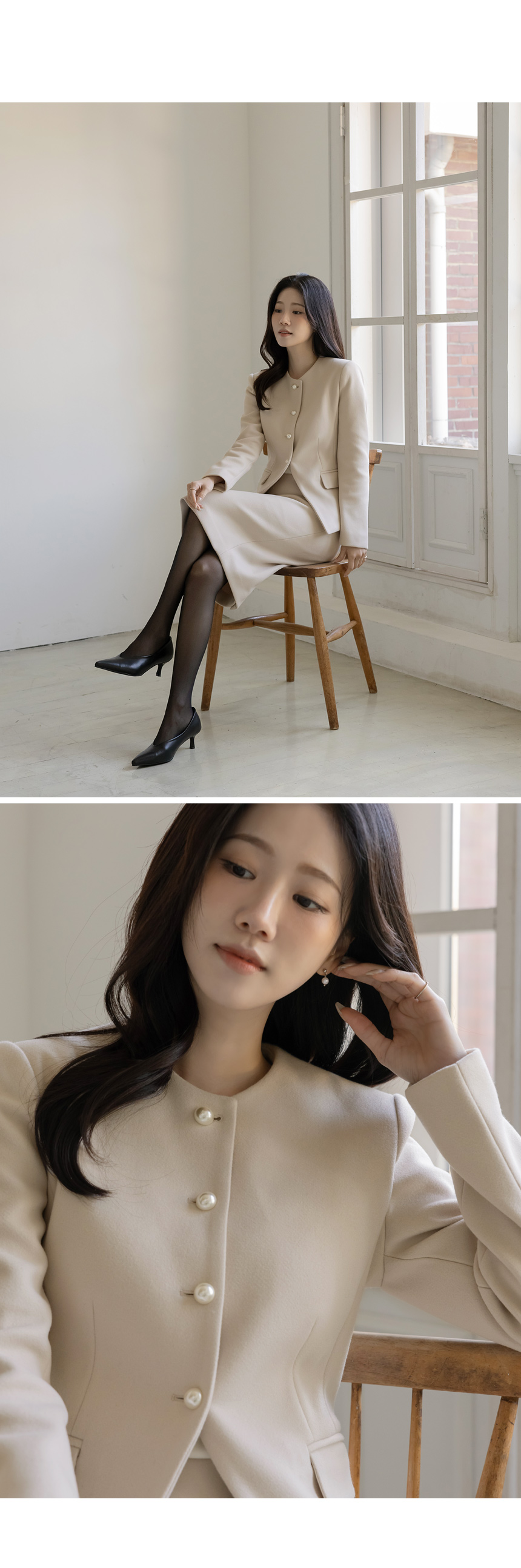 フェミニン 真珠 ボタン Set-up ジャケット(+タイ)