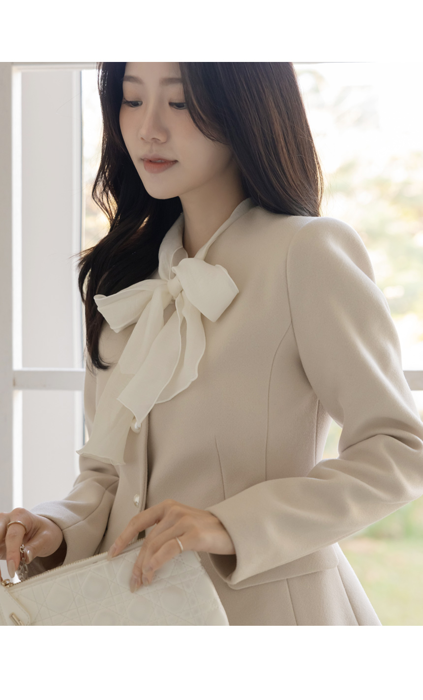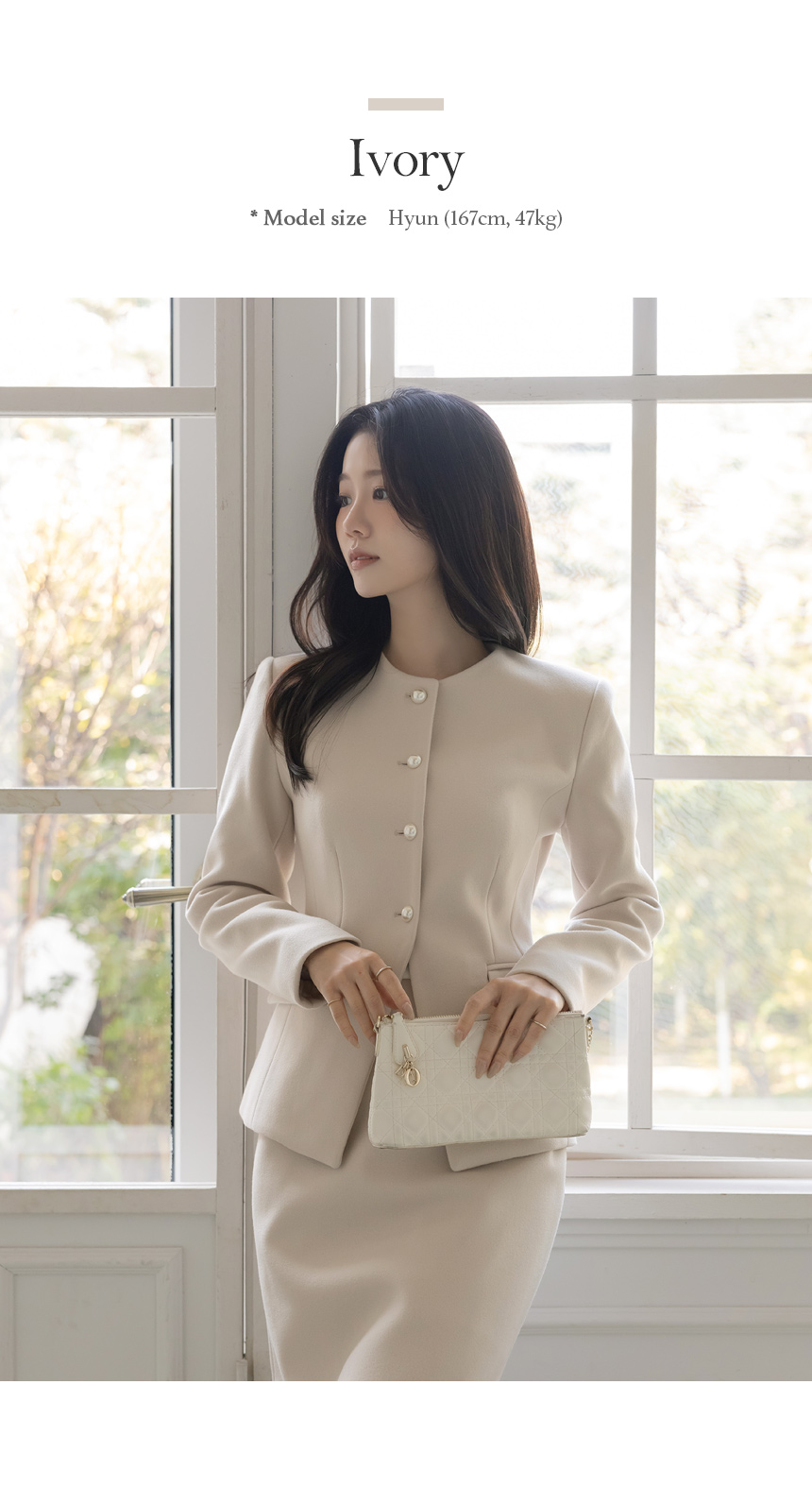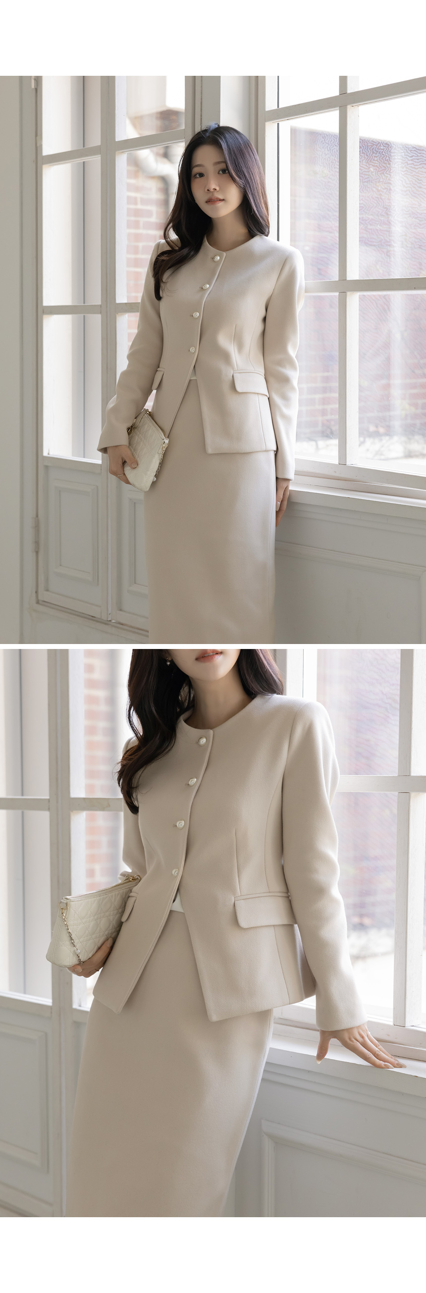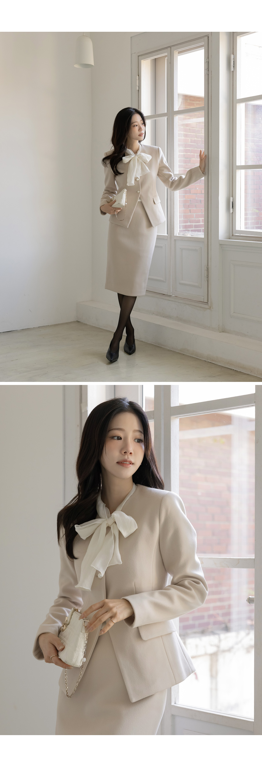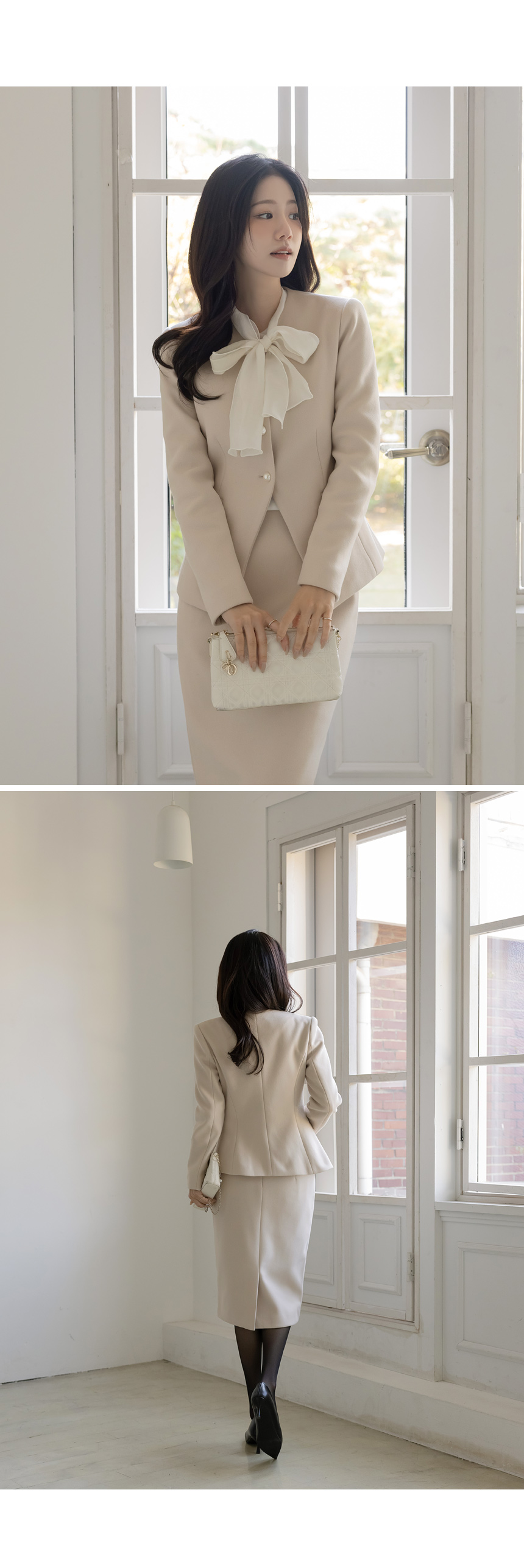 フェミニン 真珠 ボタン Set-up ジャケット(+タイ)
