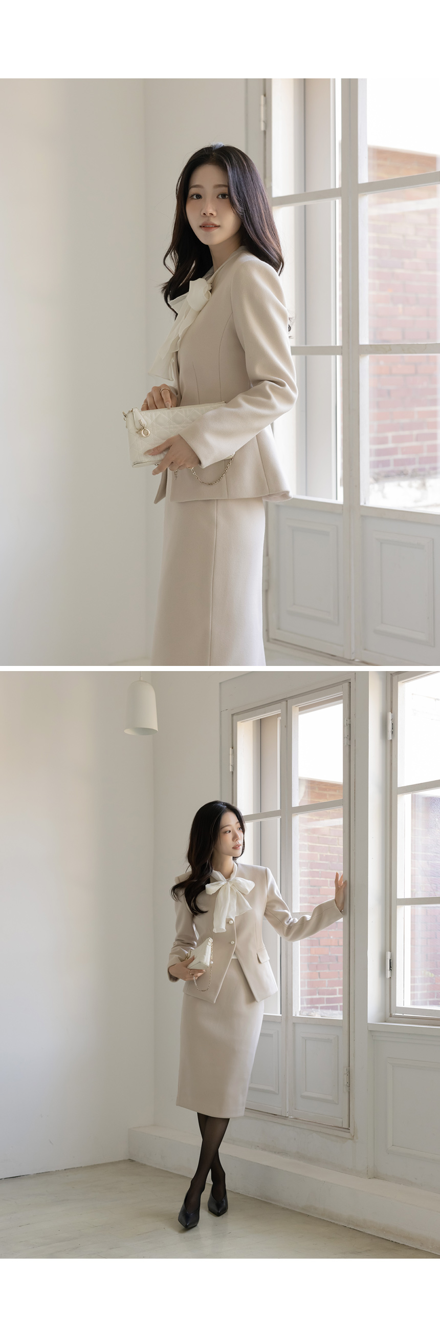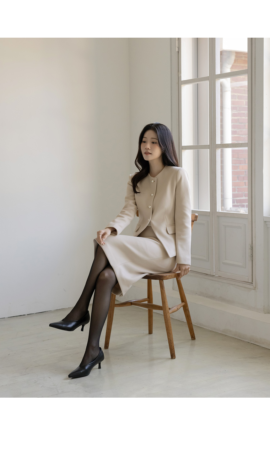 フェミニン 真珠 ボタン Set-up ジャケット(+タイ)