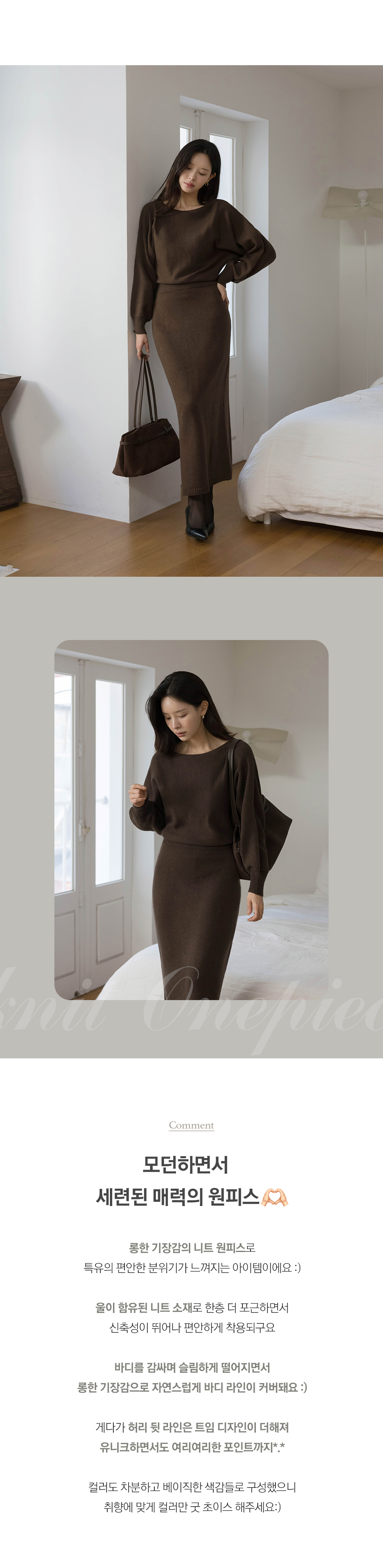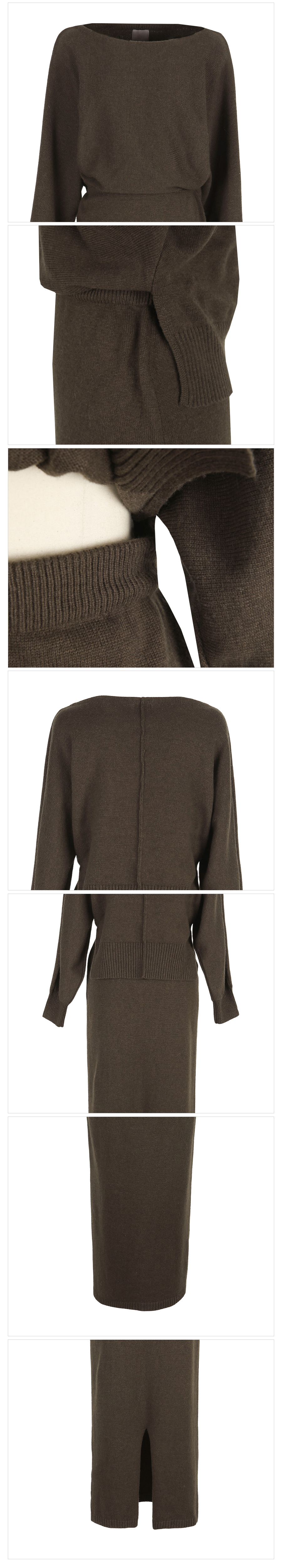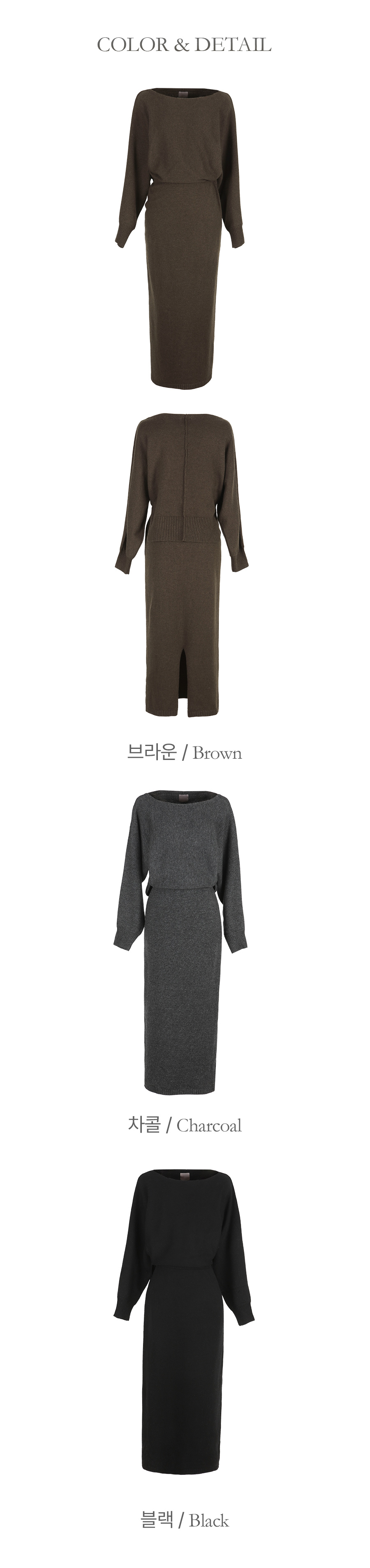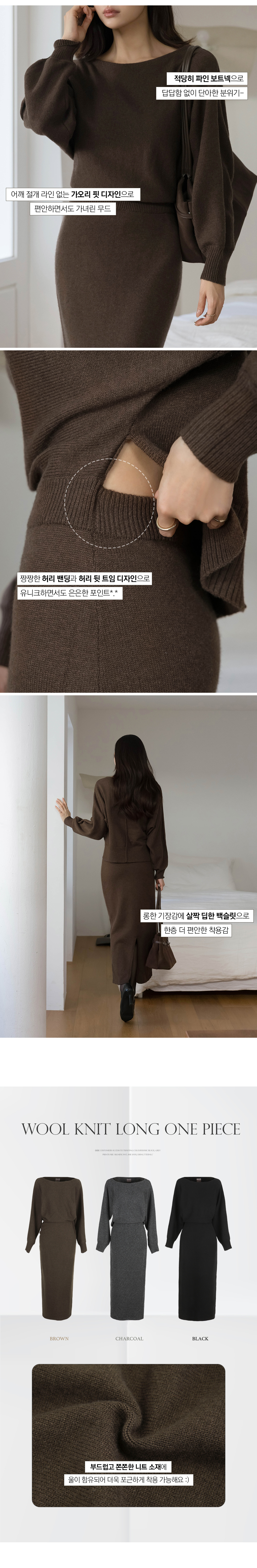 ボートネック バック切開 ウール ニット ロング ワンピース
