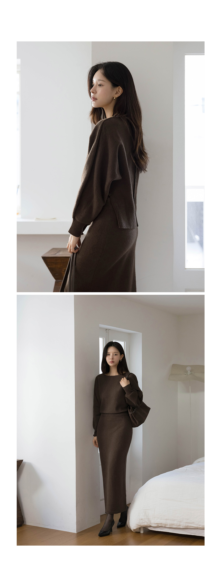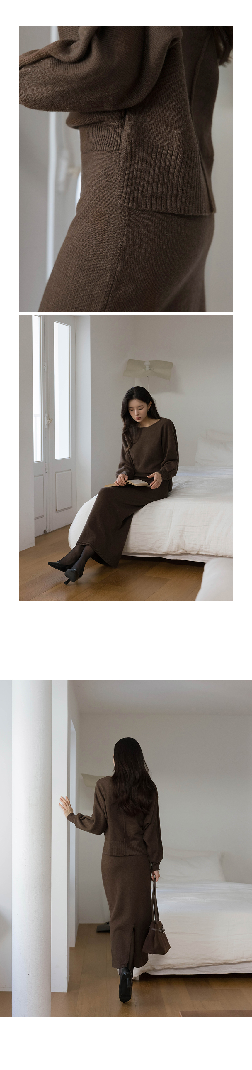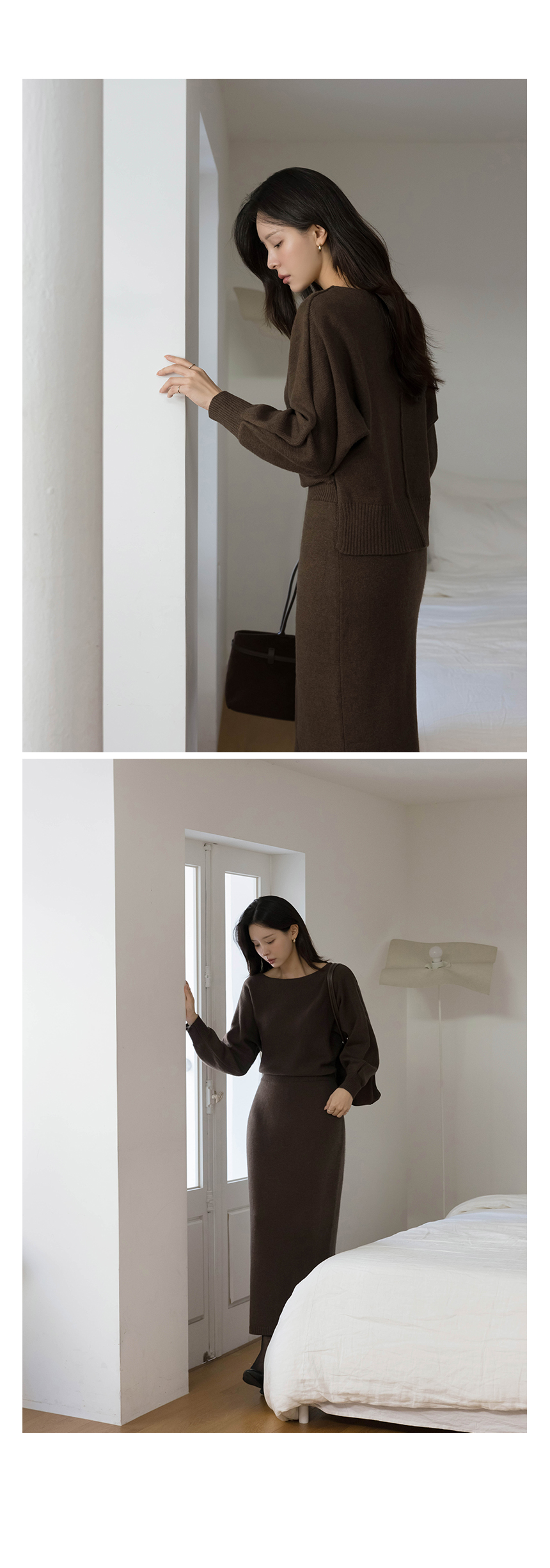 ボートネック バック切開 ウール ニット ロング ワンピース