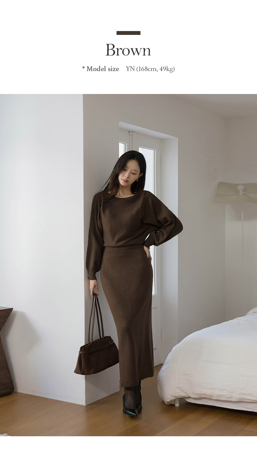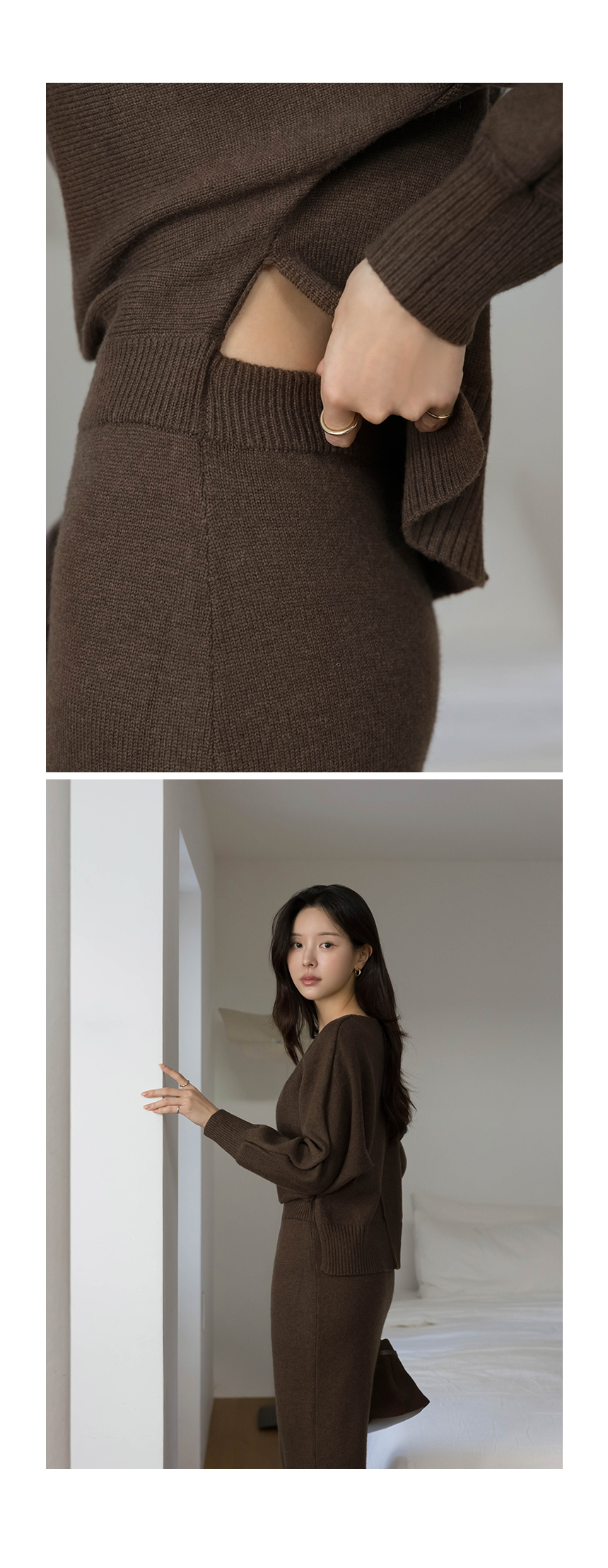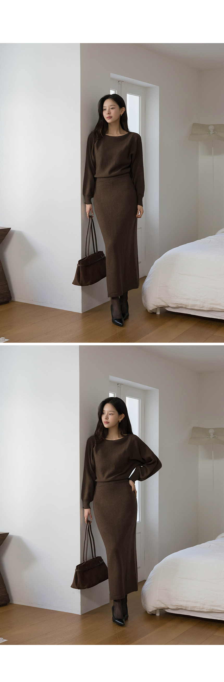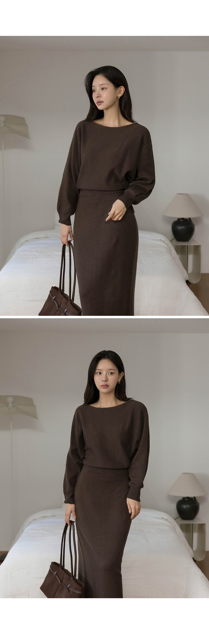 ボートネック バック切開 ウール ニット ロング ワンピース