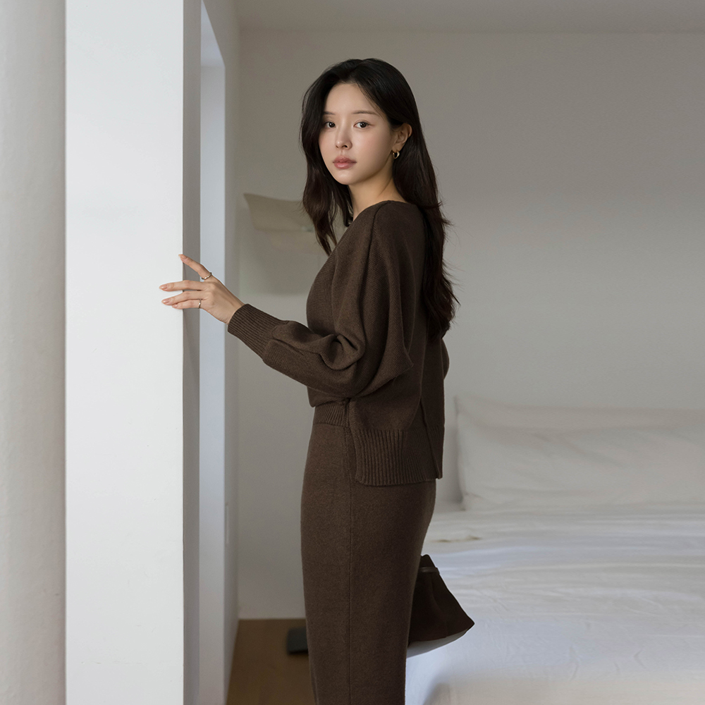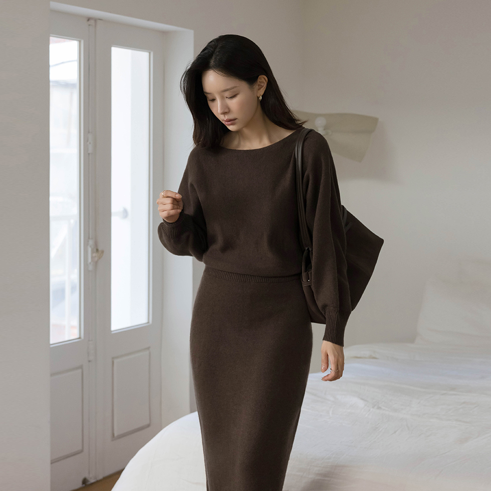 ボートネック バック切開 ウール ニット ロング ワンピース