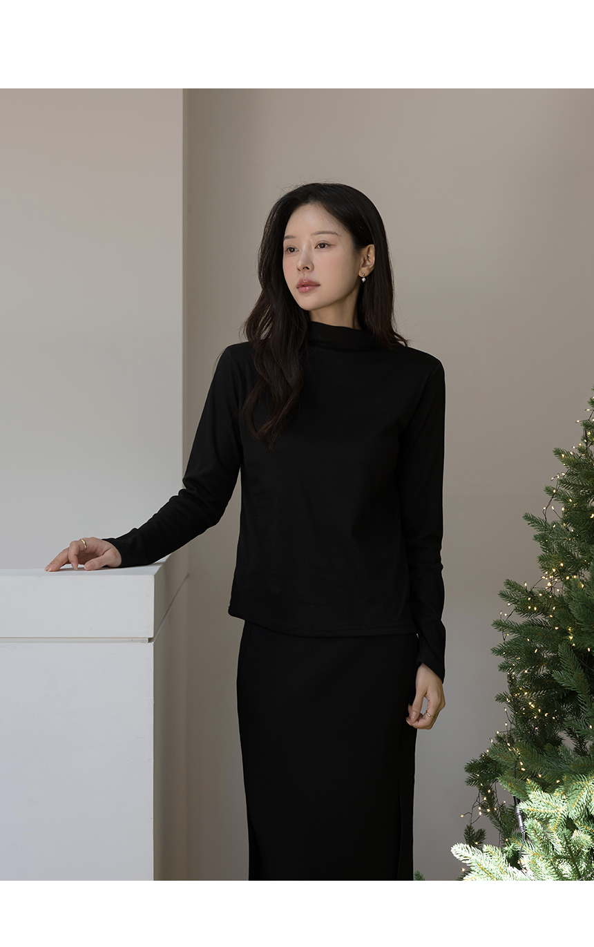 デーリー 起毛 裏地 ハーフネック 弾力 ティーシャツ