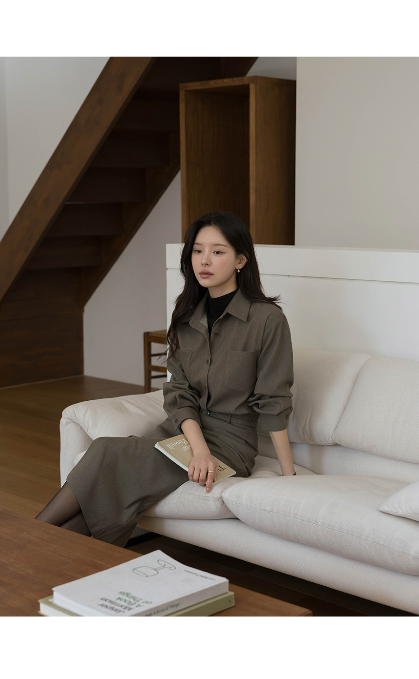 ウール Hライン スリット スカート(+ベルト)