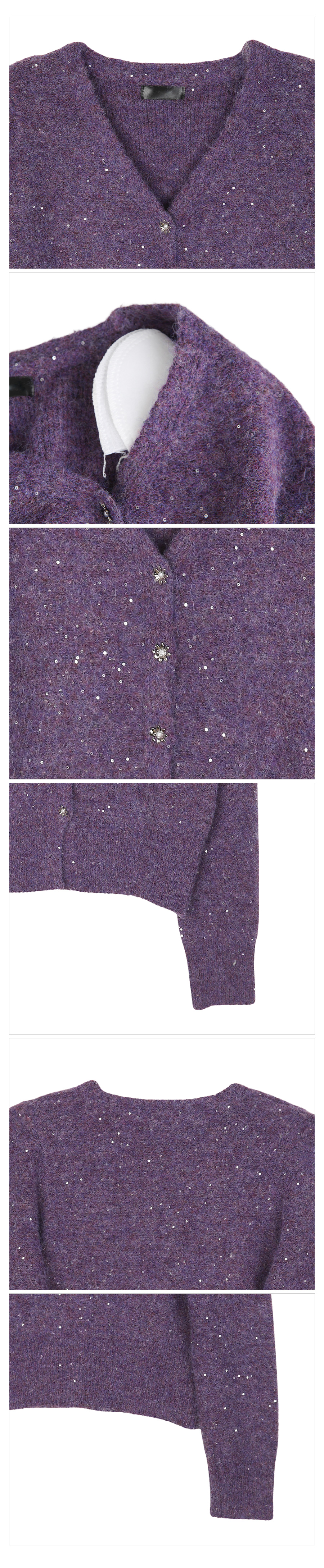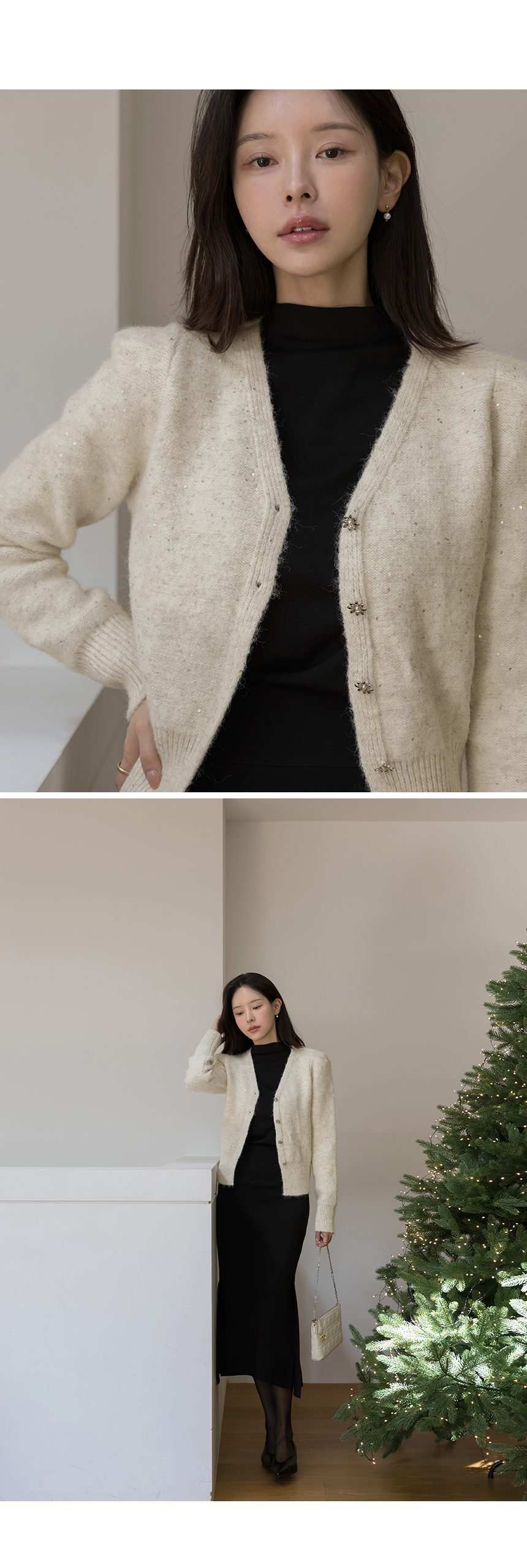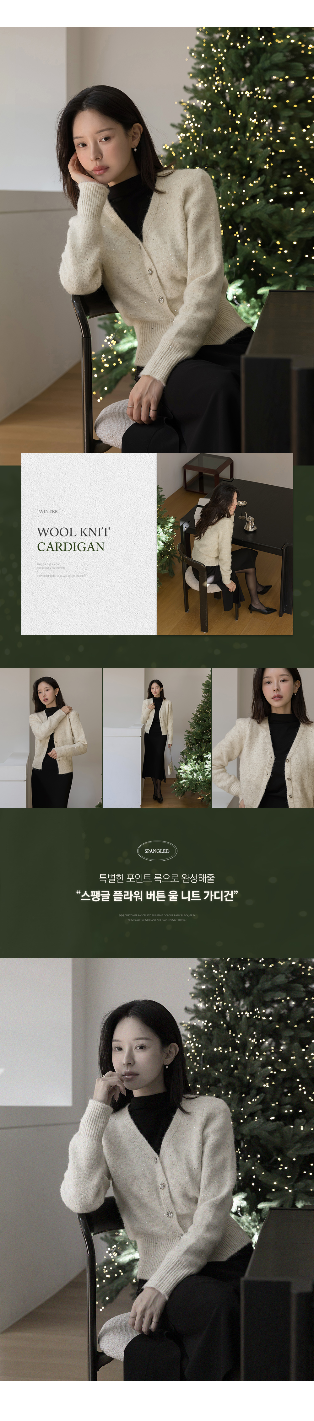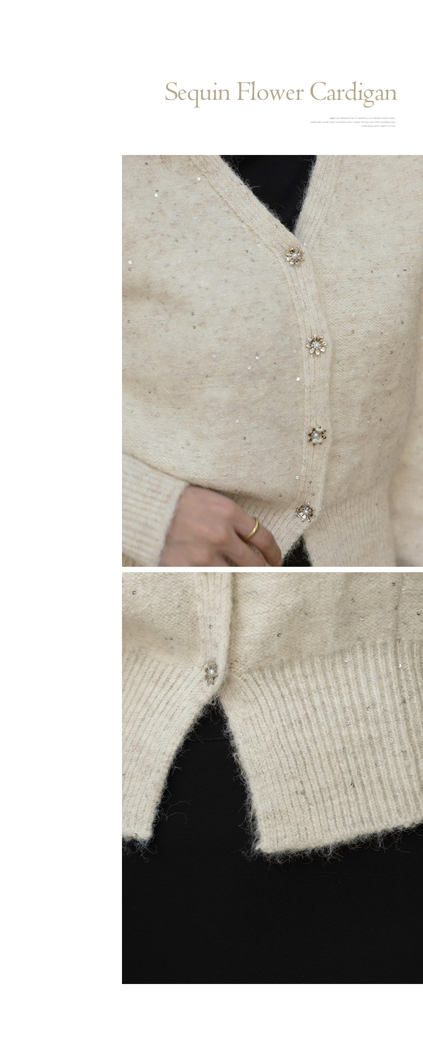 スパングル 花柄 ボタン ウール ニット カーディガン