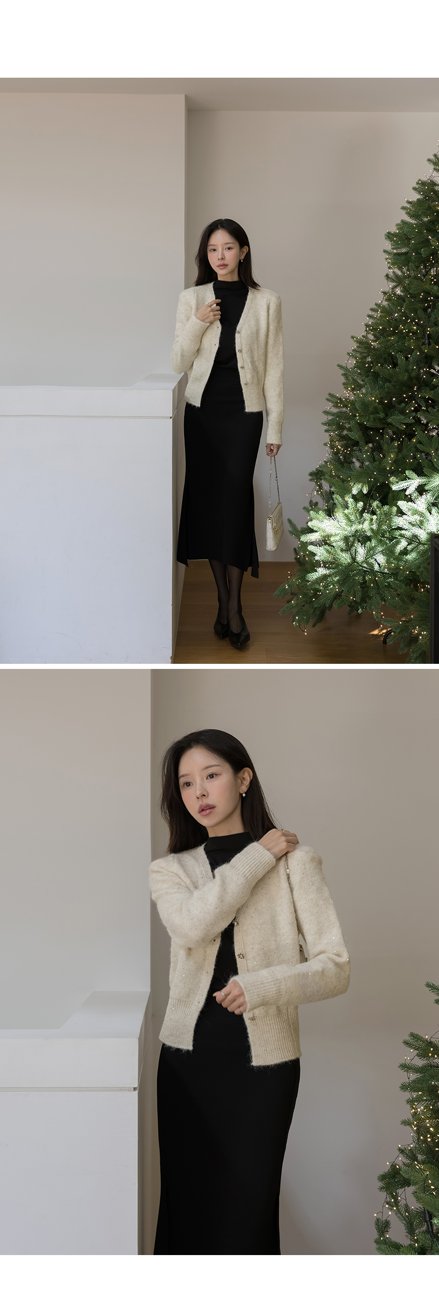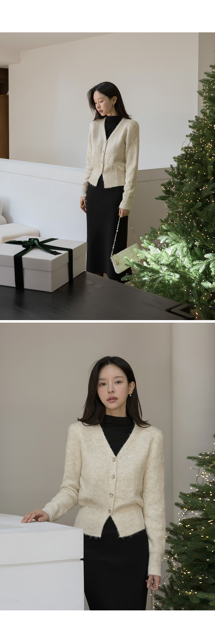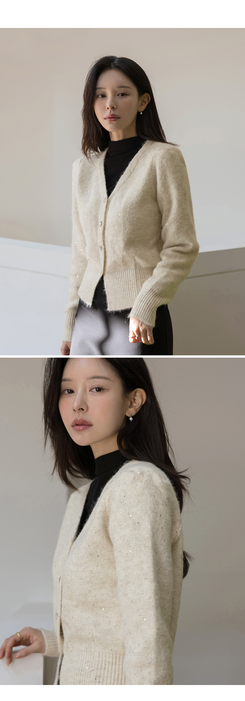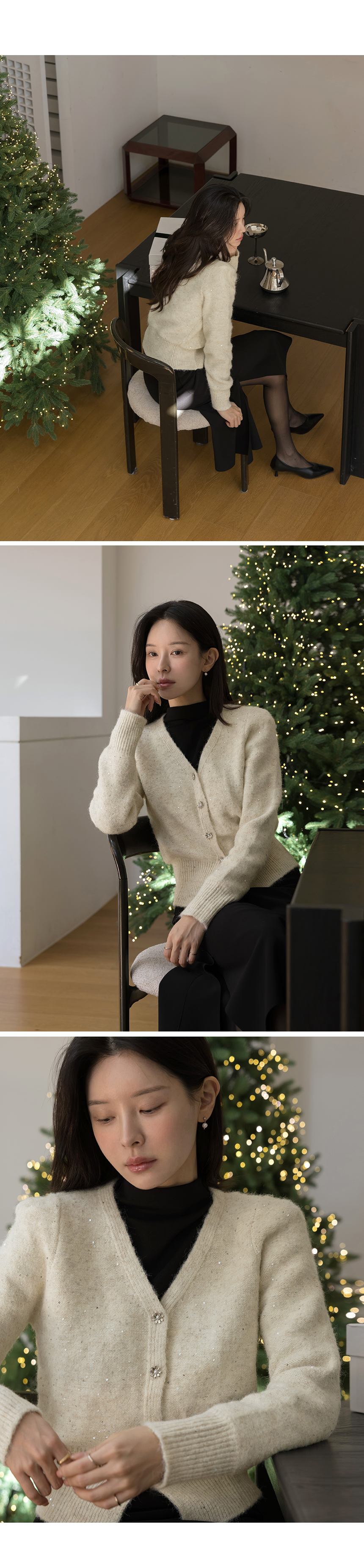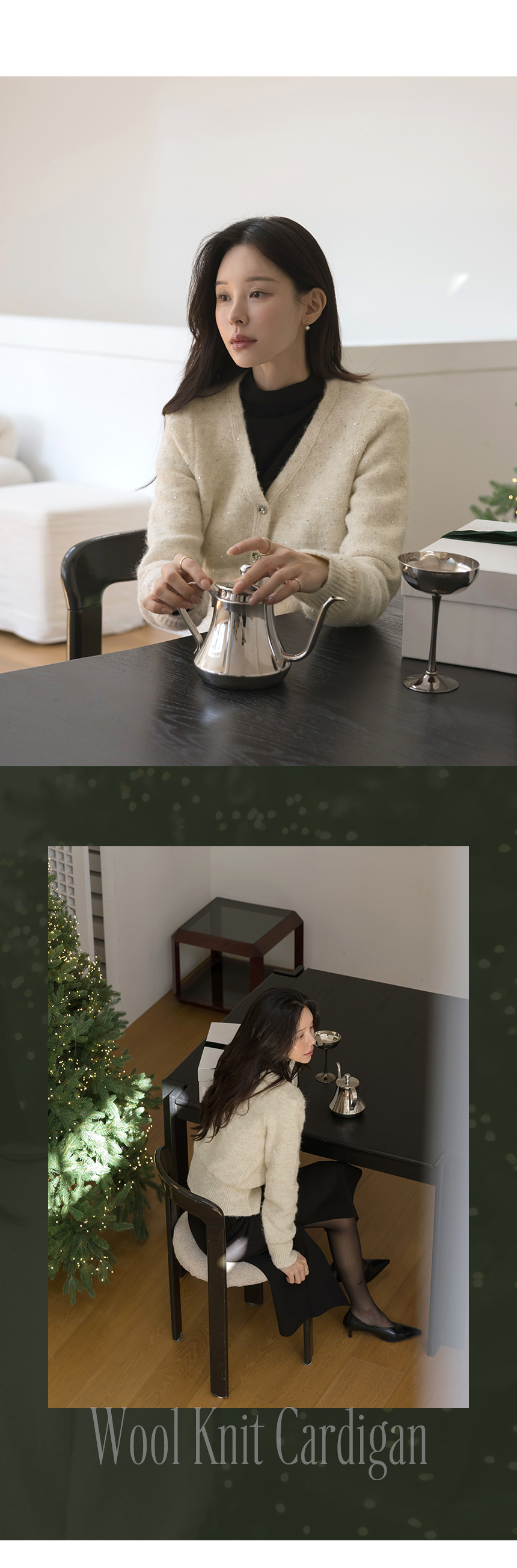 スパングル 花柄 ボタン ウール ニット カーディガン