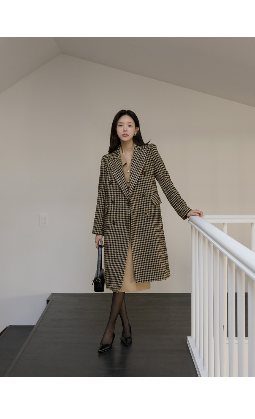 ウインター クラシック ハウンド チェック ウール ロング コート