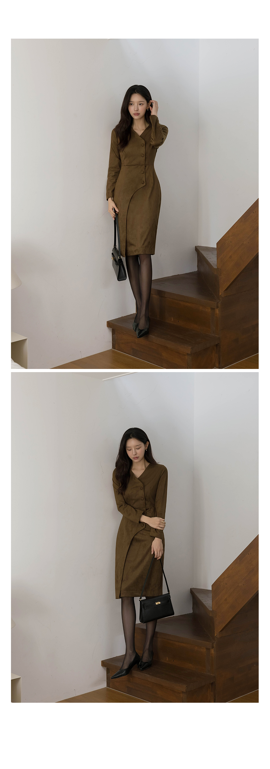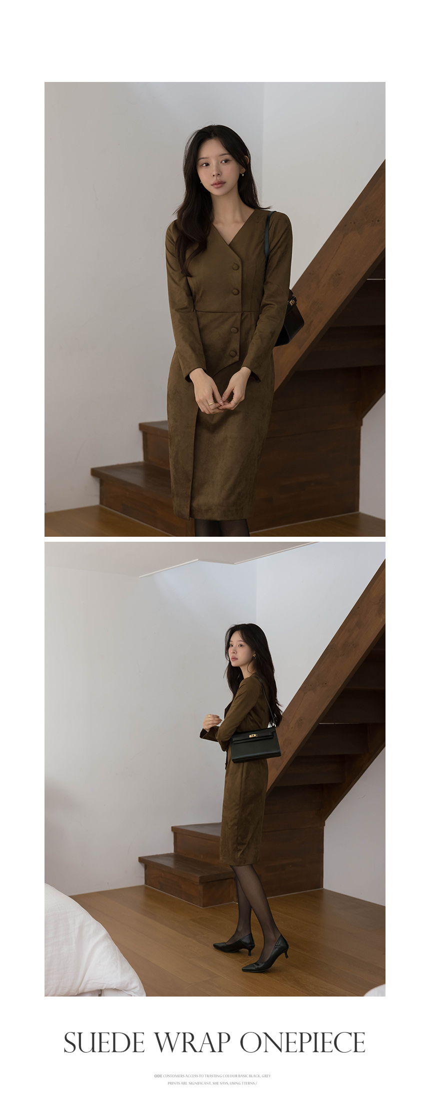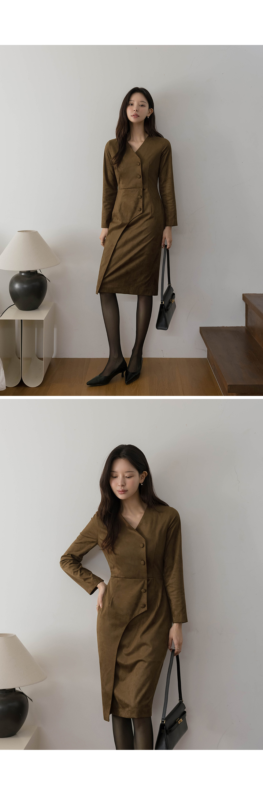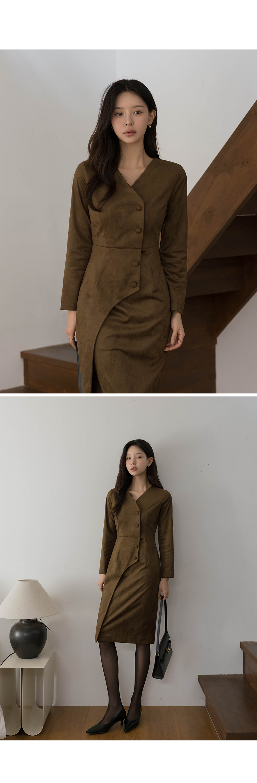 スエード ラップスタイル アンバランス Hライン ワンピース