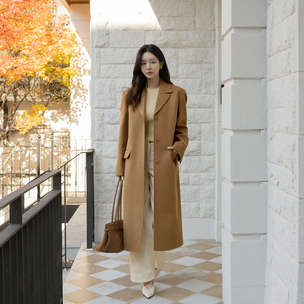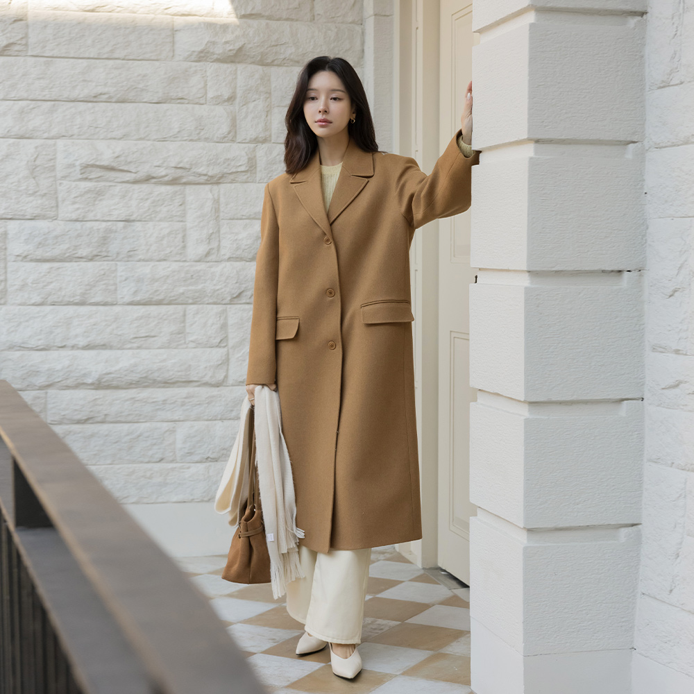 テーラード カラーネック ルーズフィット ウール ロングコート