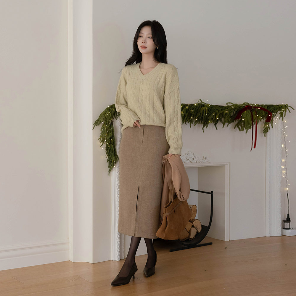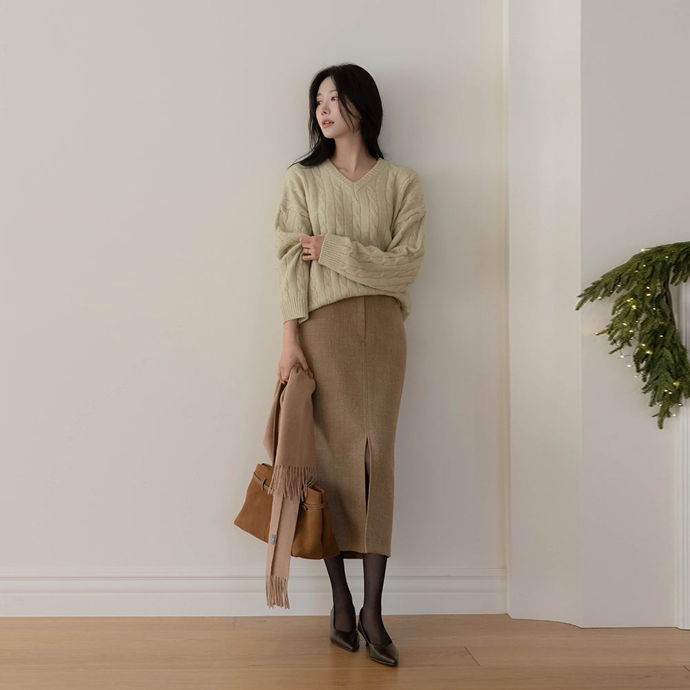 分厚い Vネック ねじる ウール ルーズフィット ニット