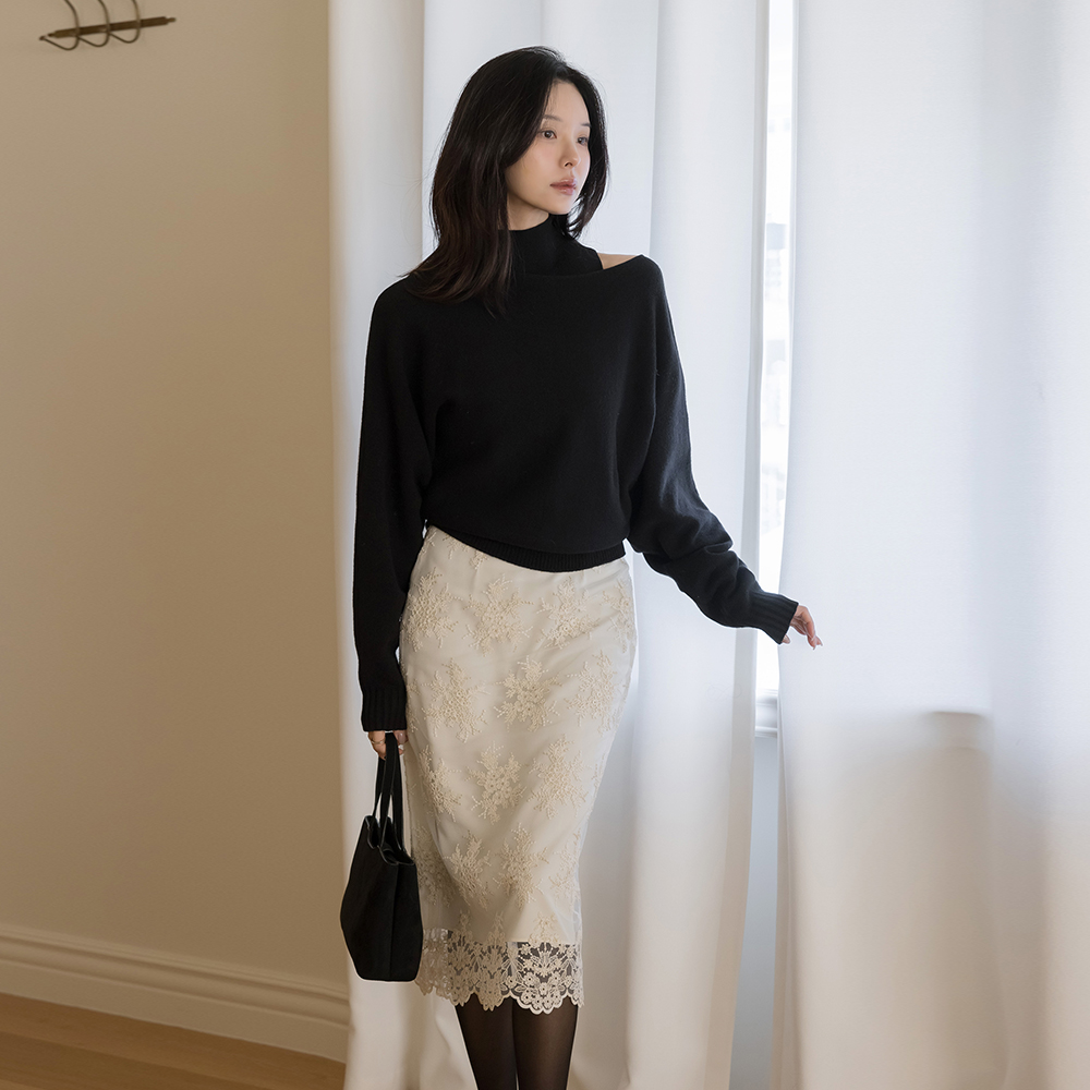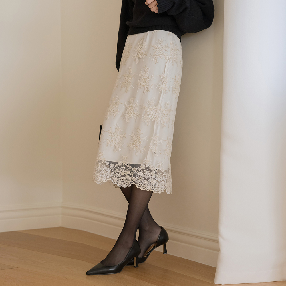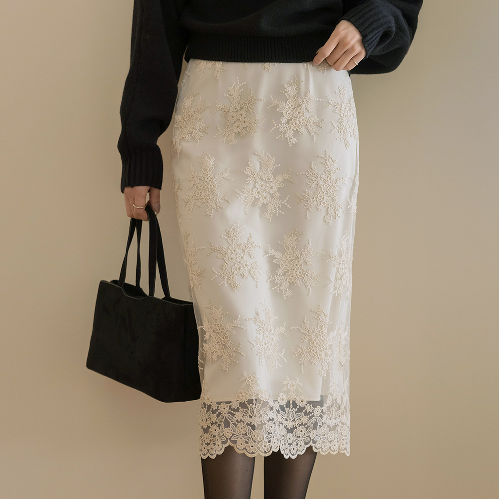 フローラル 刺繍 レイス Hライン スカート
