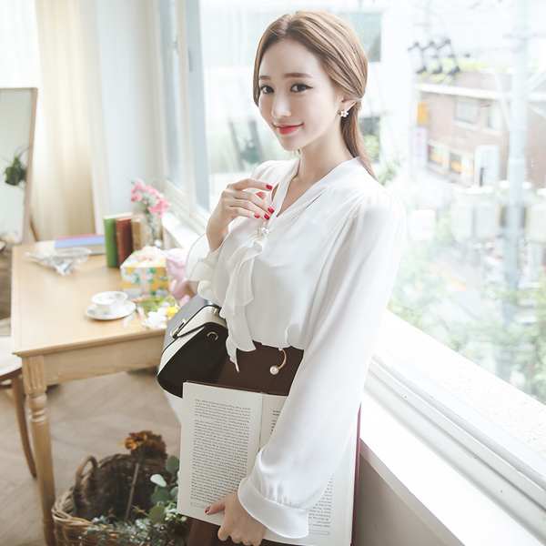 プチラッフルスカーフ真珠リングブラウス