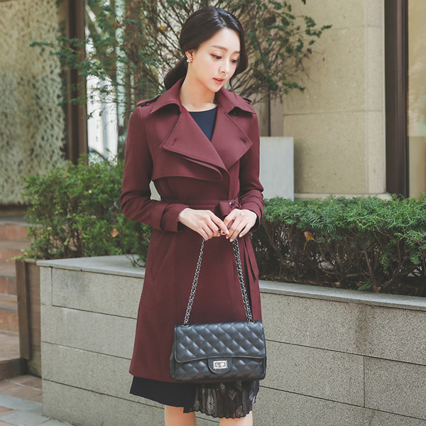 モダンシックアイレットベルトトレンチコート