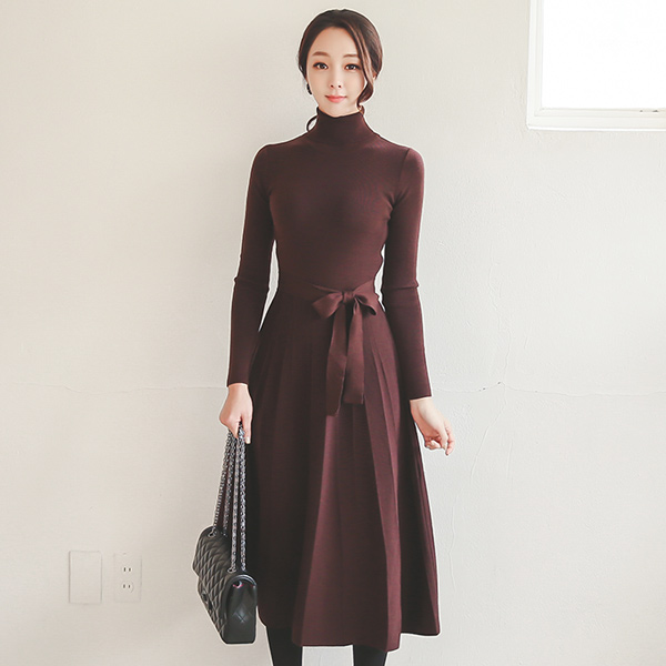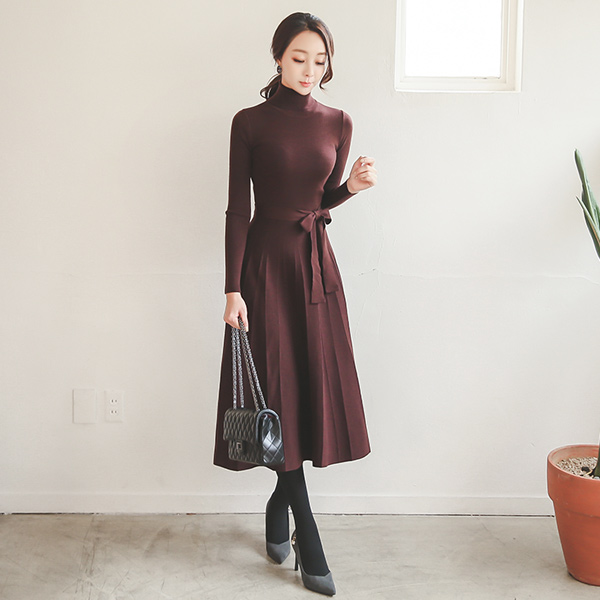 首ポーラロングニットフレアドレス