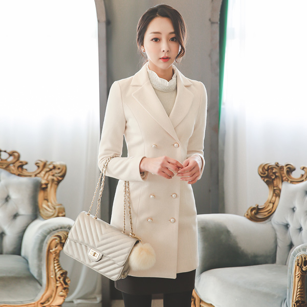 オリビアダブルパールスリムのウールコート