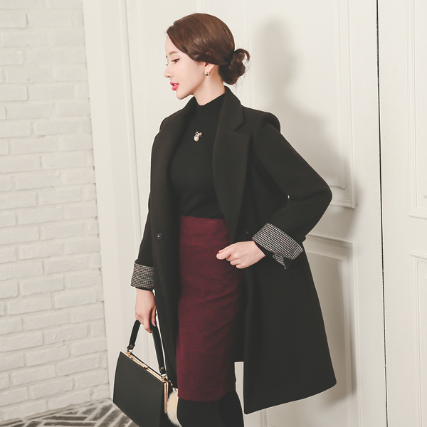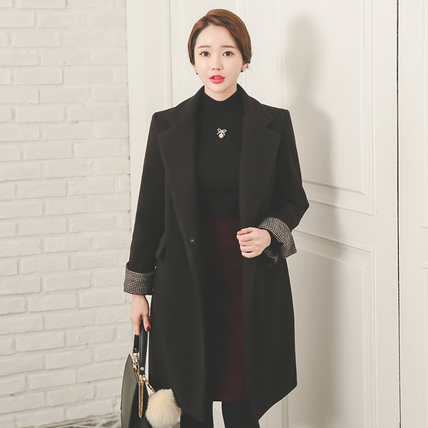チェック配色半パクキルティングのウールコート